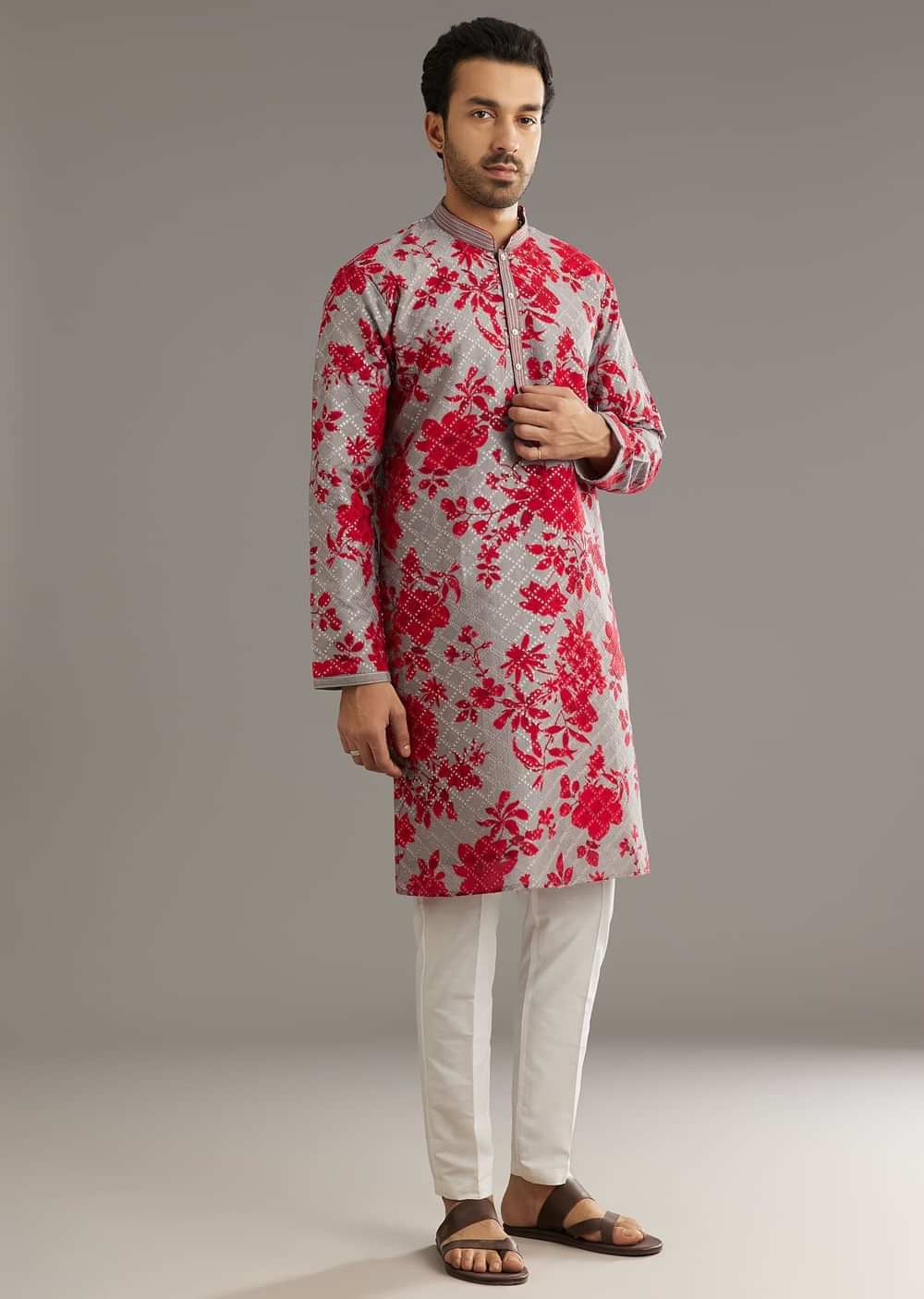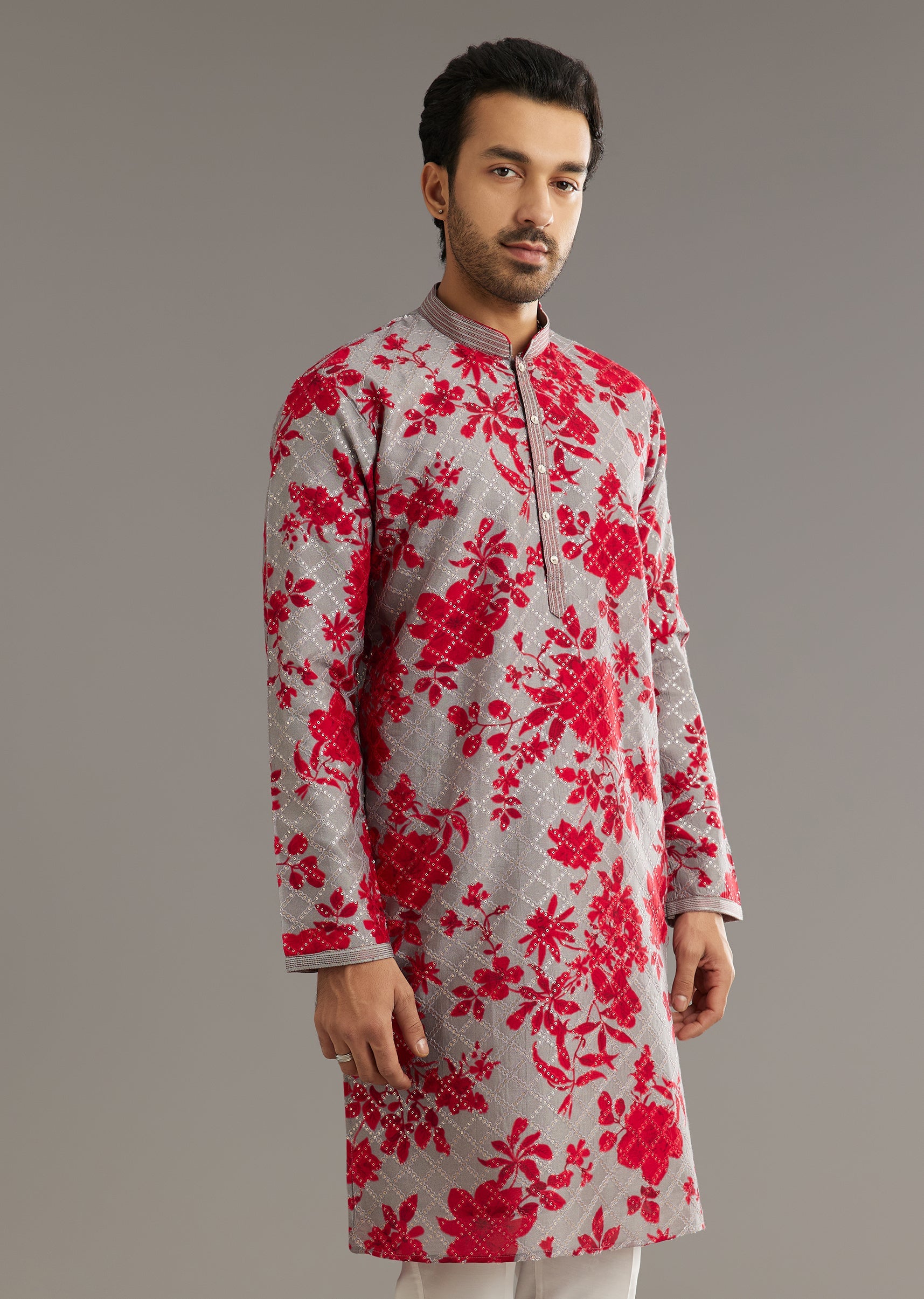 Bold red kurta set with stone embellishment on rich silk fabric crafted for festive glamour and formal events. Awarded as the Most Trusted Brand, we're delivering styles you love, just as promised.