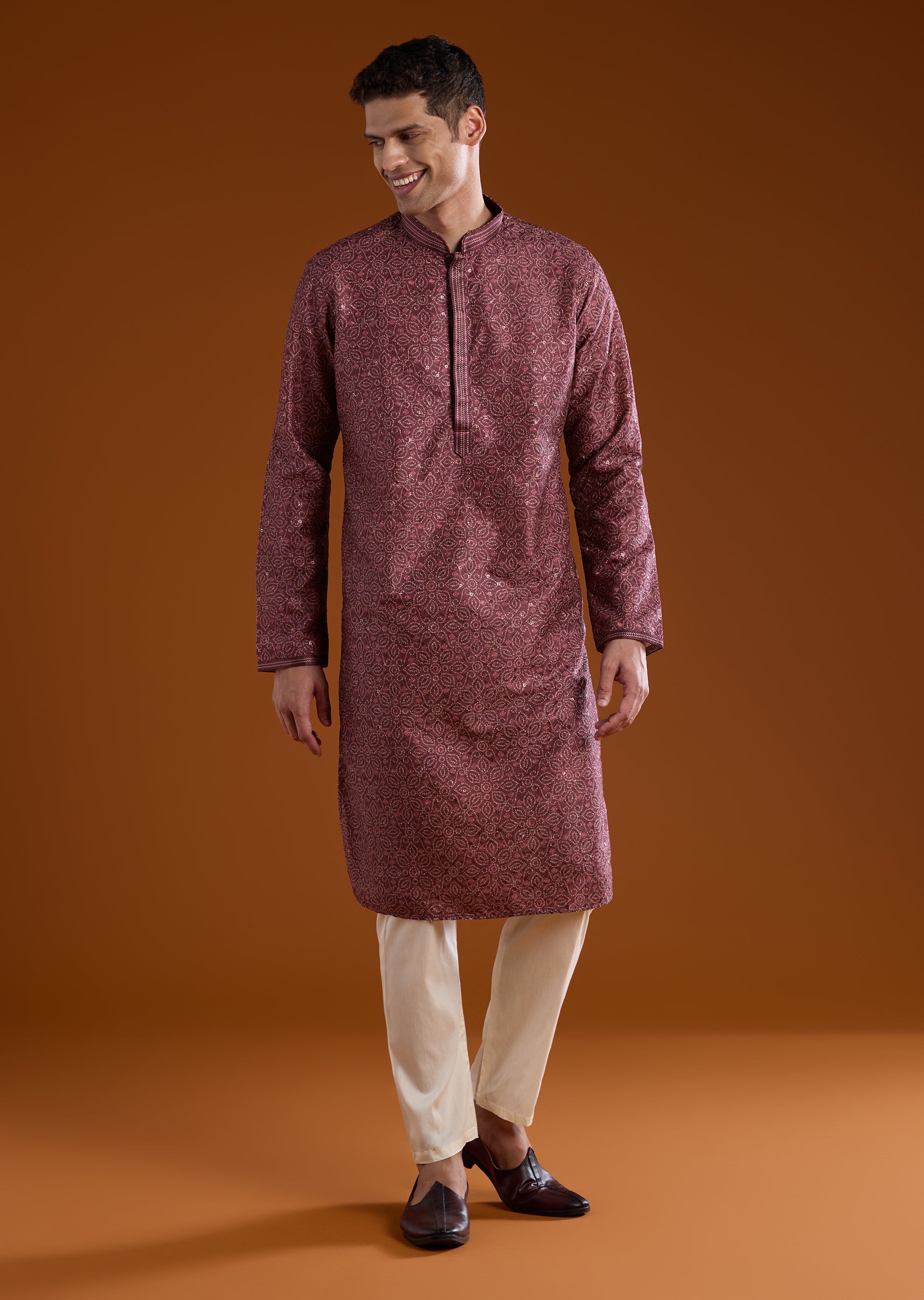 Bring classic elegance to any celebration with this silk kurta set enhanced with refined resham thread work that adds subtle traditional charm. The full sleeve kurta features a crisp mandarin... More Product Details