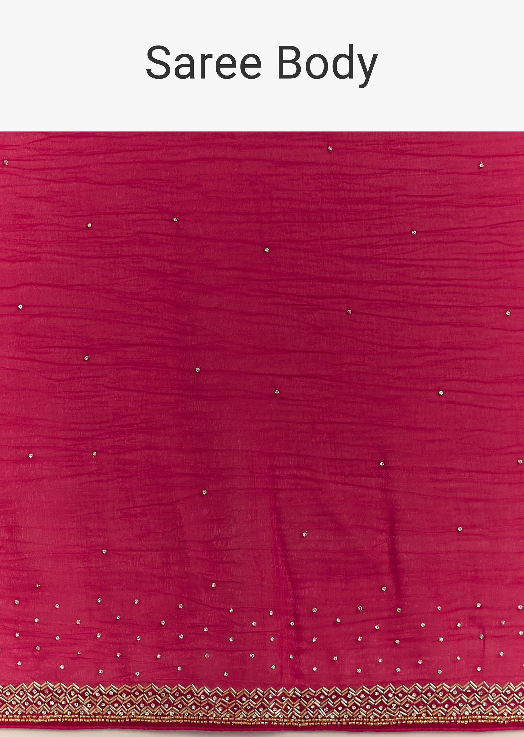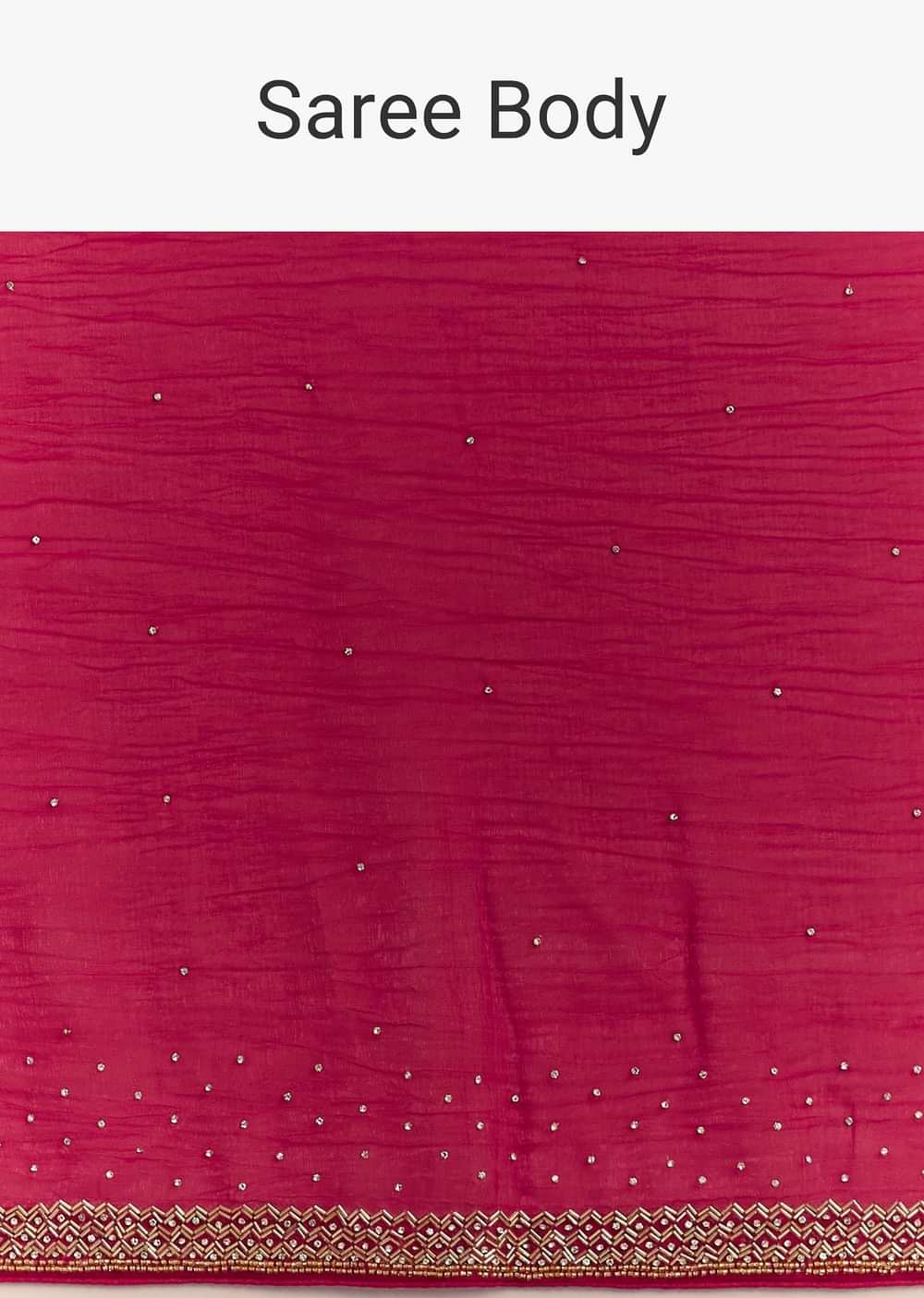 Red Stone Embellished Crushed Tissue Saree With Cutdana Embroidered Border