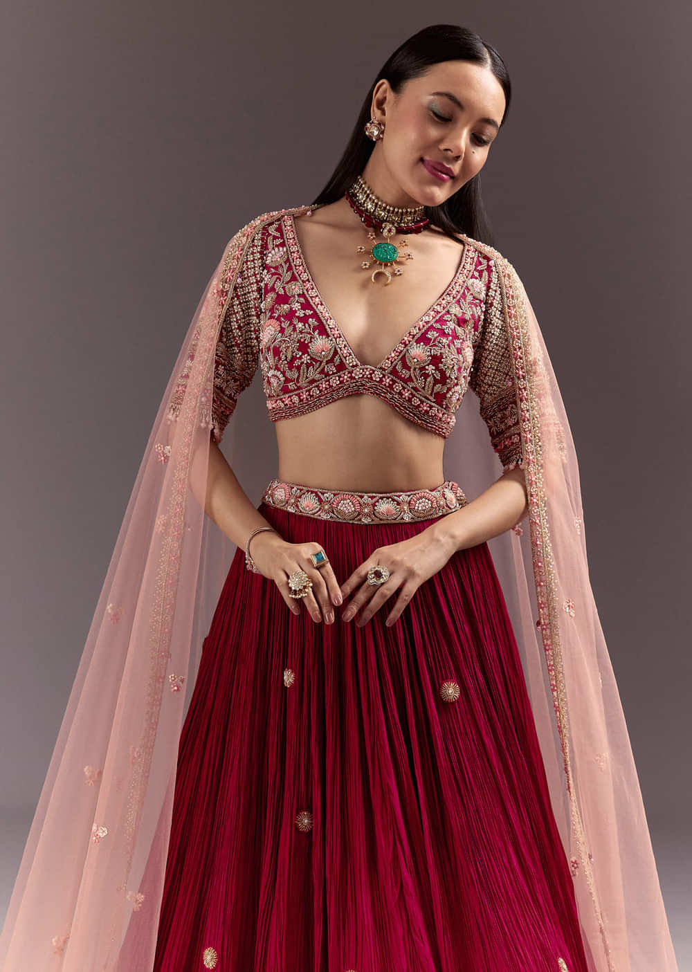 Red Zardosi Embroidered Lehenga Set With Tassel Blouse