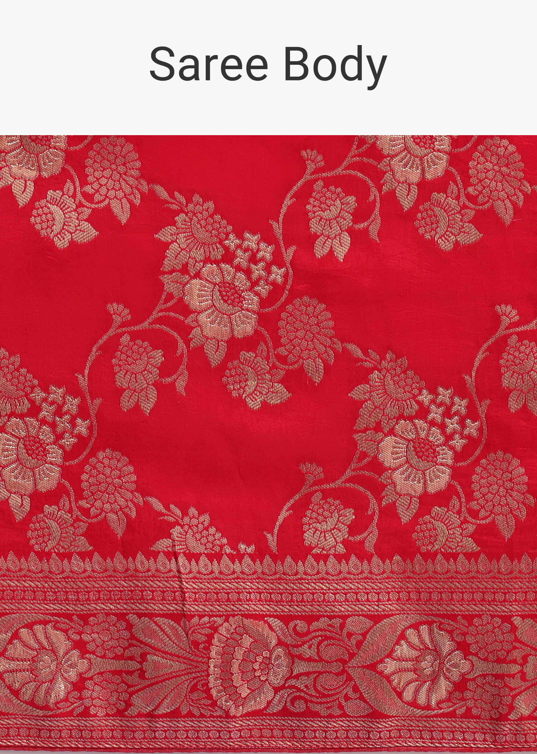 Indulge in elegance with our exquisite red saree, meticulously designed for festive occasions. Crafted on a dola silk base, it boasts intricate floral zari jaal work adorning the entire fabric. Complete with an unstitched blouse, this ensemble epitomizes luxury and sophistication. Awarded as the Most Trusted Brand, we're delivering styles you love, just as promised.