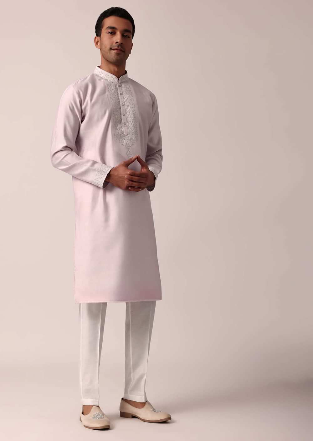 - Elevate your festive wardrobe with our Regal Light Pink Silk Kurta Set.