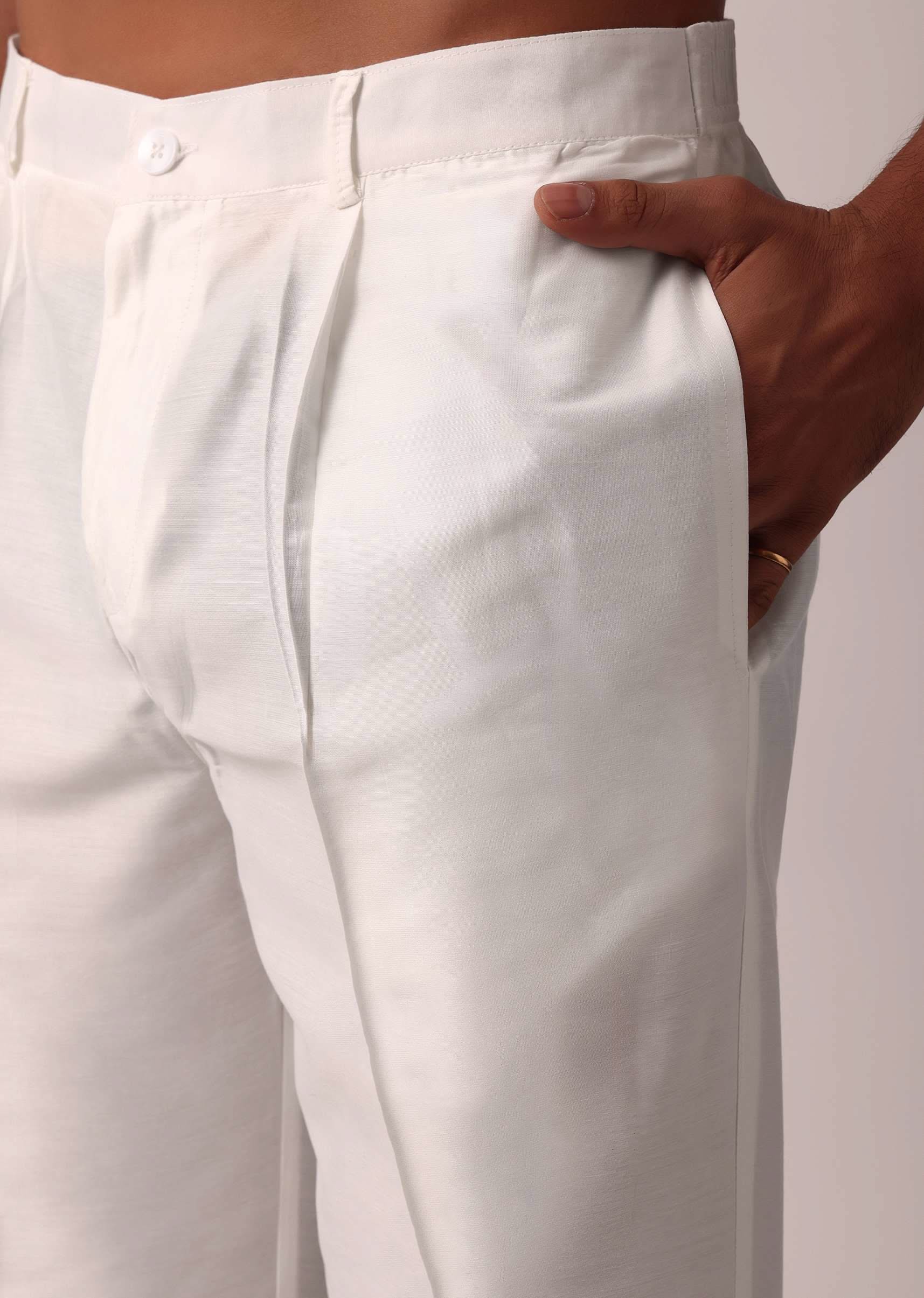 Pair this kurta set with contrasting churidar bottoms or classic dhoti pants to enhance the regal appeal.