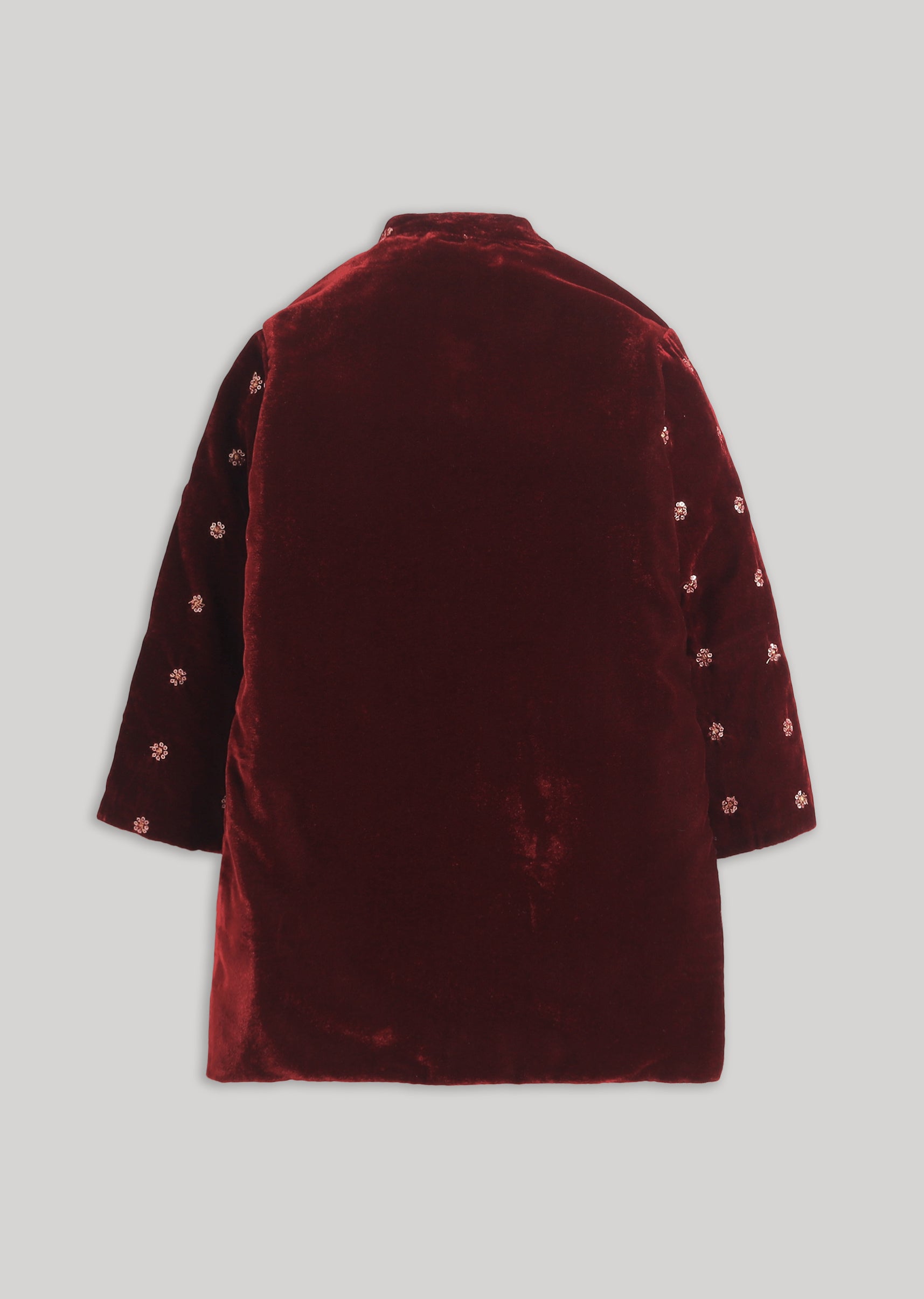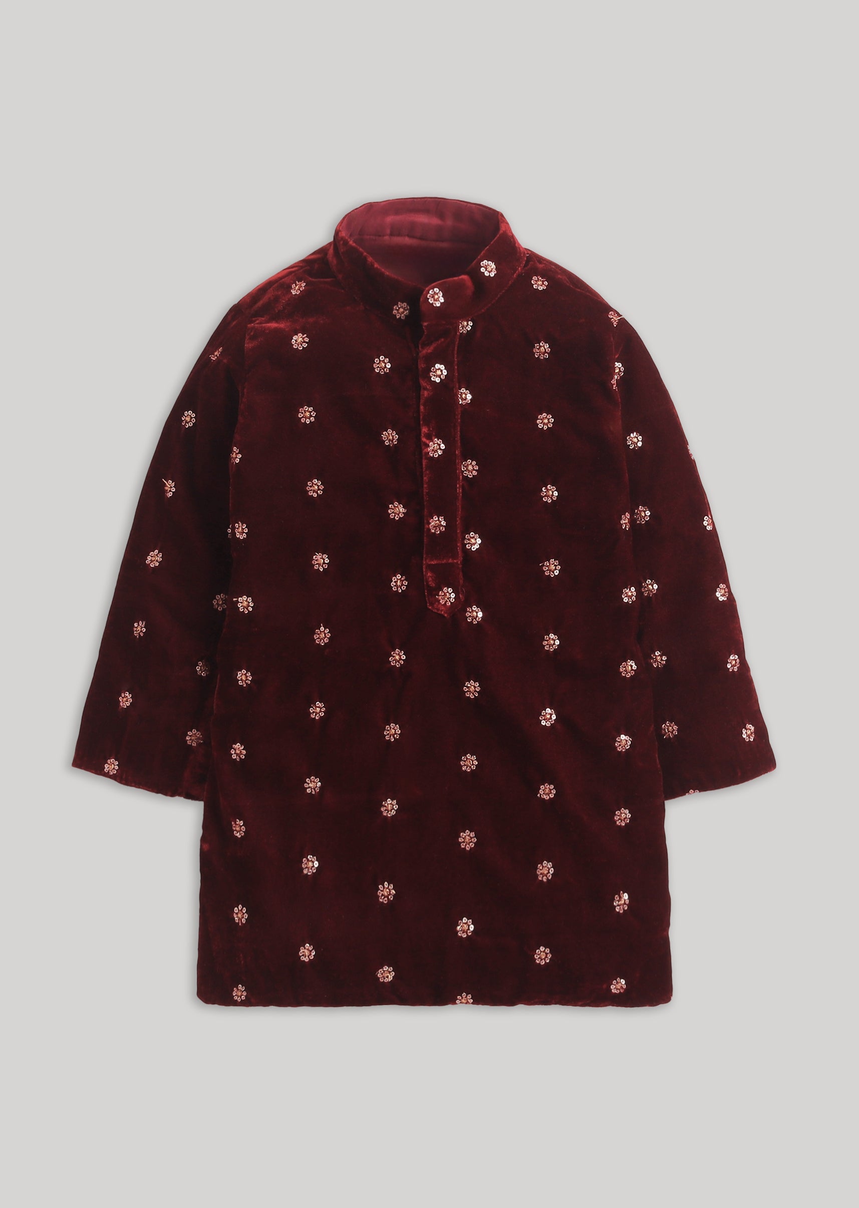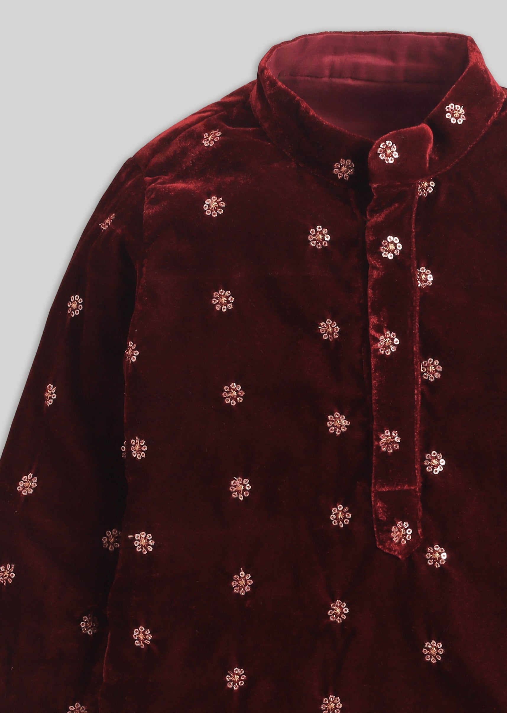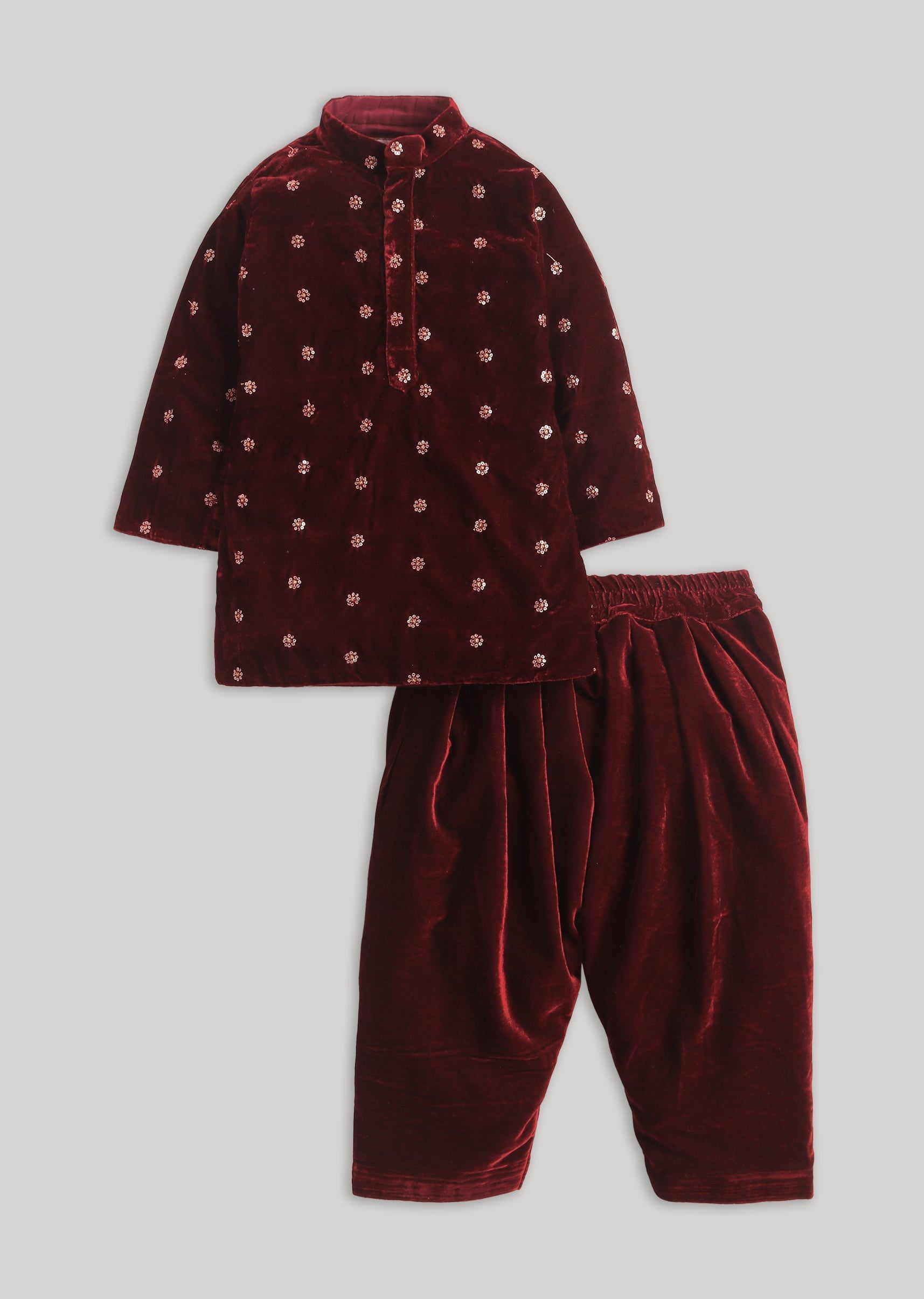 Rich Maroon Velvet Kurta Set With Zari Detailing