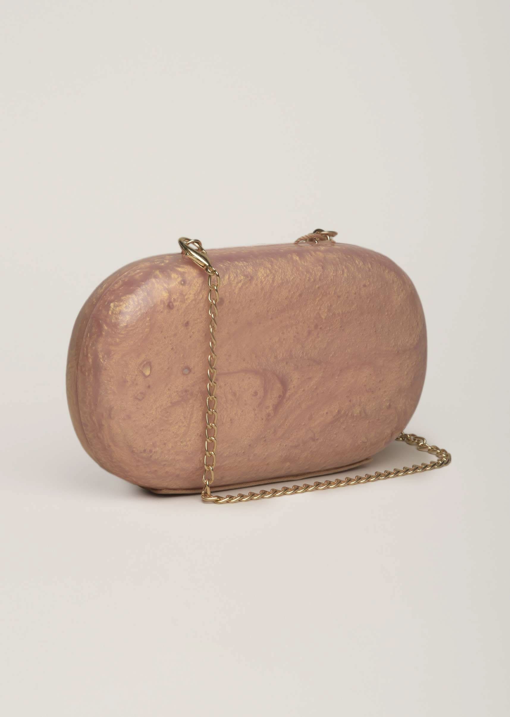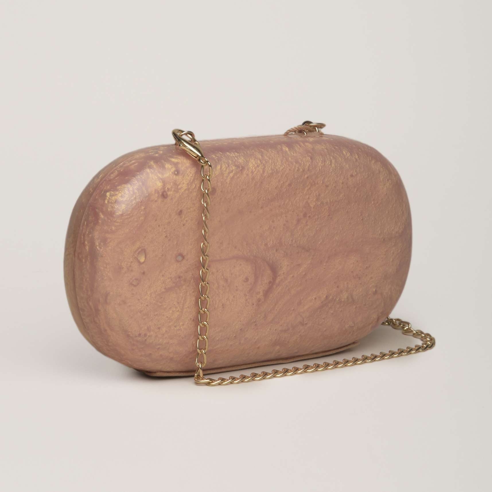 Rose Gold Clutch Bag In Resin Hand Crafted With A Gorgeous Marble Effect And Detachable Sling By Solasta