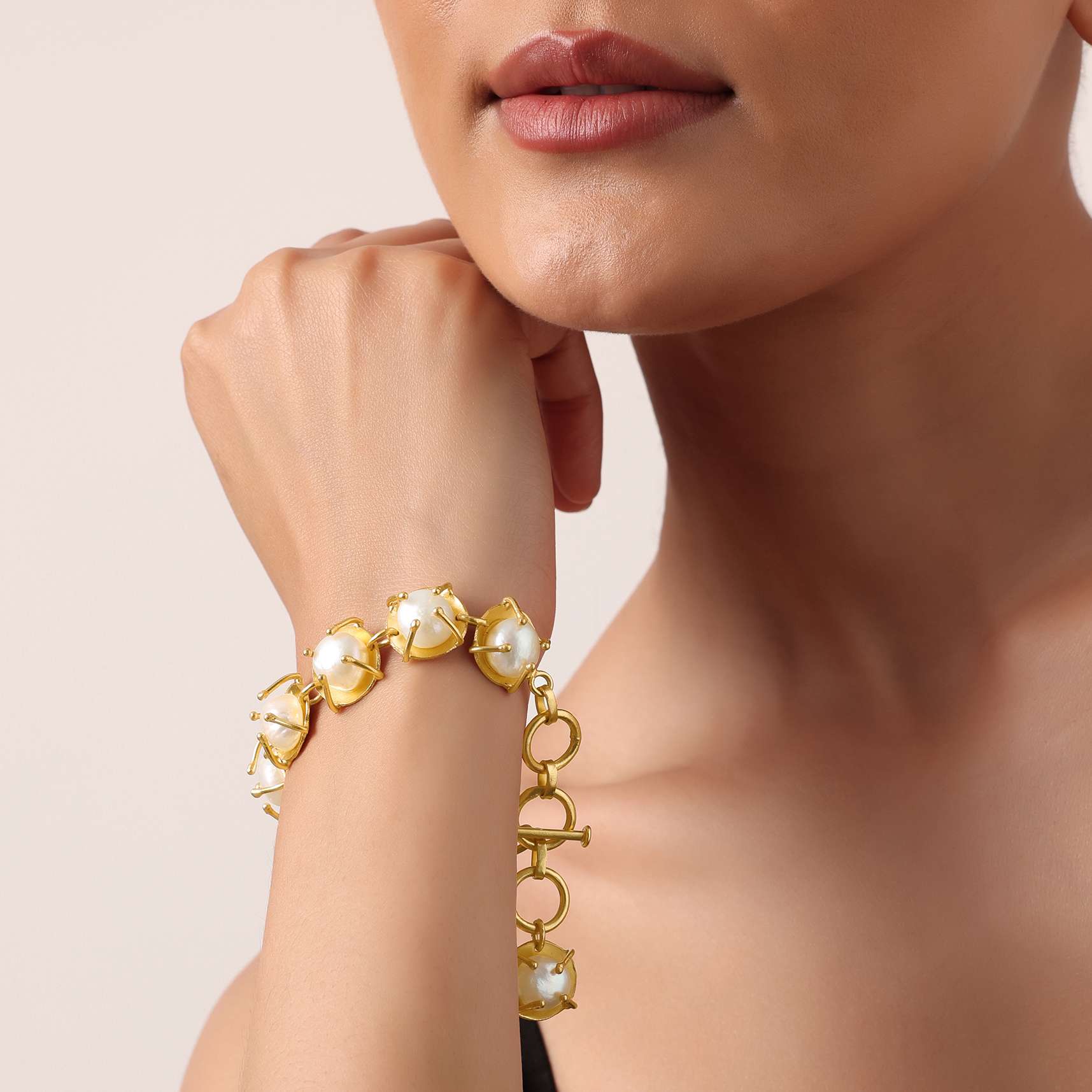 A great choice for fashionable parties, this trendy bracelet will surely make an impact. Constructed from mix metal, it is designed on a gold finish base. Flaunting a beautiful design, it is elevated with glistening white mother of pearls. Avoid contact with water, chemicals, harsh liquids, perfumes, etc. Do not wear this piece of jewelry while showering, gymming, swimming, etc. Please keep the product away from moisture and humidity when not in use. Slight variations in design may vary. Being rewarded as the most trusted brand, our customers believe we deliver the same styles as promised on the website. Awarded as the Most Trusted Brand, we're delivering styles you love, just as promised.