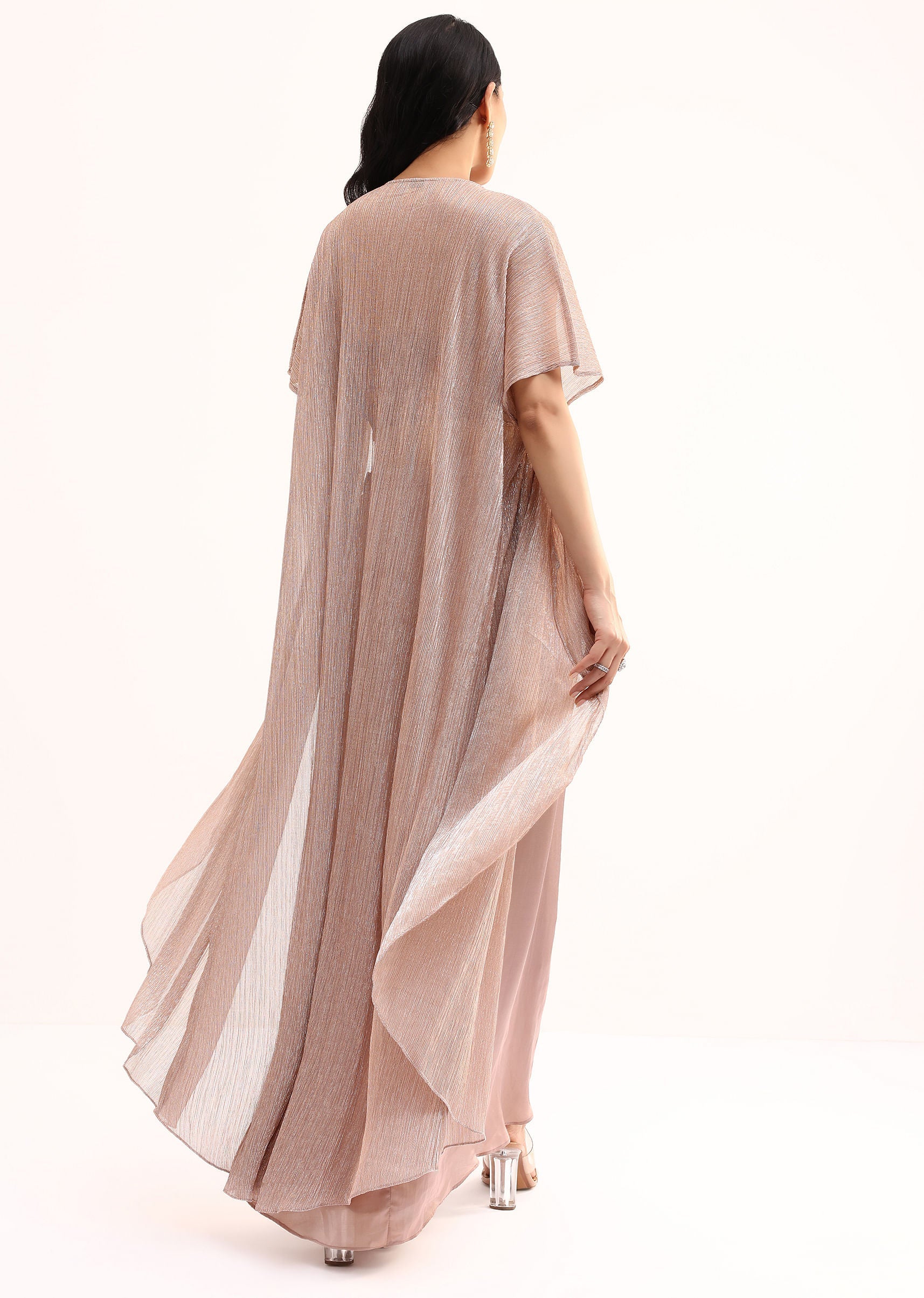 Rose Gold Stone Embroidered Silk Crop Top Set With Jacket
