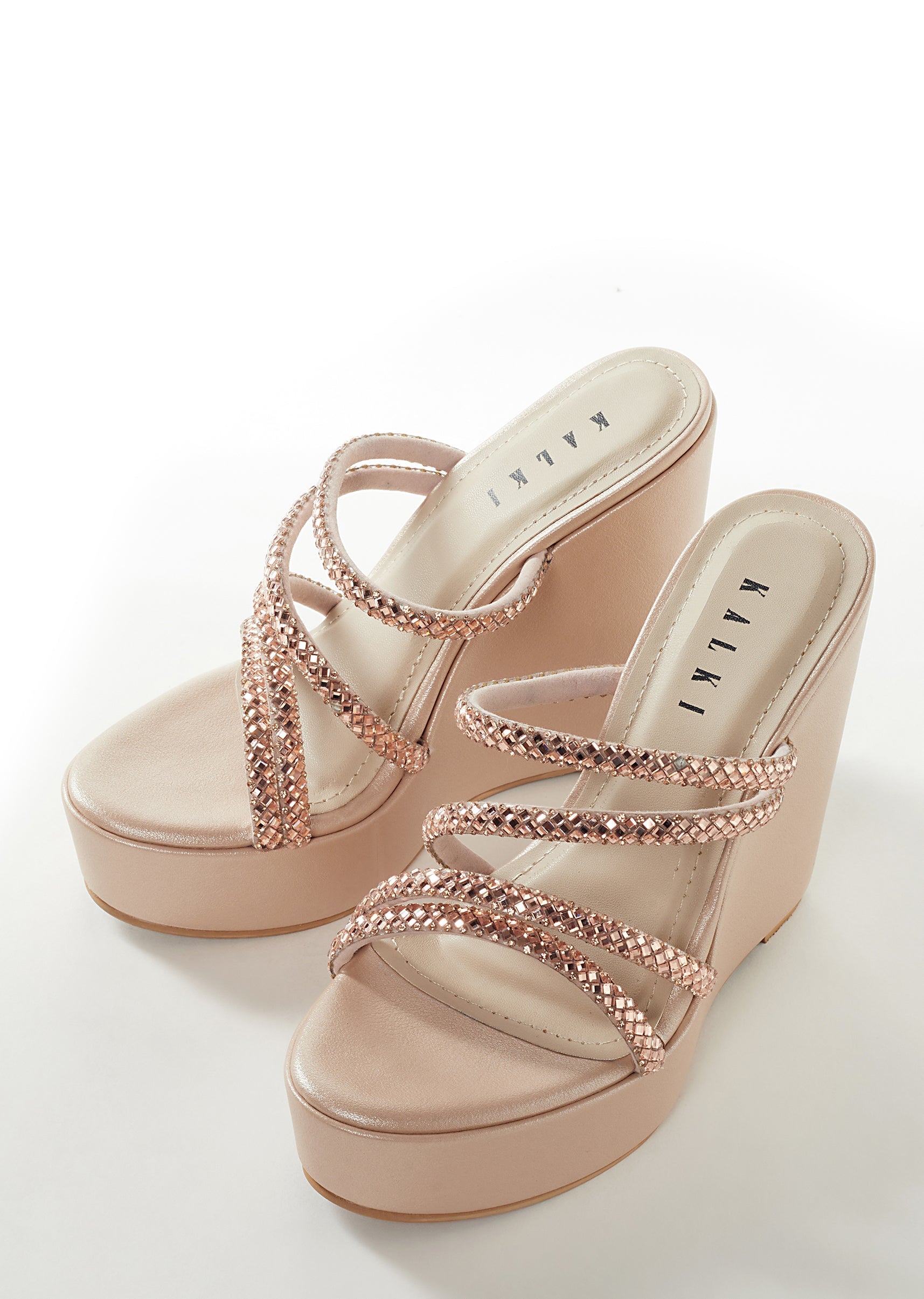 Elegant and contemporary, these rose gold footwear pieces bring a soft shimmer perfect for receptions, cocktail evenings, and wedding celebrations. Crafted in smooth faux leather, the design features delicate embellished... More Product Details