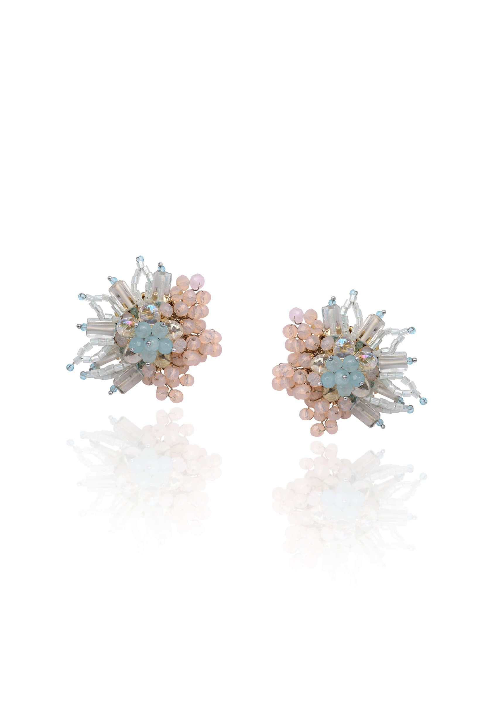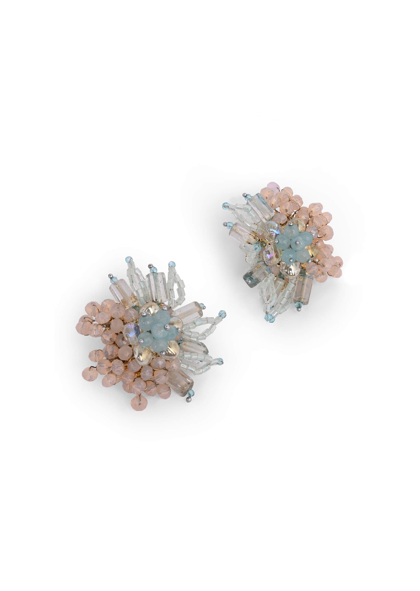 Round Peach And Turq Earrings For Everyday Look