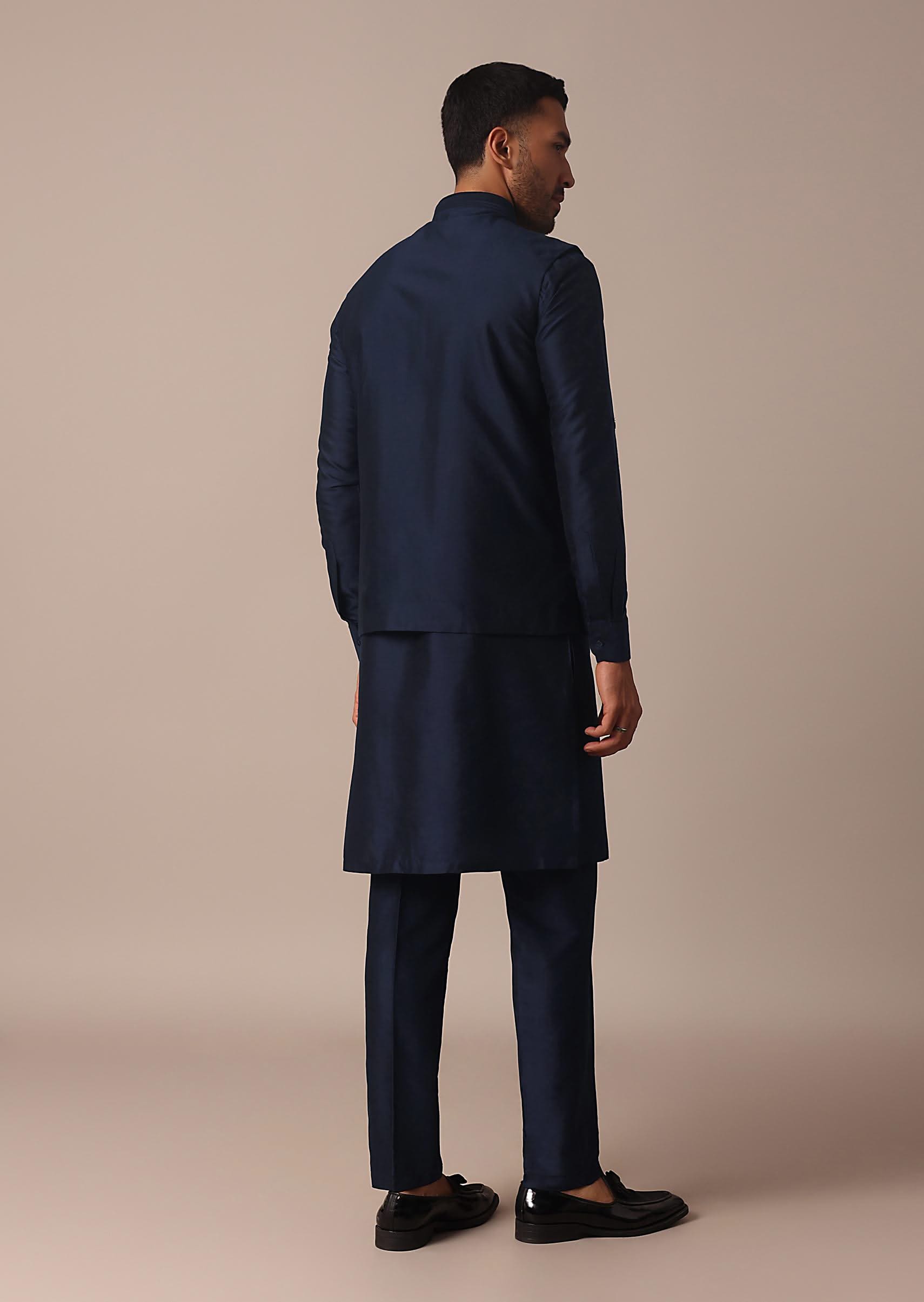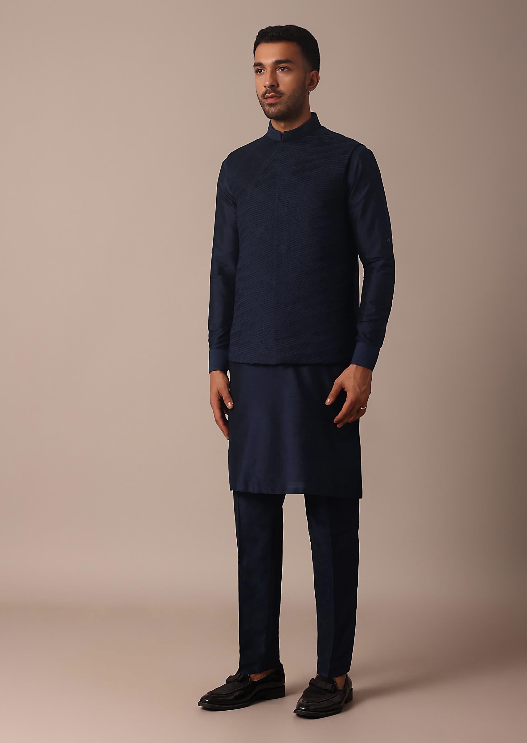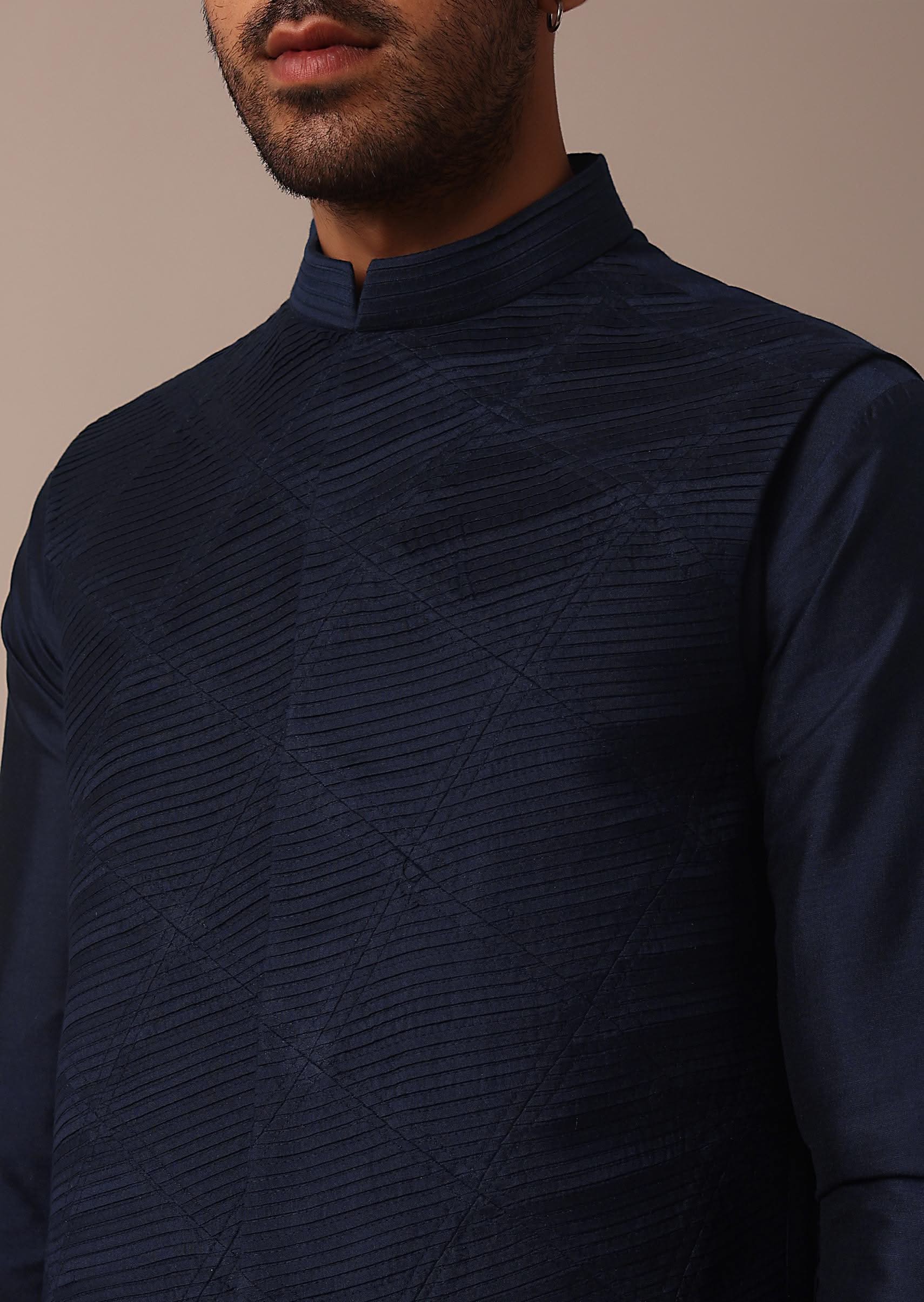 Royal Blue Jacket Kurta Set With Pintuck Detailing