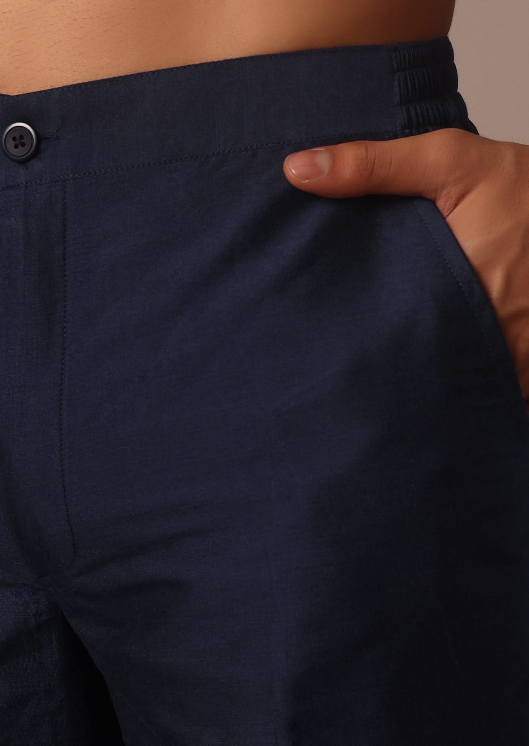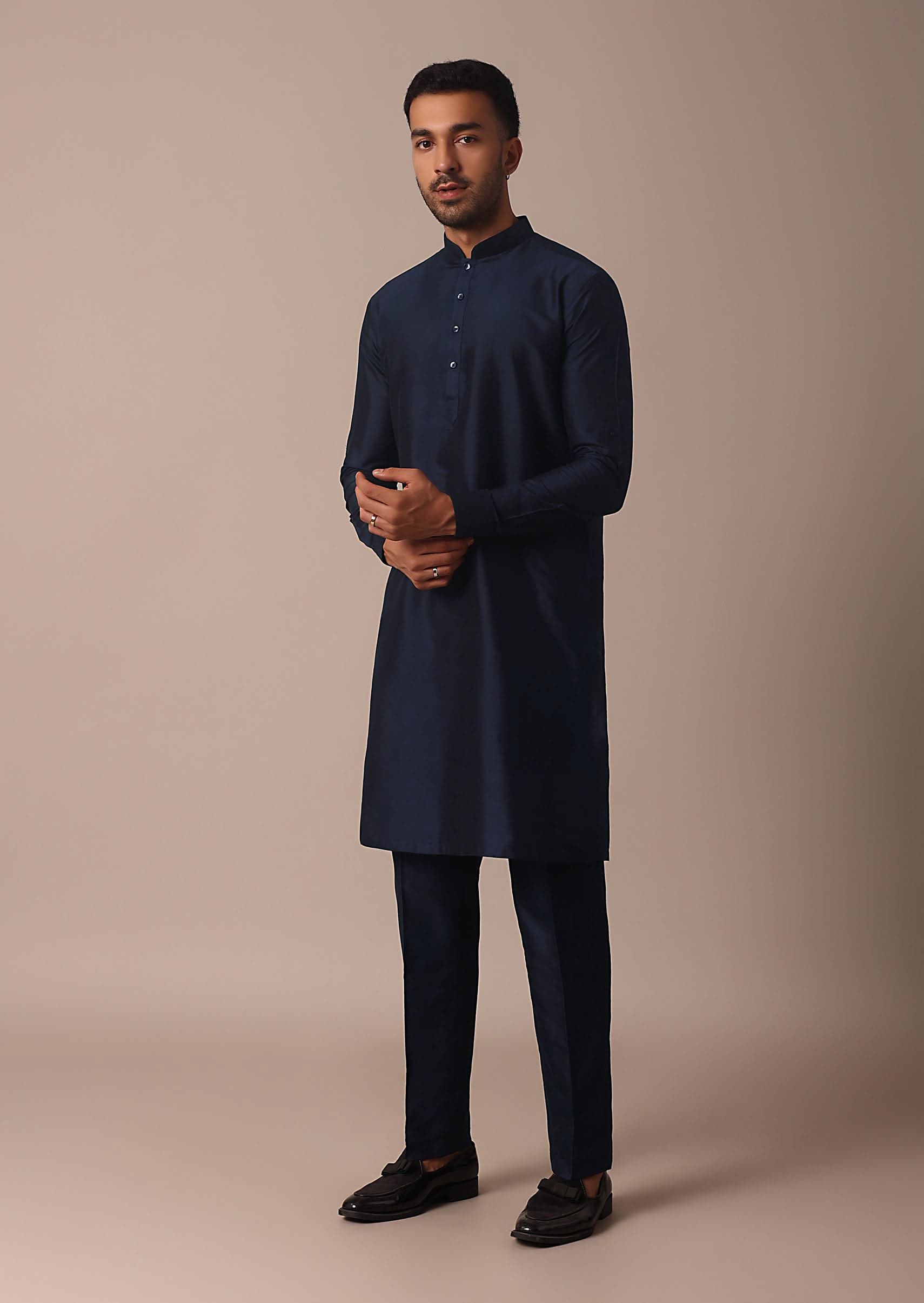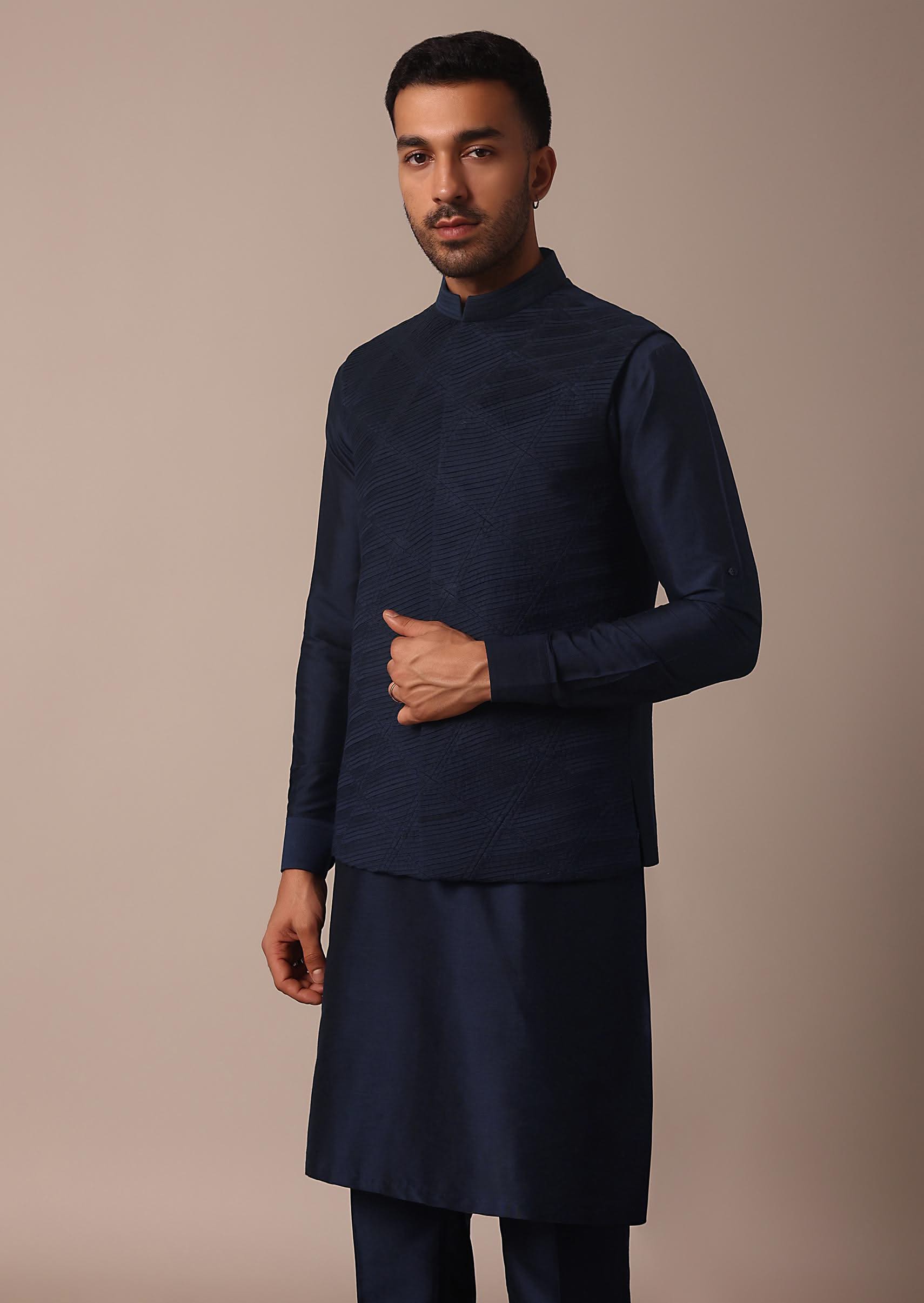 Royal Blue Jacket Kurta Set With Pintuck Detailing