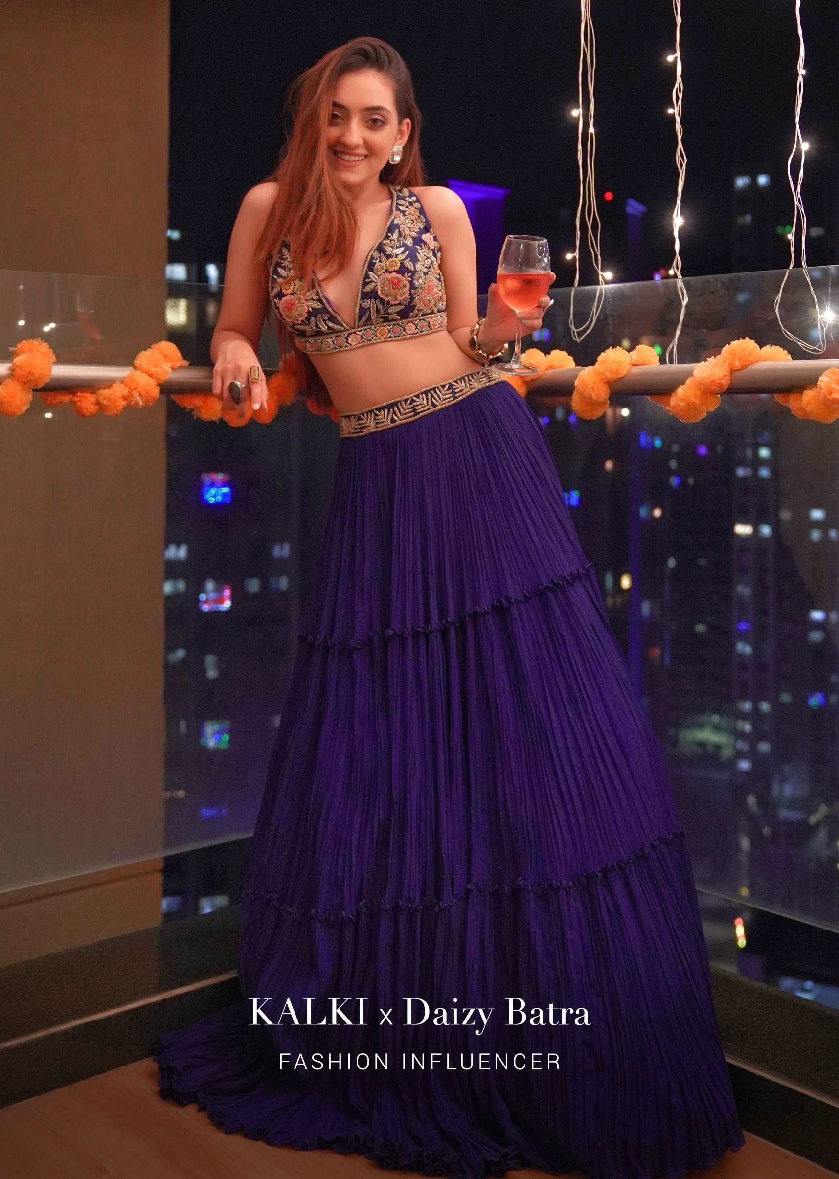 Royal blue lehenga in georgette with gathered flare and raw silk choli. The choli is hand embroidered with multi colored beads, resham, cut dana and zardosi in floral jaal design. It is crafted sleeveless with plunging neckline and side zip closure. Topped with a peach net dupatta with embroidered buttis and border. This piece comes with padding and cancan. Awarded As The Most Trusted Brand We'Re Delivering Styles You Love Just As Promised.