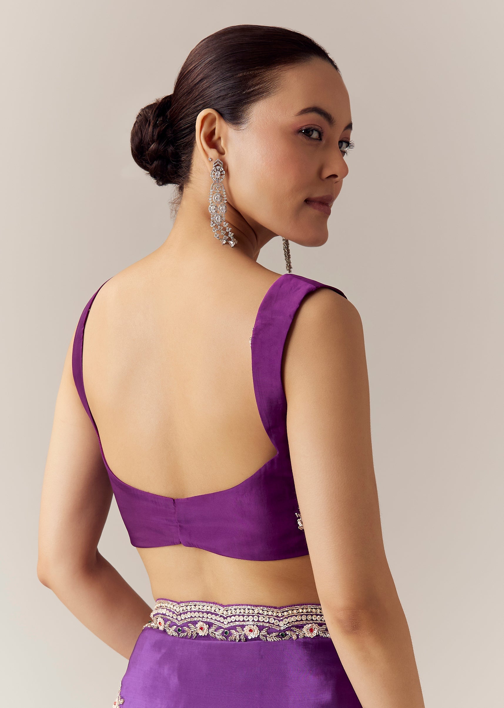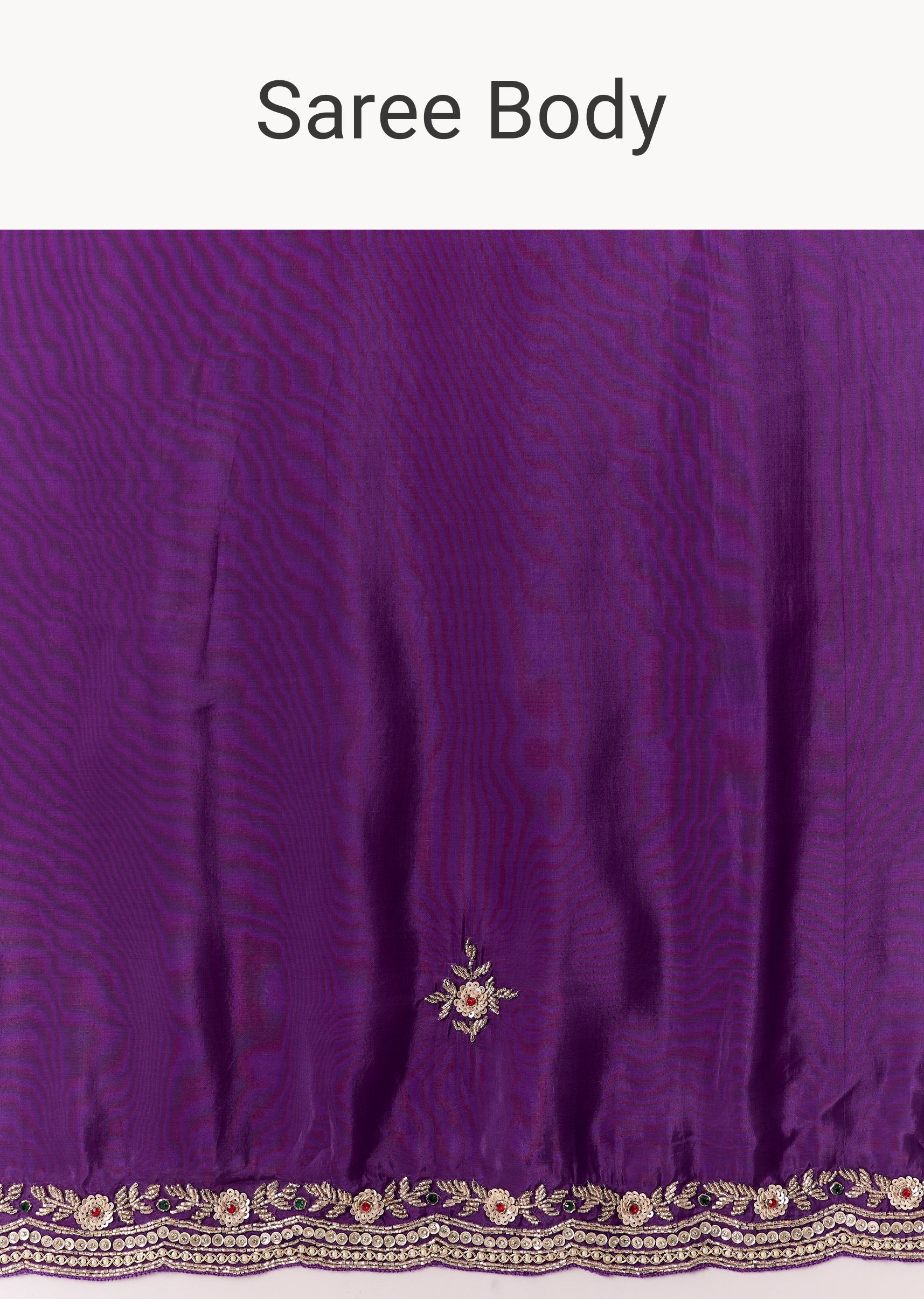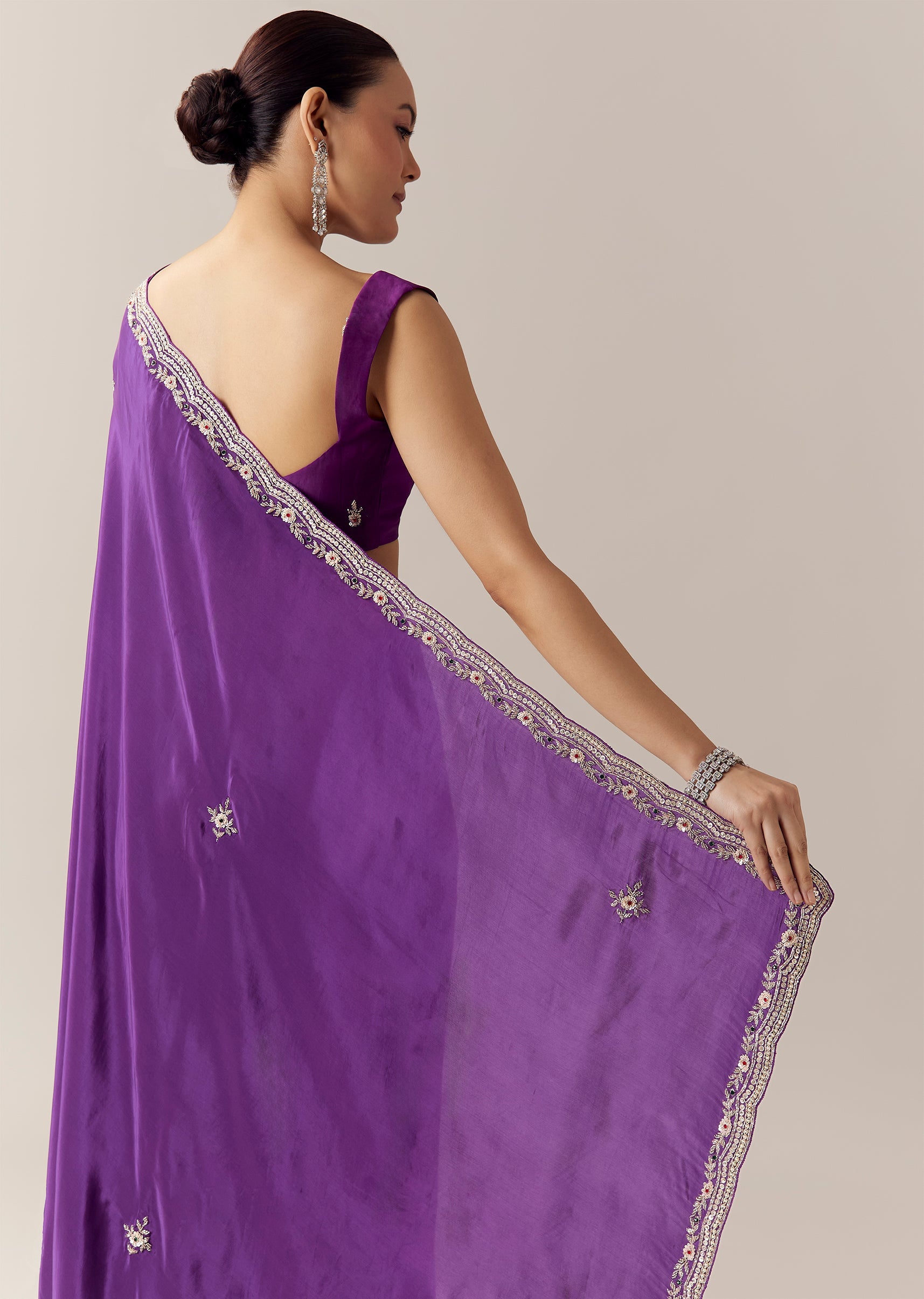 Royal blue elegance takes center stage in this silk crepe saree, featuring a beautifully scalloped border and delicate butti hand embroidery crafted with cut dana, sequins, and beads for a... More Product Details
