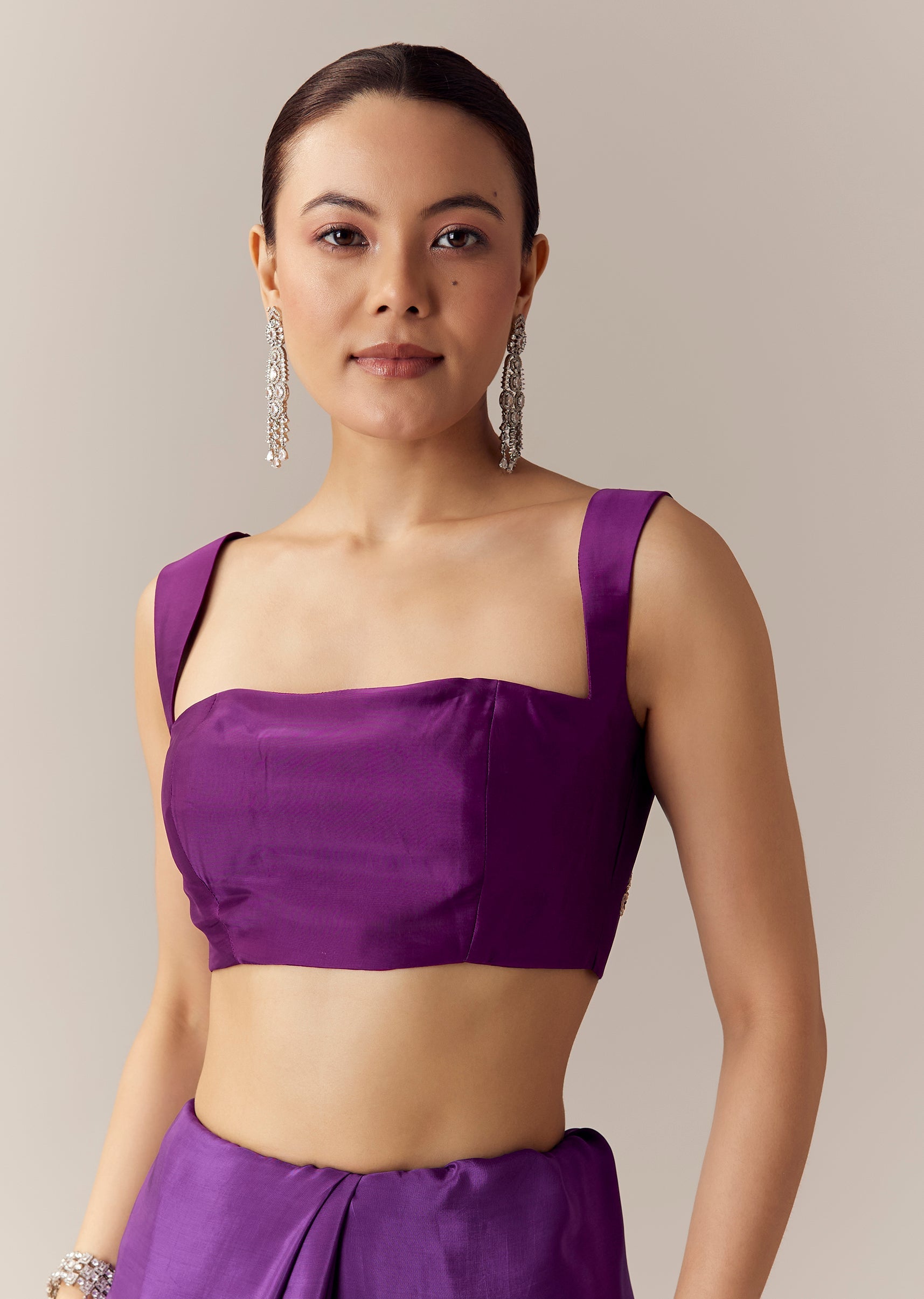 Royal Blue Silk Crepe Saree with Unstitched Blouse