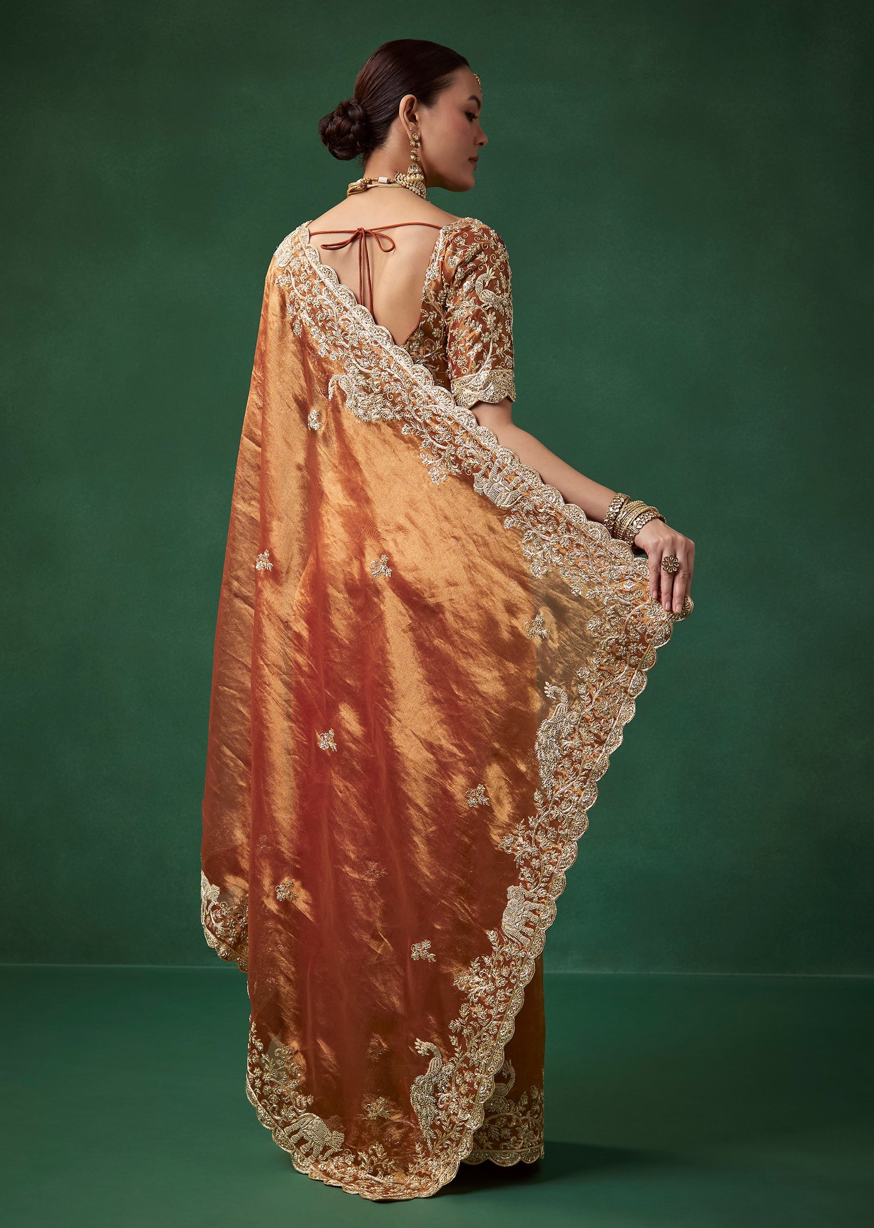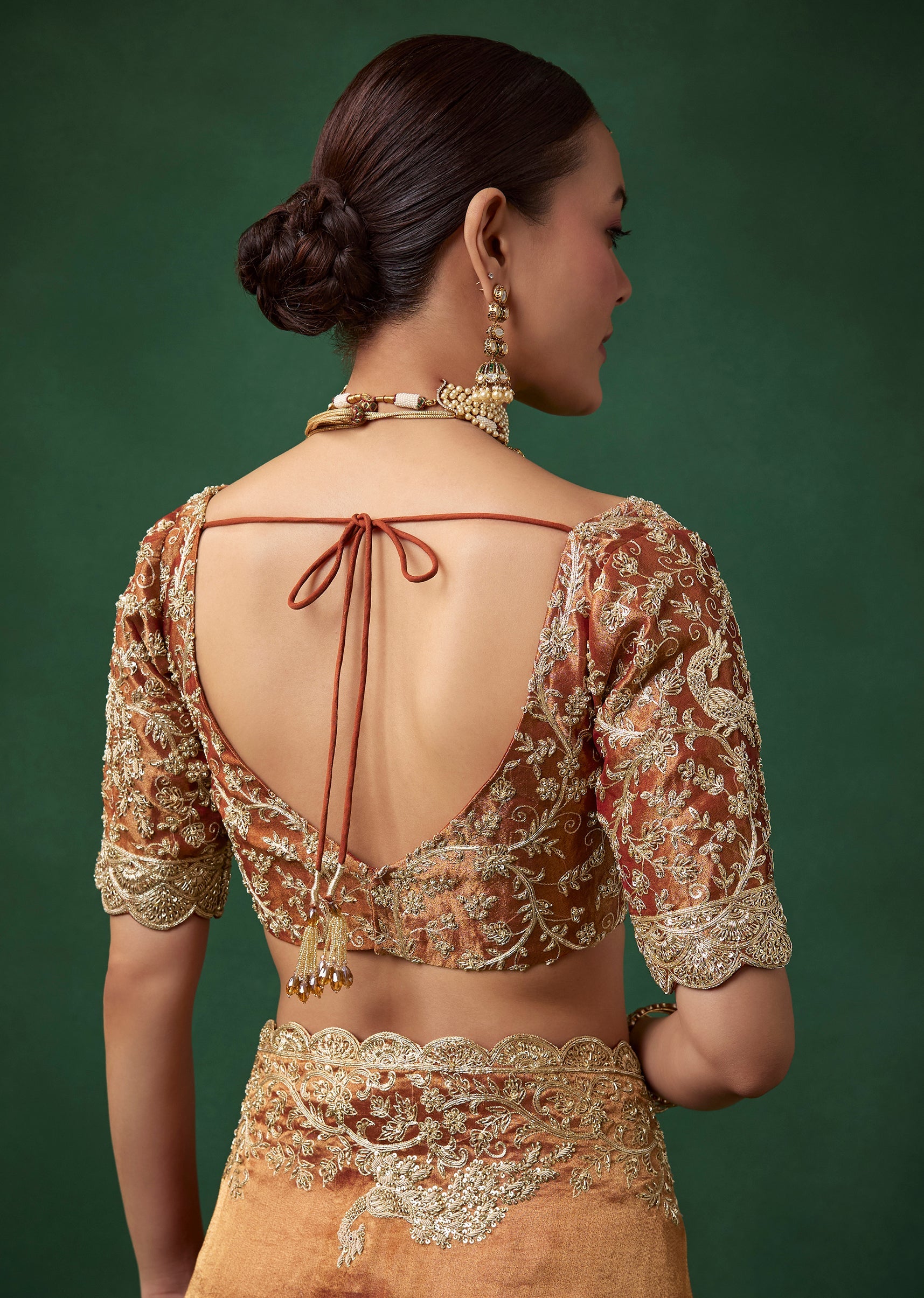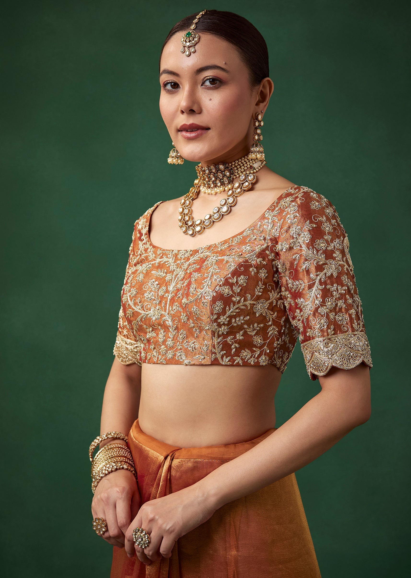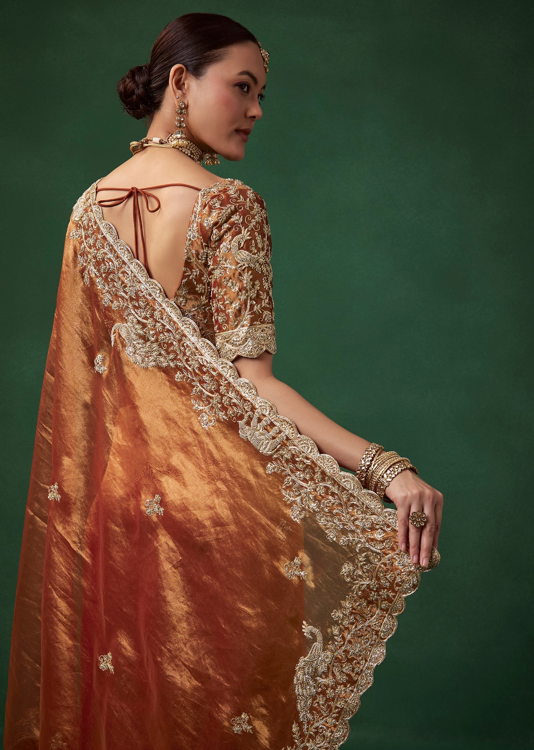 Rust Bridal Silk Organza Saree with Unstitched Blouse