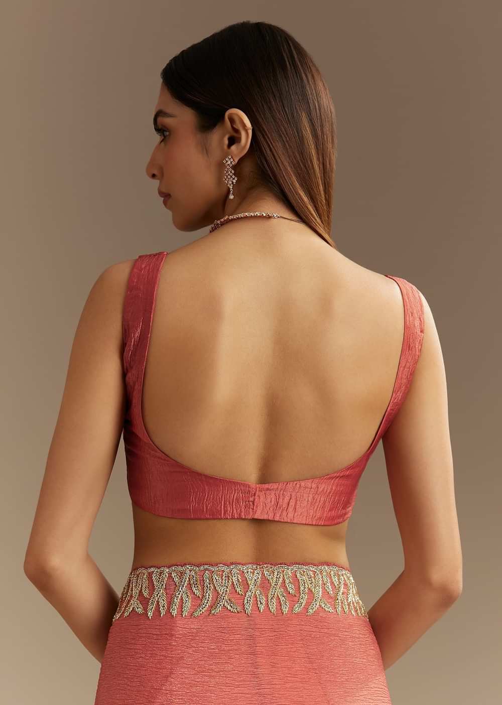 Drape Yourself In Refined Elegance With This Rust Brown Crushed Tissue Saree Exuding Understated Glamour. The Soft Texture Of The Fabric Is Beautifully Complemented By Intricate Cutdana And Stone Embroidery... More Product Details