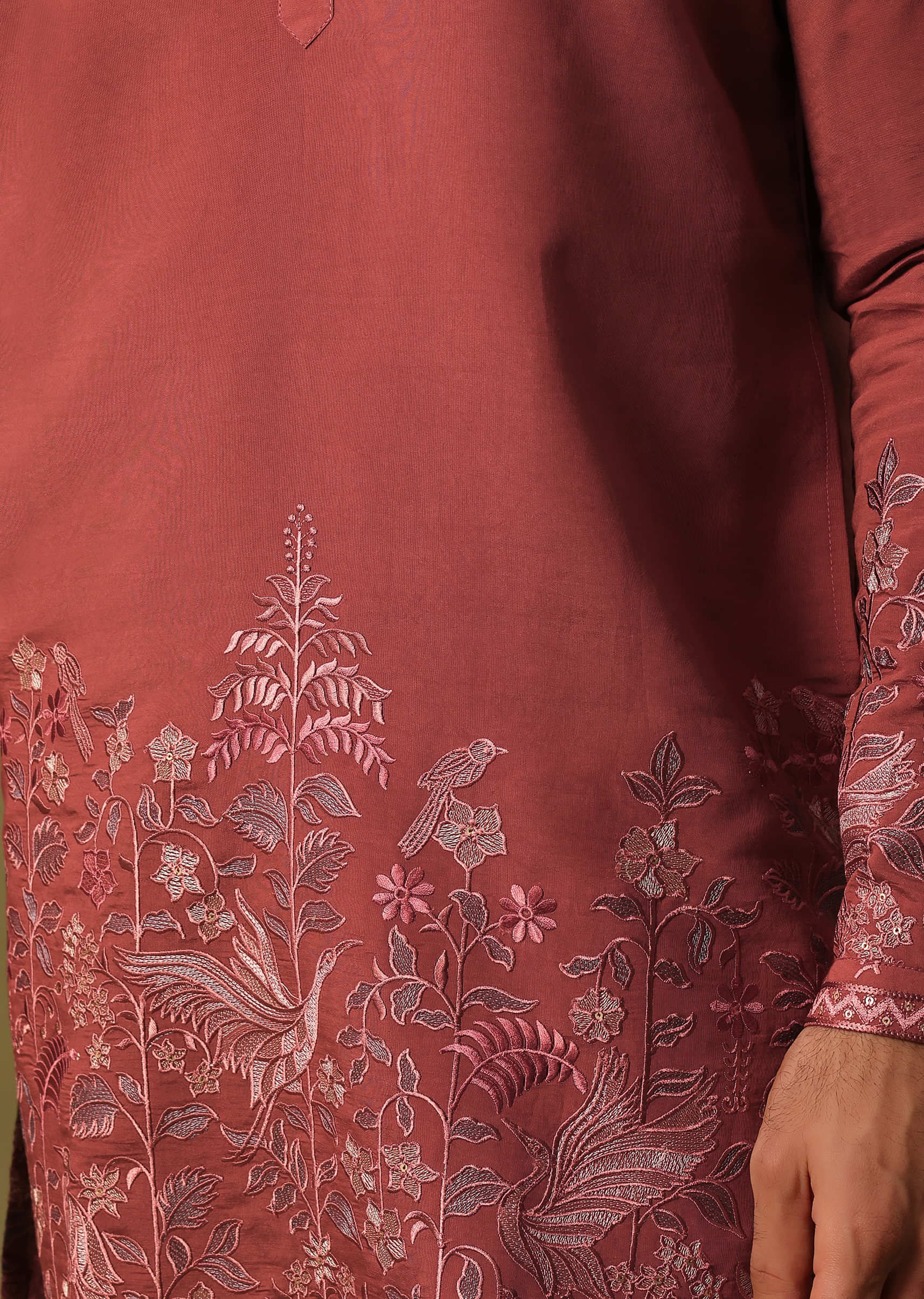 Discover festive charm in our rust orange polyester kurta set showcasing detailed resham work. This ensemble presents a chic kurta alongside finely tailored pants. Awarded as the Most Trusted Brand, we're delivering styles you love, just as promised.