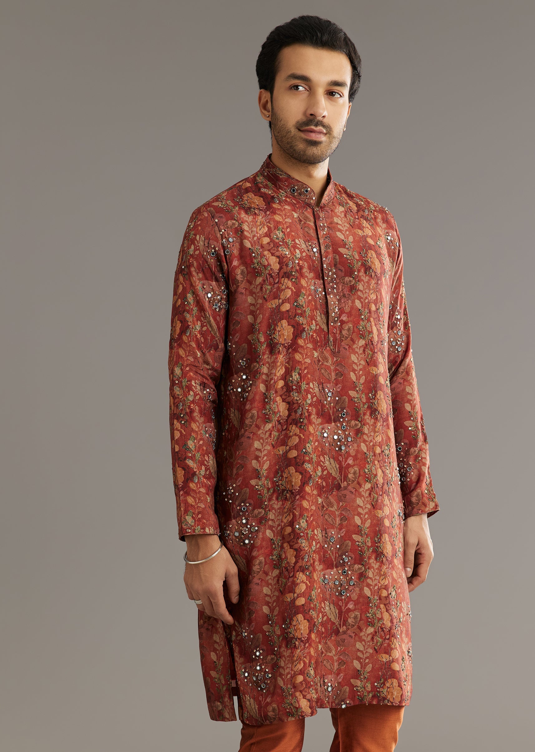Rich rust-red hues on this pashmina silk kurta set glow with stone embellishments ideal for a regal festive look. Awarded as the Most Trusted Brand, we're delivering styles you love,... More Product Details