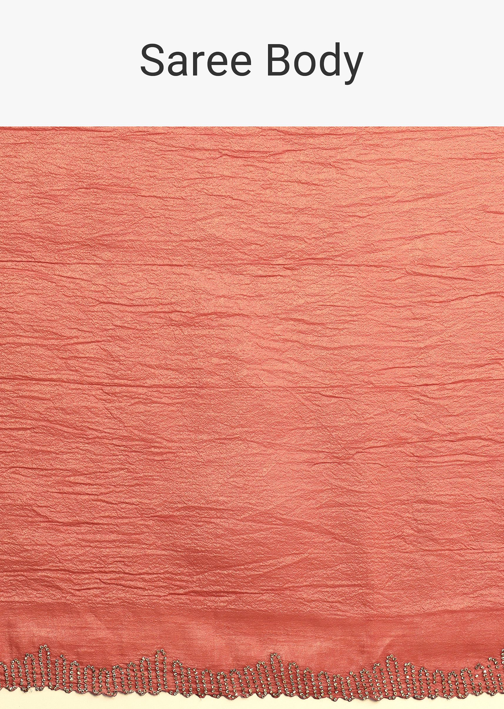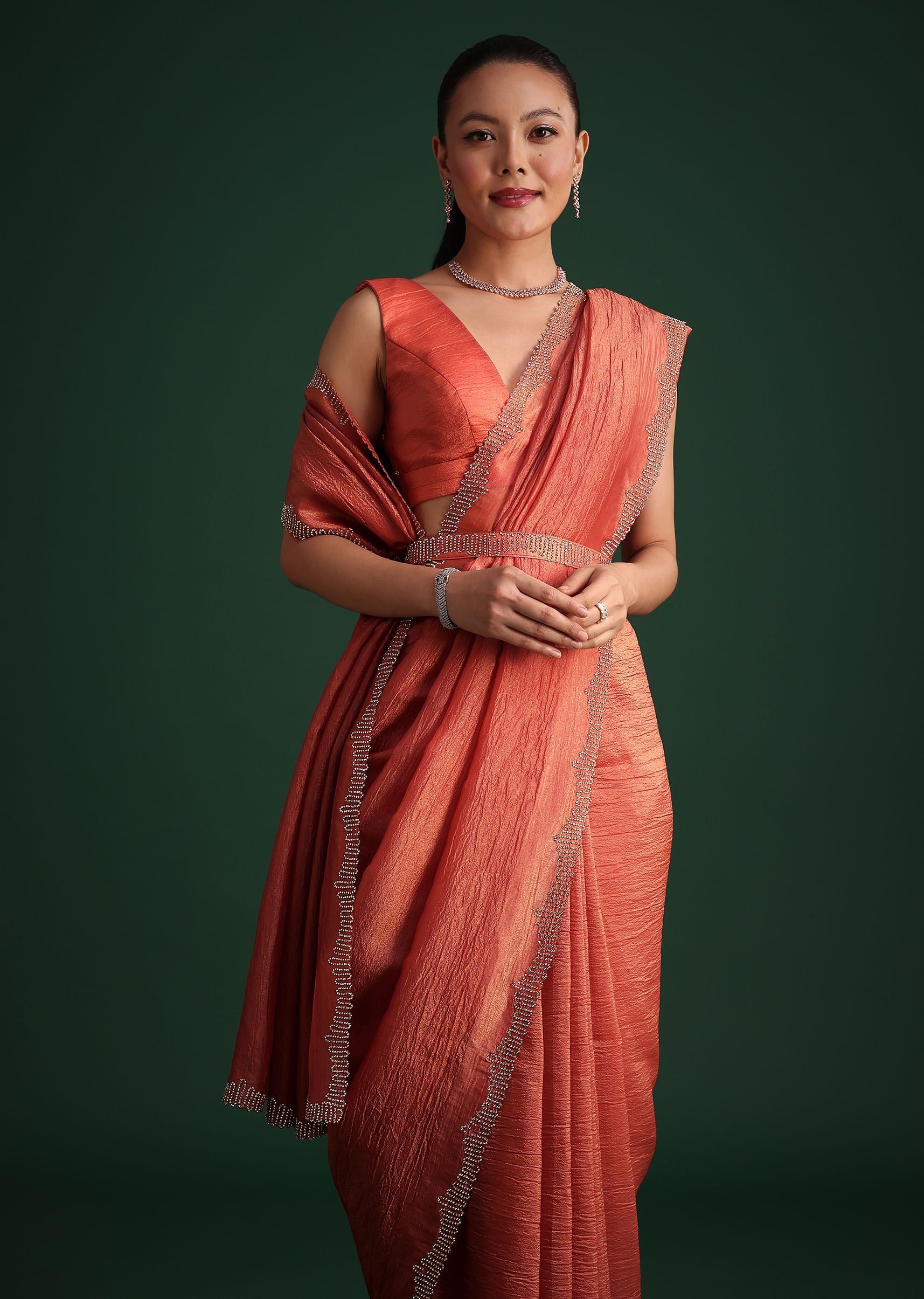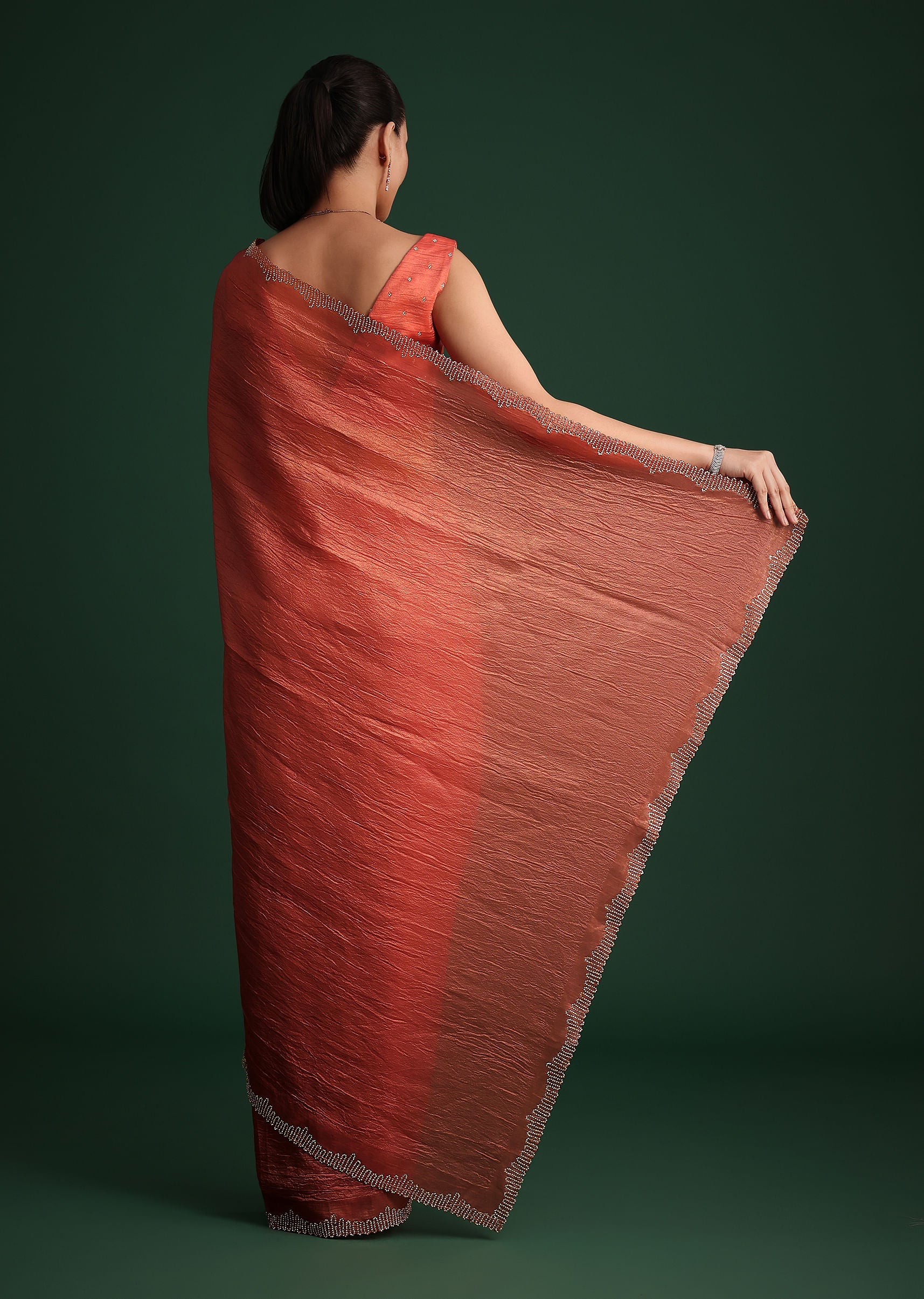 Rust Pink Crushed Tissue Saree With Diamond Work Border