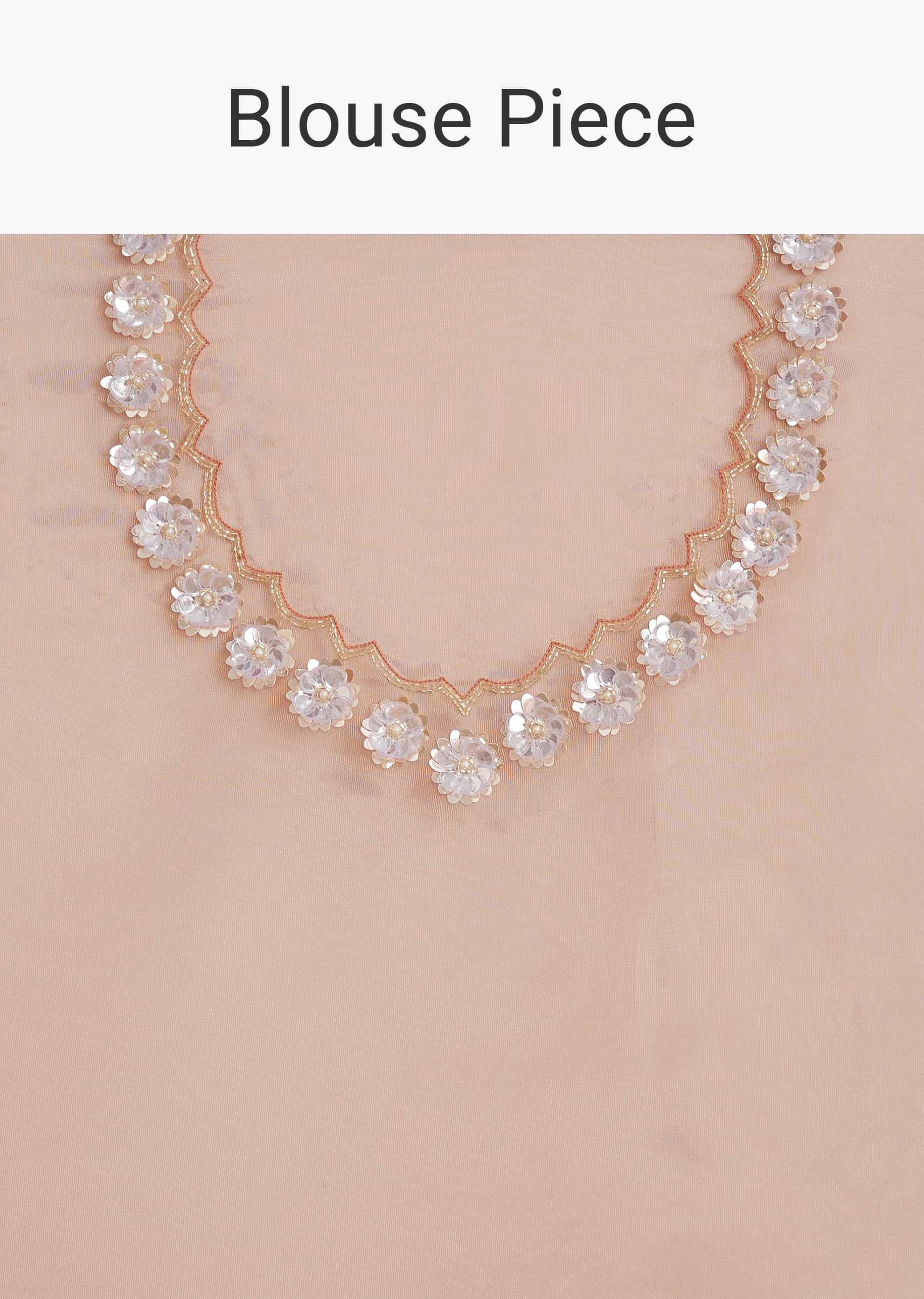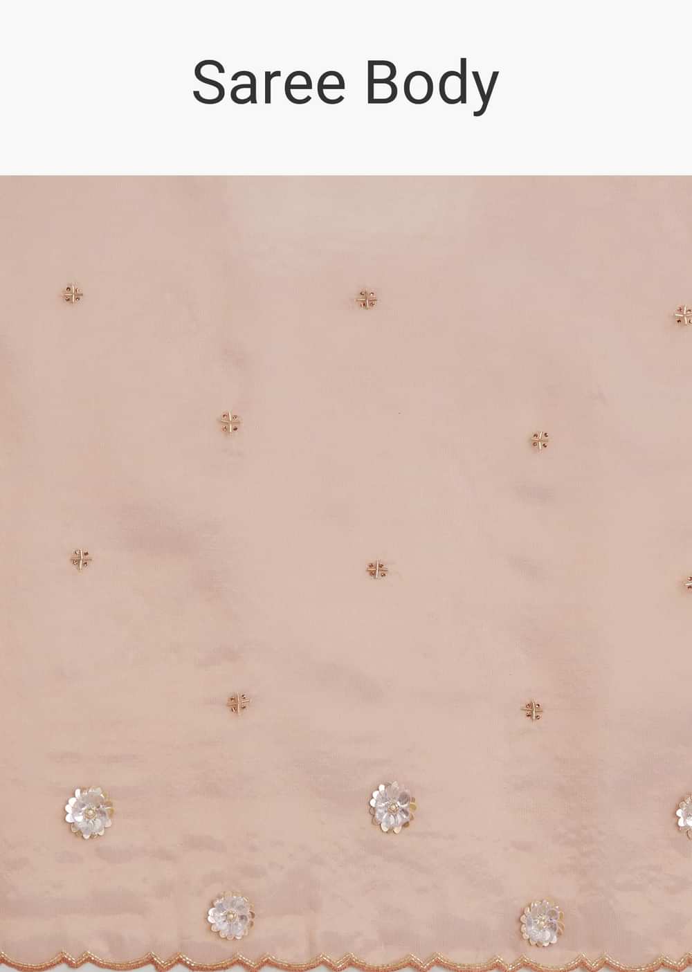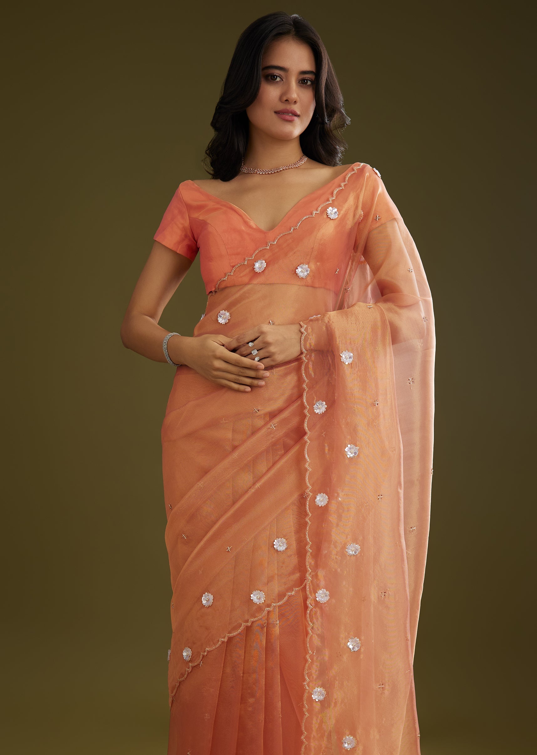 Rust Pink Tissue Floral Embroidered Saree With Cutdana Scallop Border