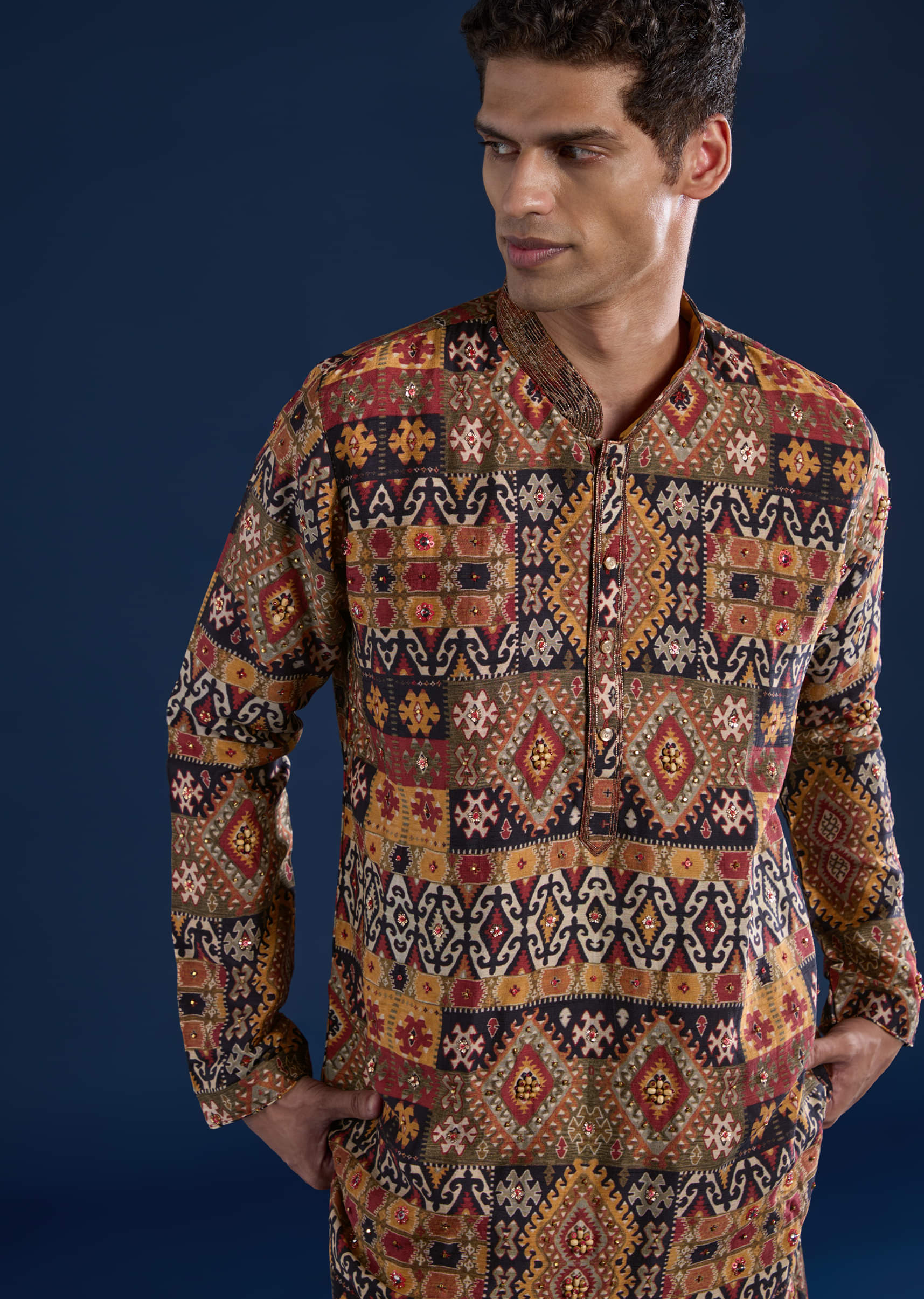 Fit Tips:Ensure a tailored fit at the shoulders and chest to highlight the kurta’s sharp lines and elegant craftsmanship.