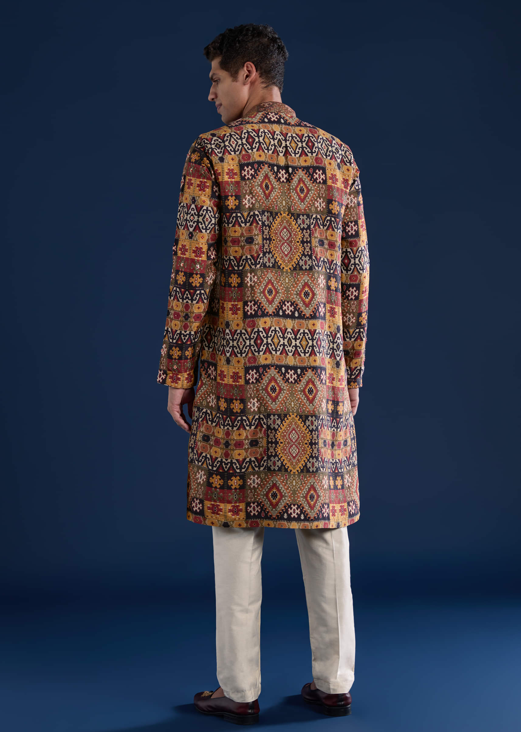 Pair with classic mojris and a subtle pocket square for a polished, regal look.
