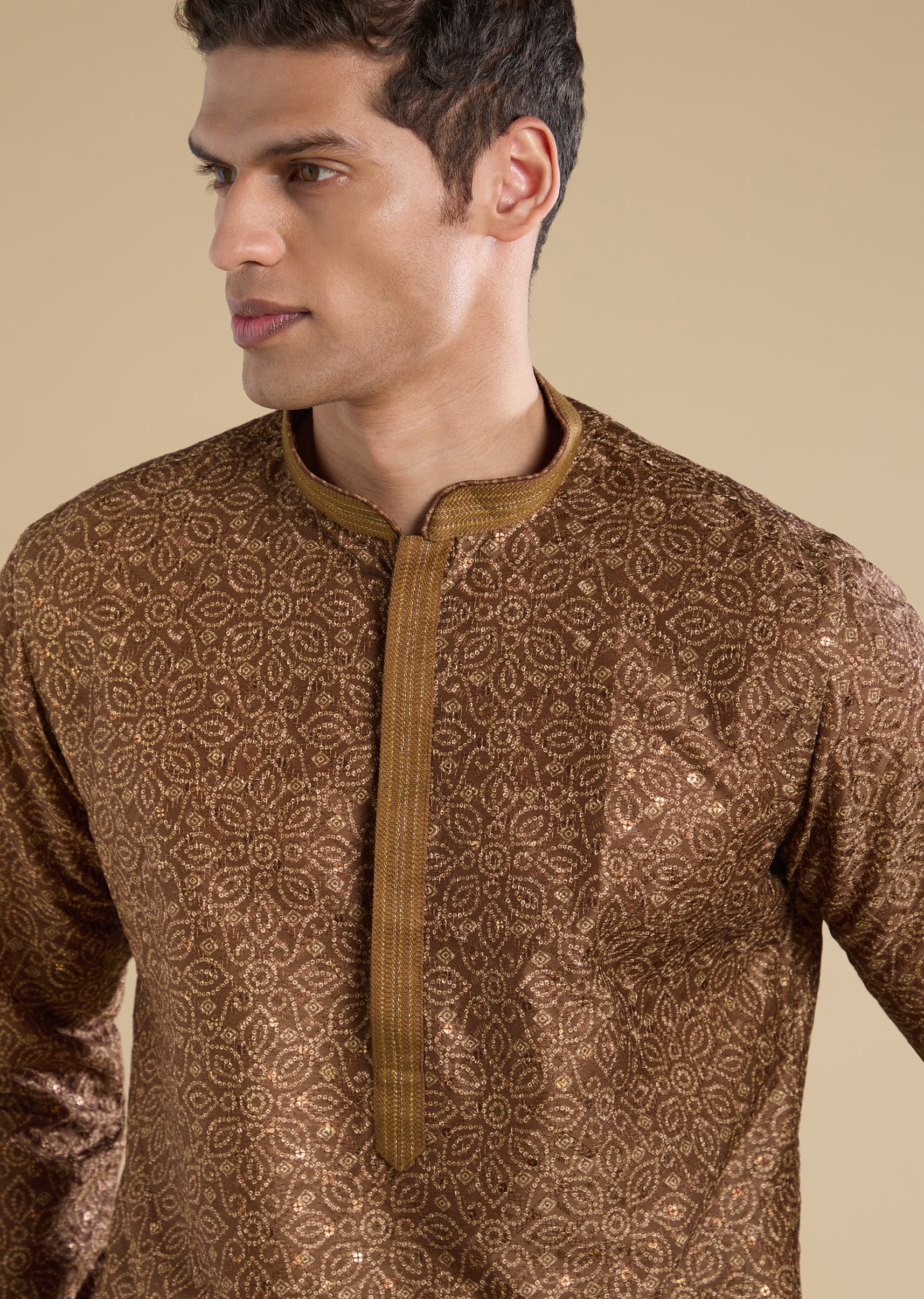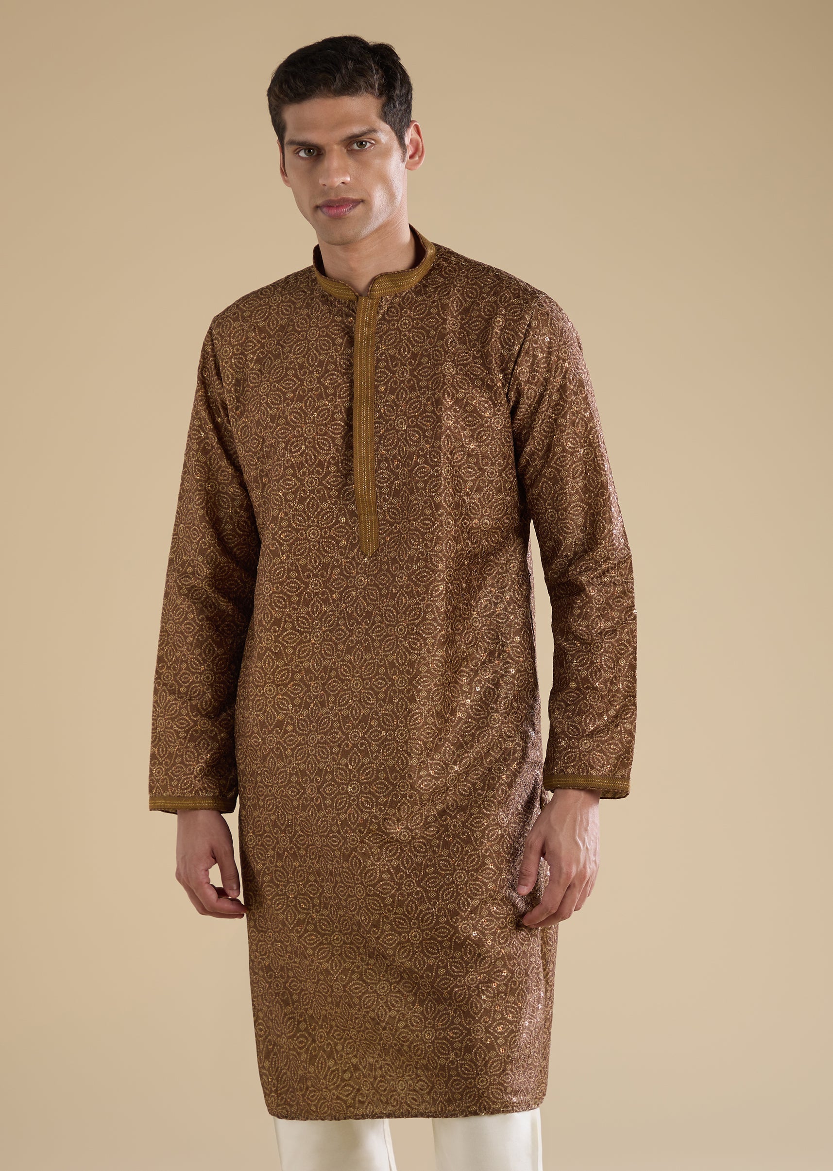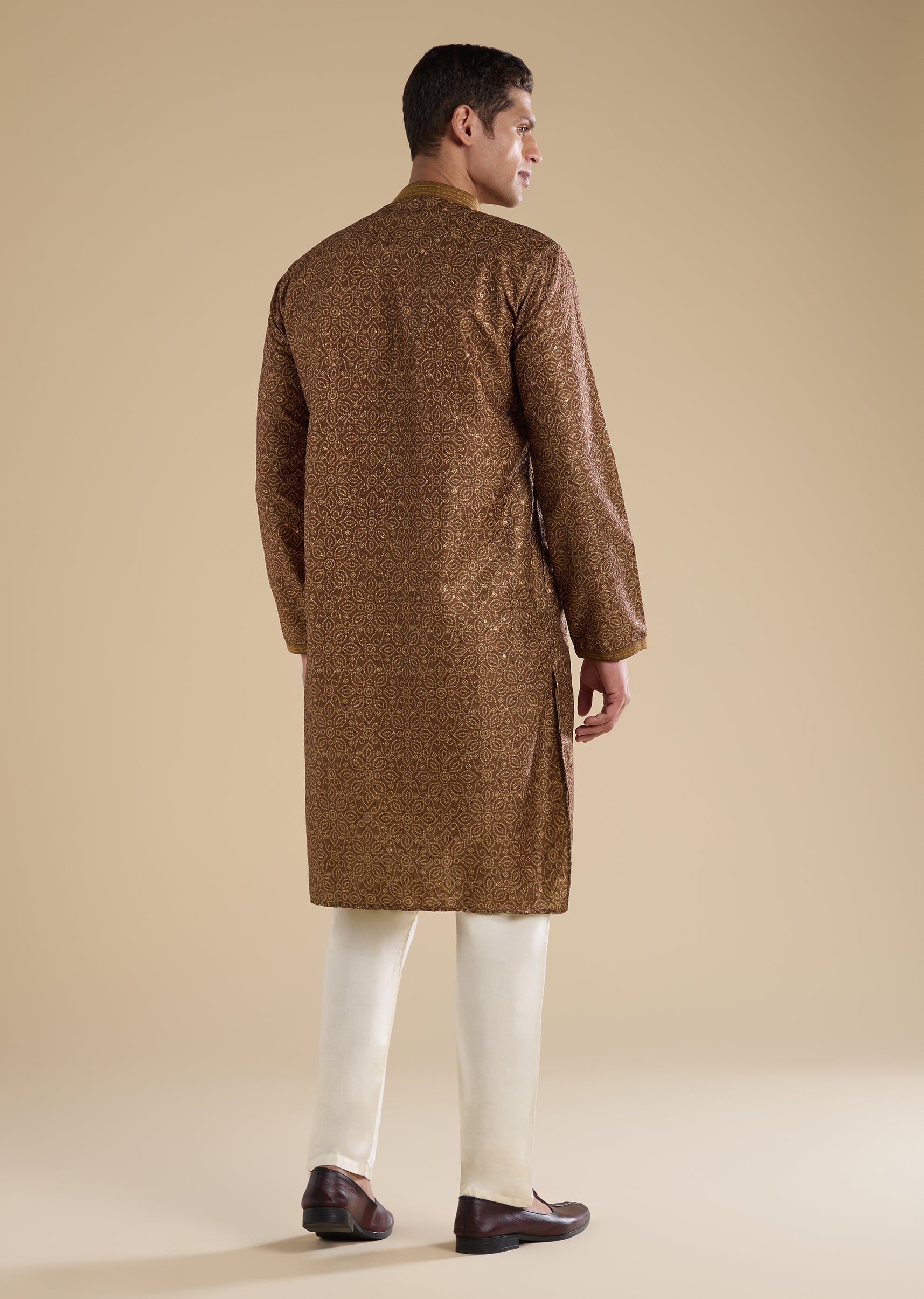 The brown casual kurta set offers relaxed tailoring suited for intimate gatherings.