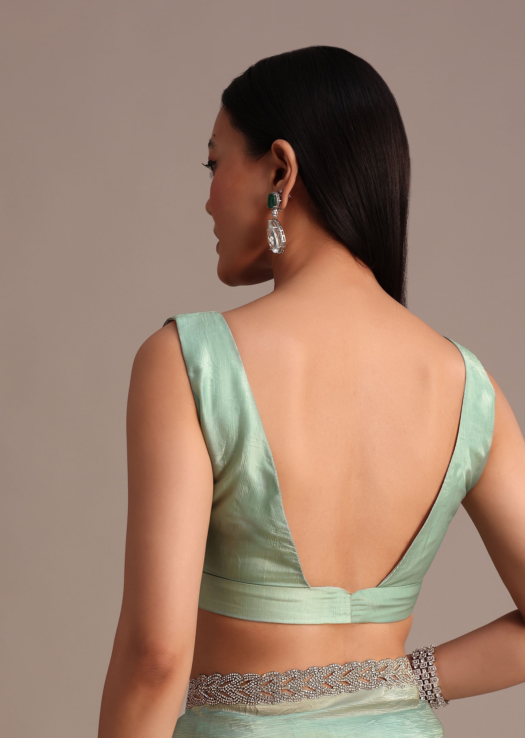 Sea Green Crushed Tissue Saree With Stone Embellished Border
