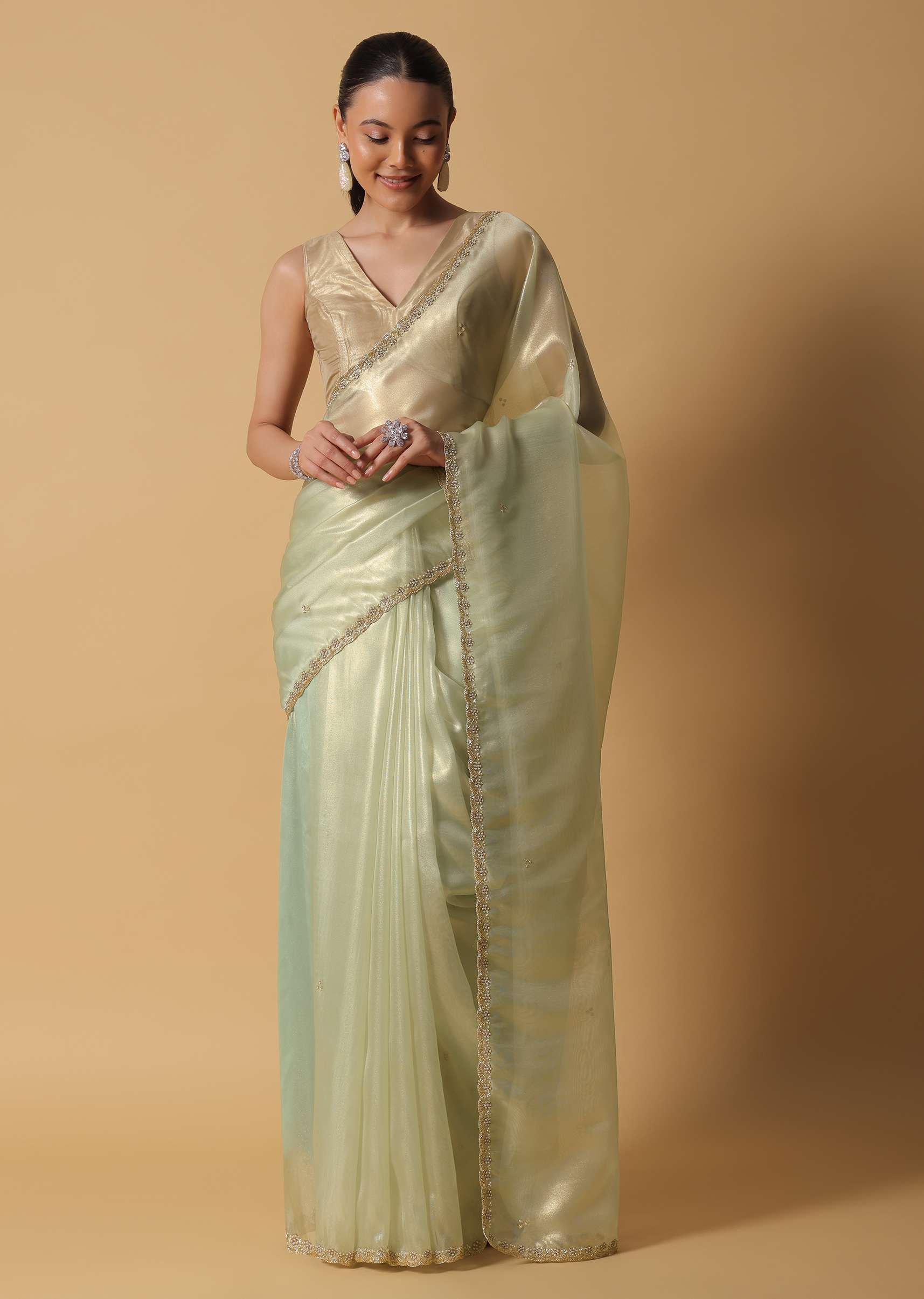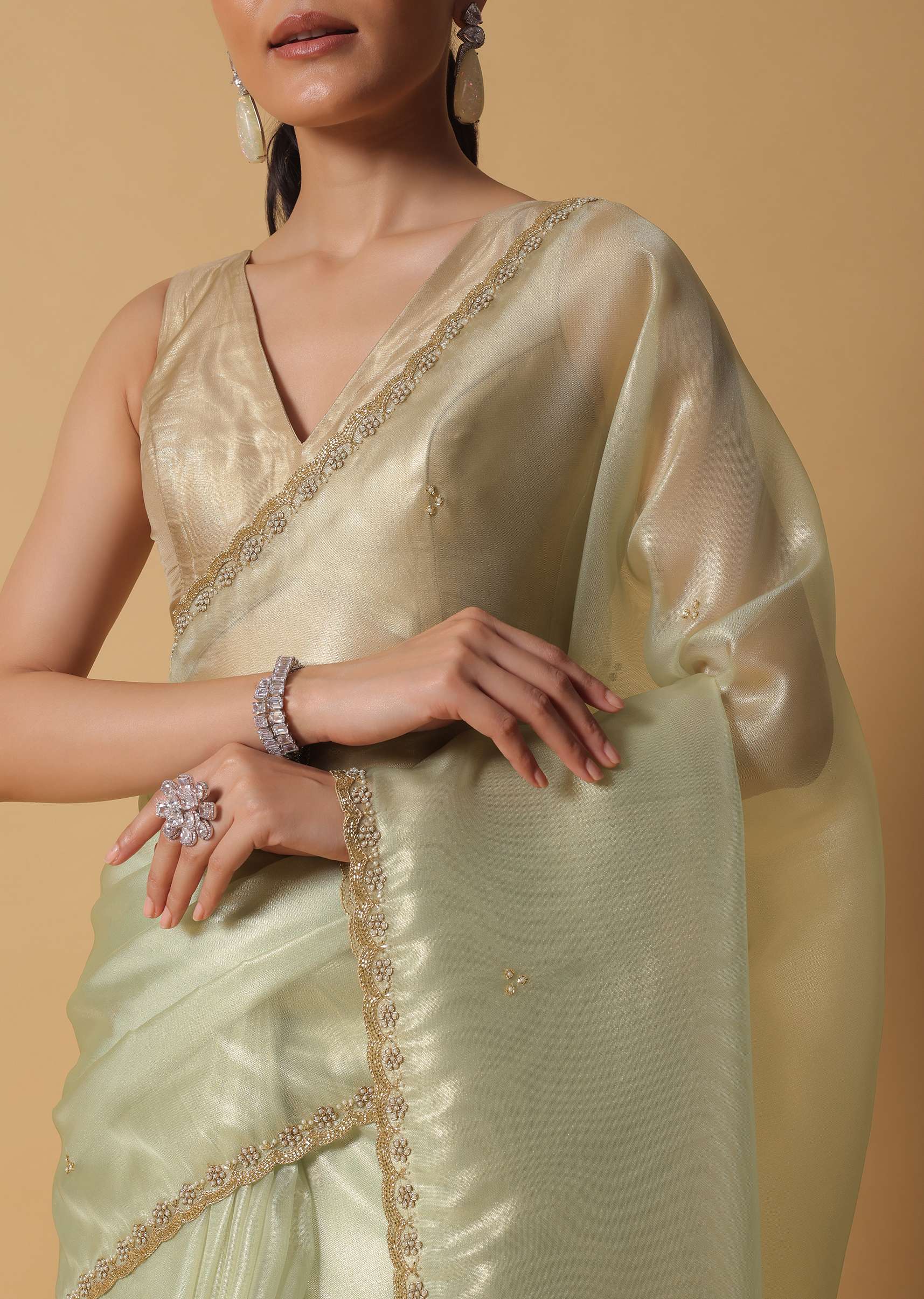 Sea Green Foil Saree In Tissue With Cut Dana Embroidered Borders