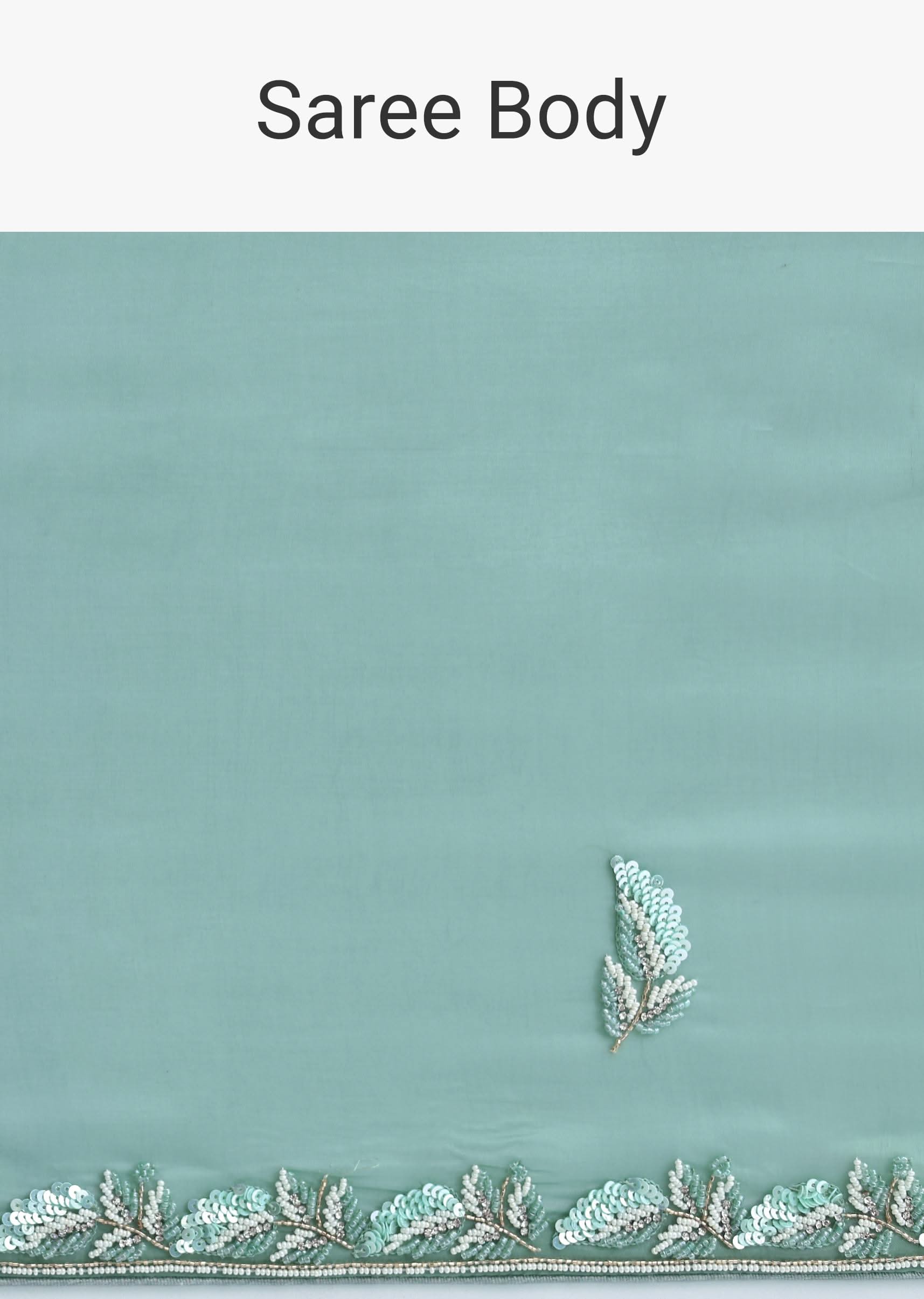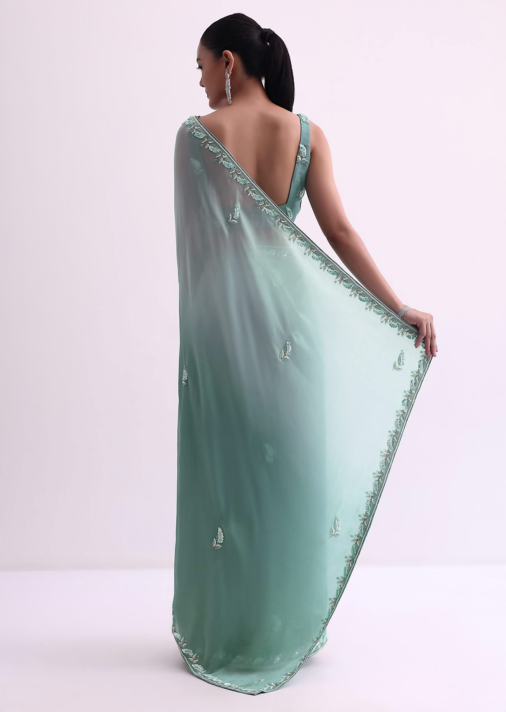 Sea Green Ombre Shaded Satin Saree With Sequin Border And Unstitched Blouse Fabric