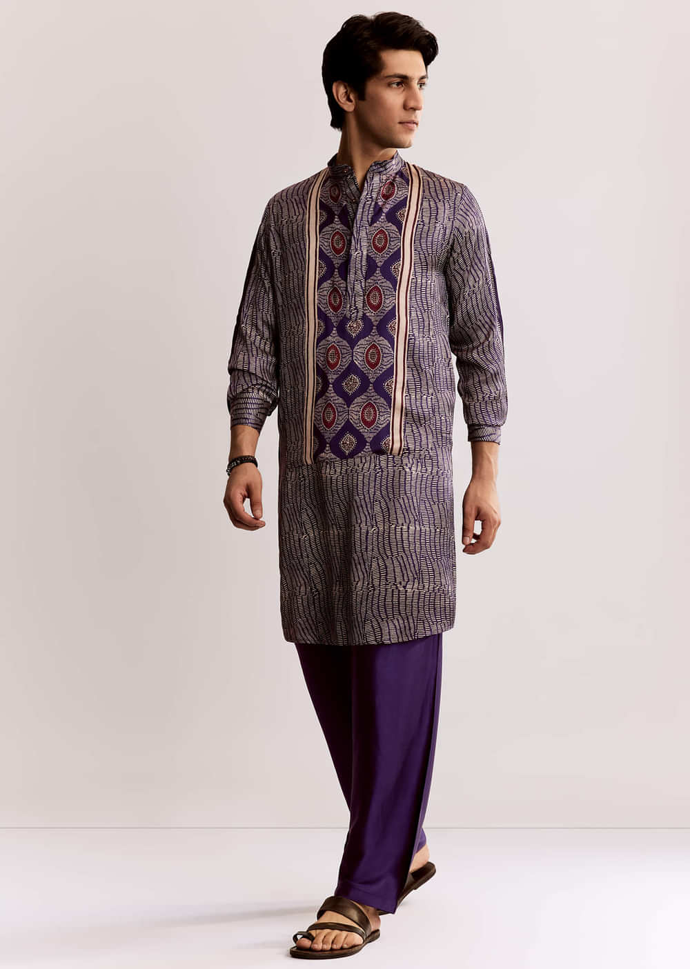 A Deep Dive Into Artisanal Heritage This Purple Silk Kurta Glows With Intricate Ajrakh Patterns Built For Grandeur And Storytelling.Awarded As The Most Trusted Brand We'Re Delivering Styles You Love Just As Promised.