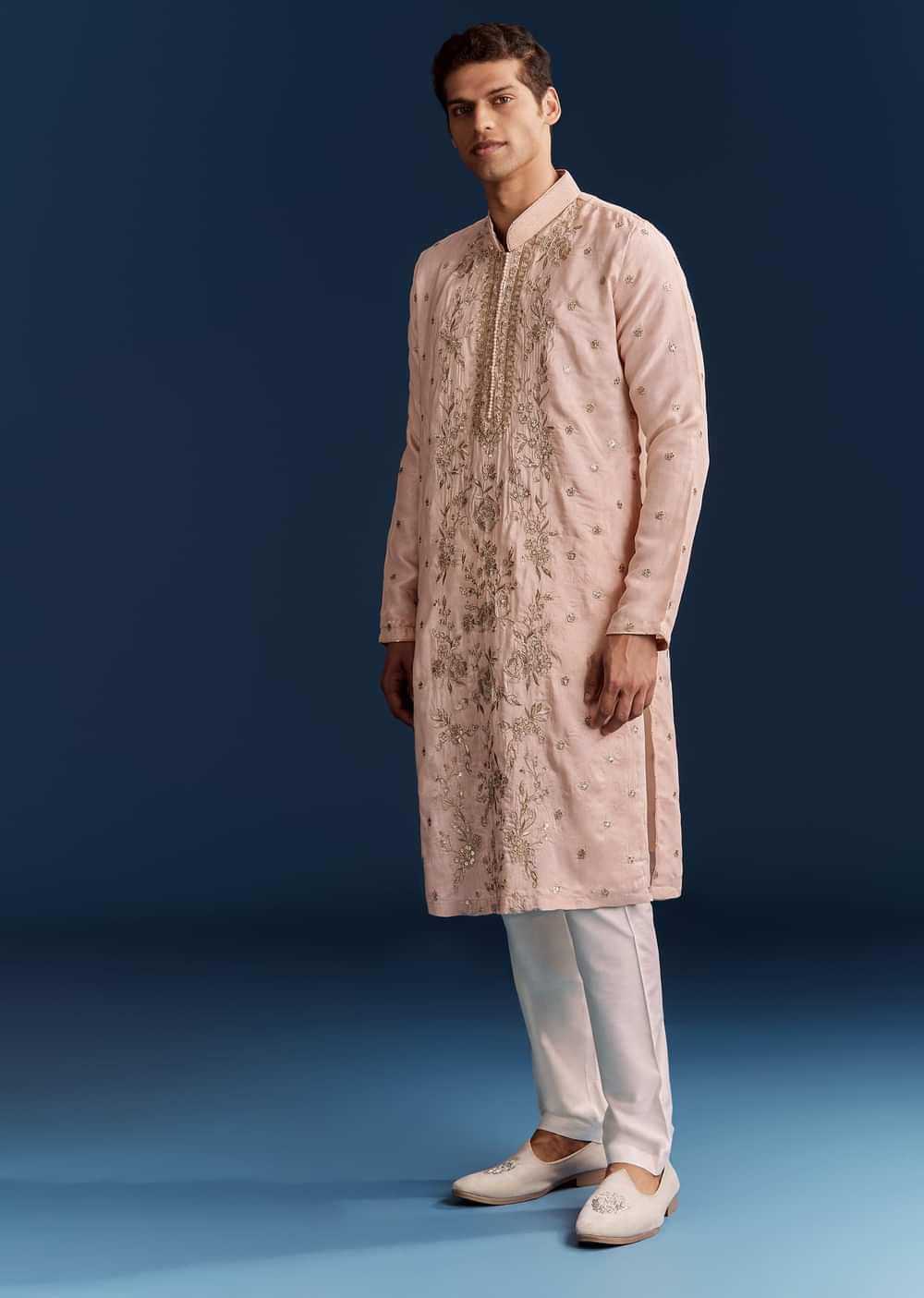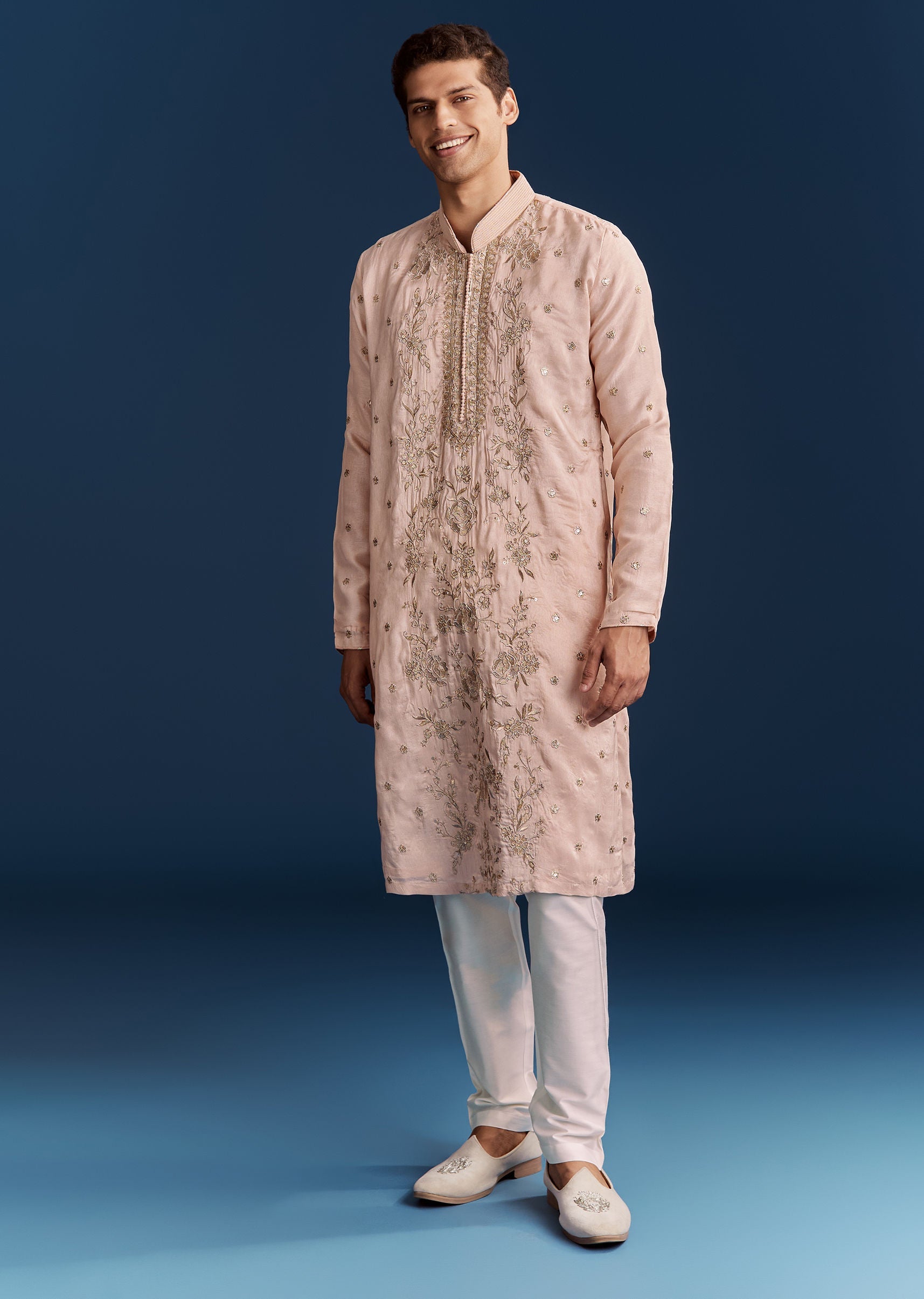 Elevate your festive wardrobe with this silk kurta set, finely adorned with resham threadwork and subtle sequins sparkle. Awarded as the Most Trusted Brand, we're delivering styles you love, just as promised.