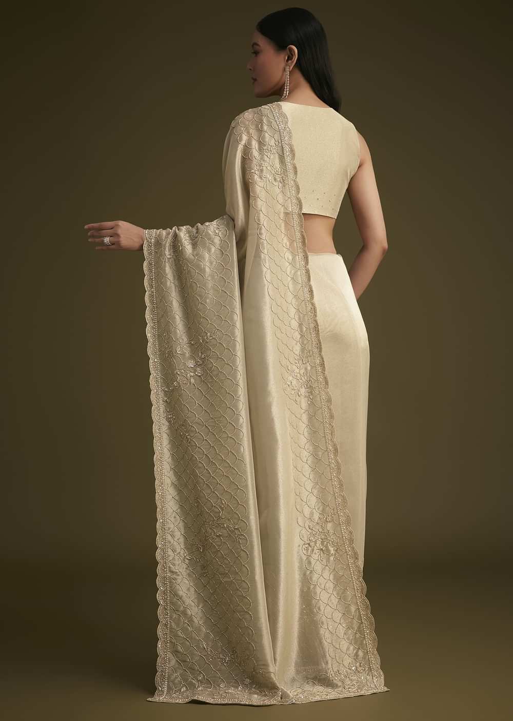 Silver Beige Tissue Sequins Saree With Cutdana Detailing