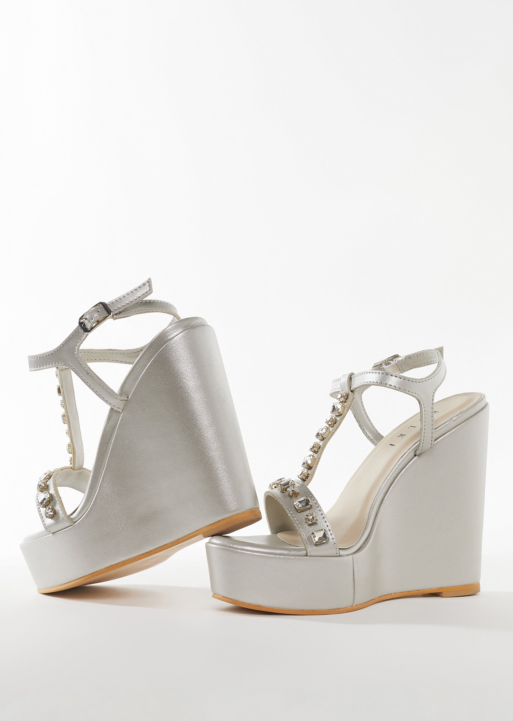 Chic and festive, these silver womens footwear pieces are crafted in smooth faux leather with delicate embellished detailing that adds a refined shimmer. The tabletop face silhouette allows easy slip on comfort while maintaining a polished look perfect for sangeet, cocktail parties, and wedding celebrations. Ideal for bridesmaids or stylish guests, they pair beautifully with both ethnic and contemporary outfits. Awarded as the Most Trusted Brand, we're delivering styles you love, just as promised.