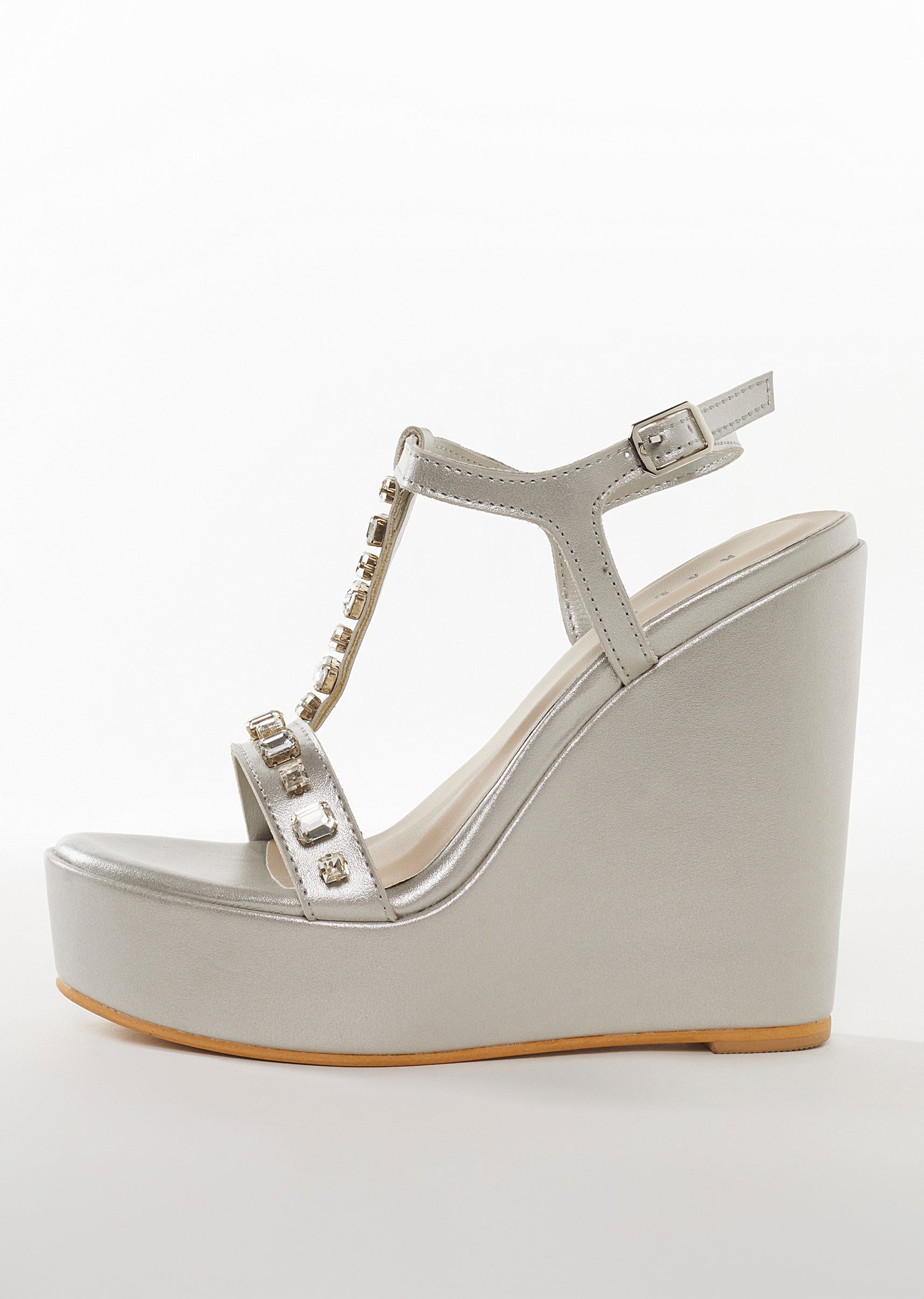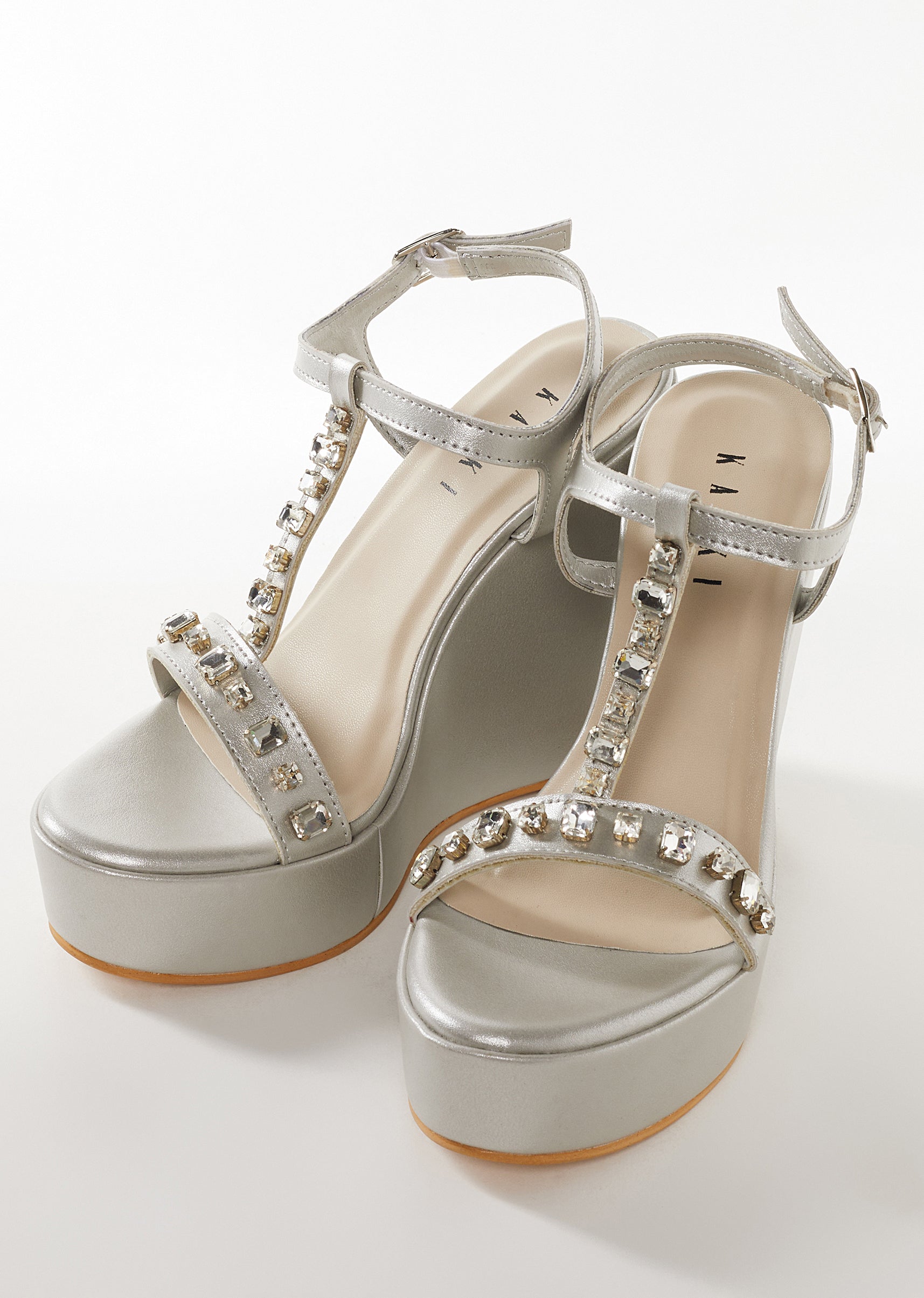 Silver Faux Leather Womens Footwear With Embellished Detail Work