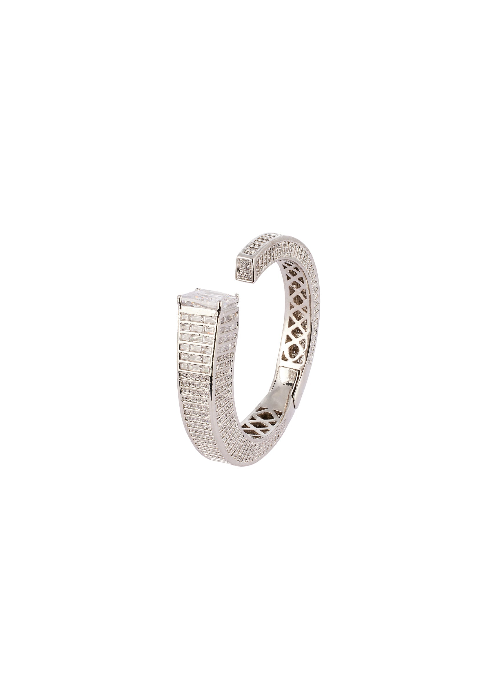 Pair this bracelet with a minimalist saree, modern lehenga, or structured gown to highlight the architectural design and white cubic zirconia accents.