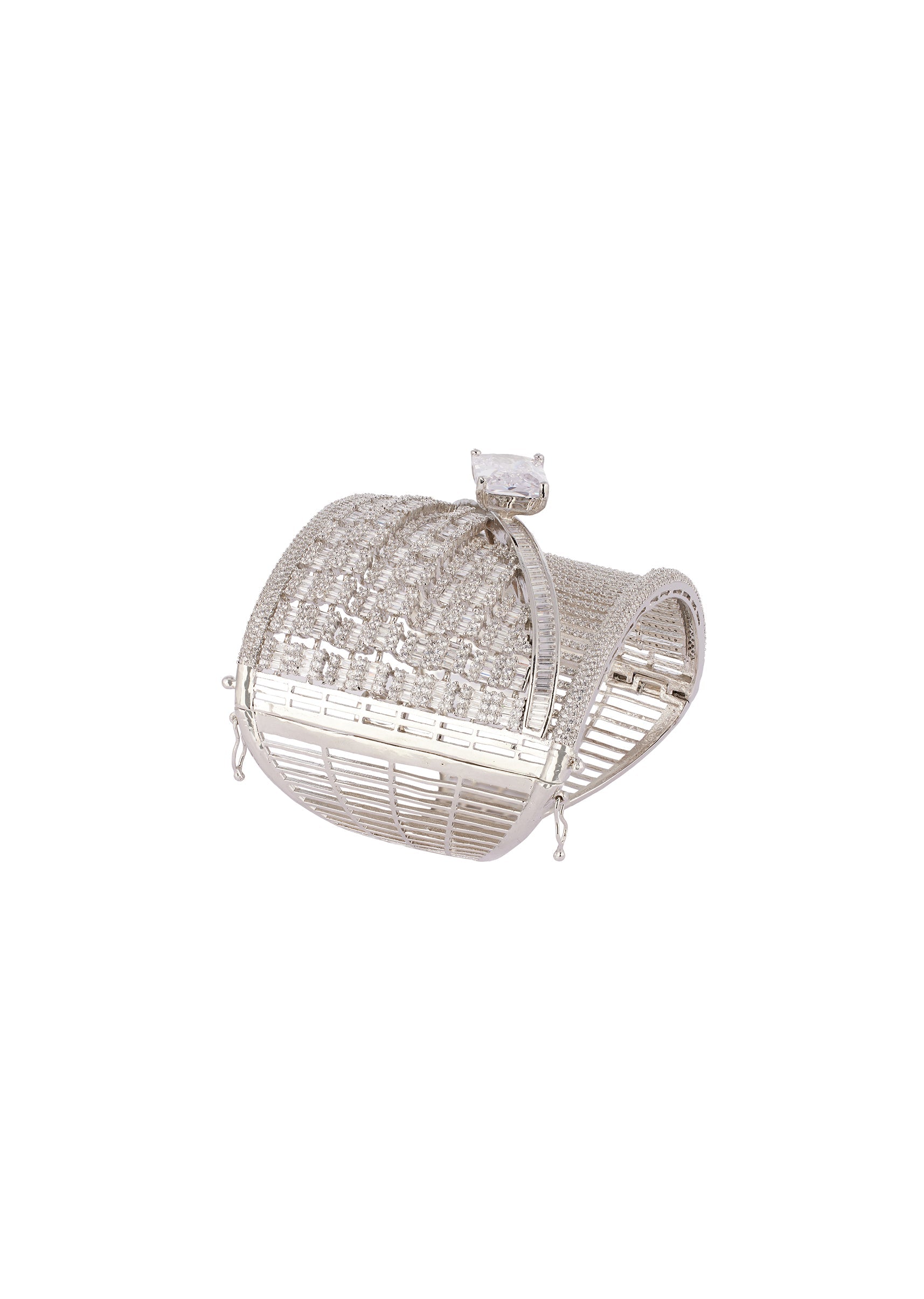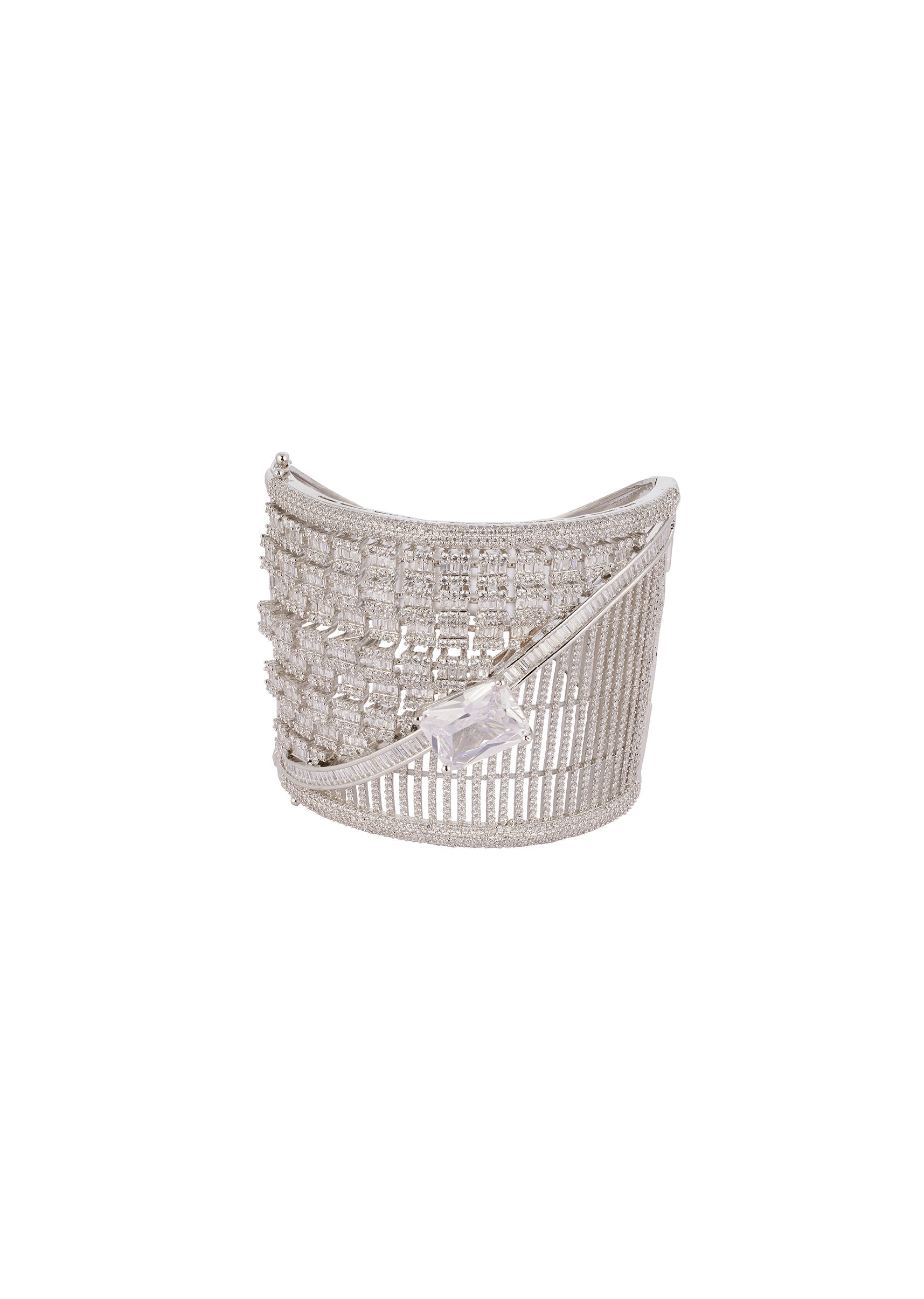 Silver Finish Bracelet In Mix Metal With Modern Grand Statement Style And White Cubic Zirconia Accents