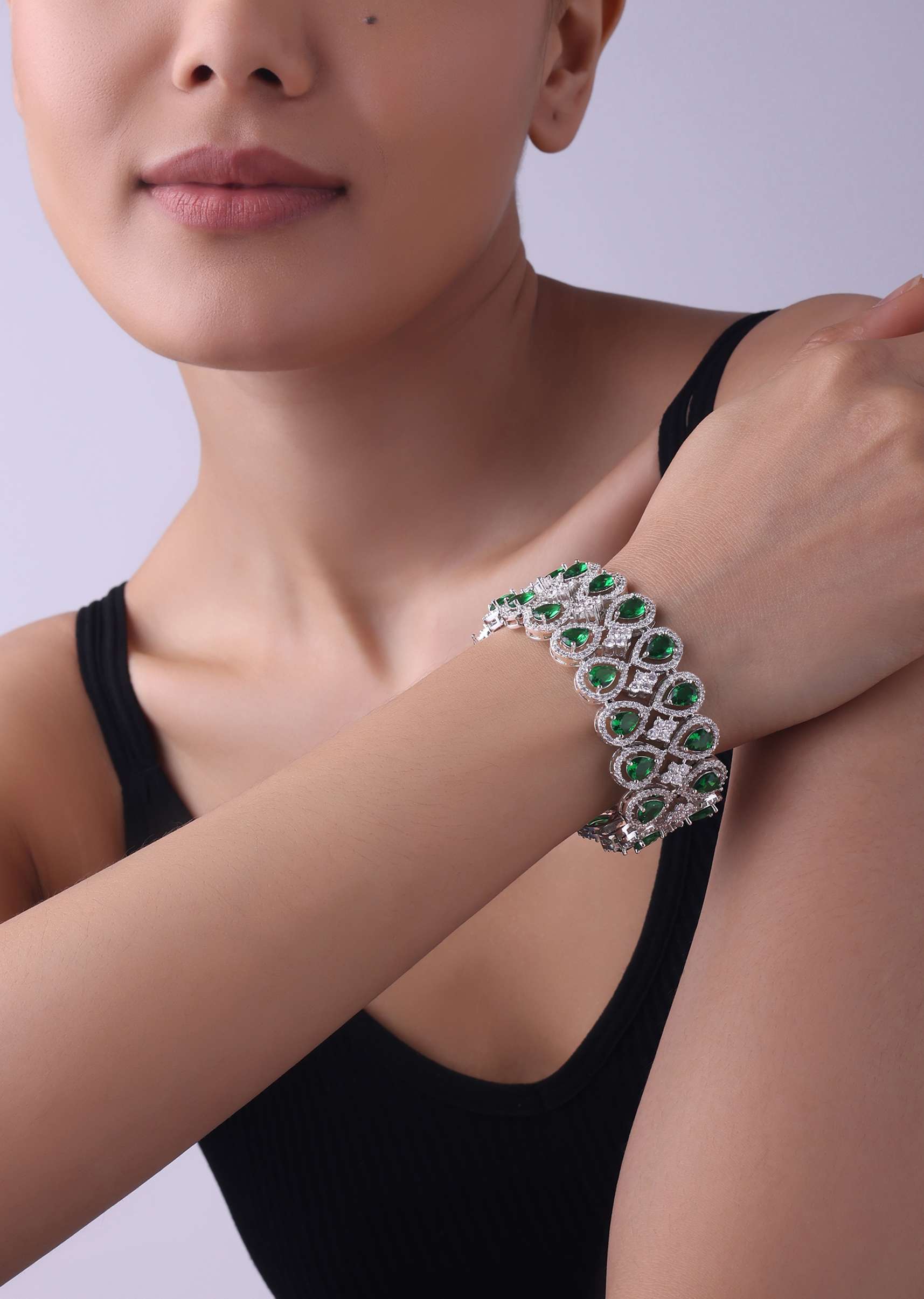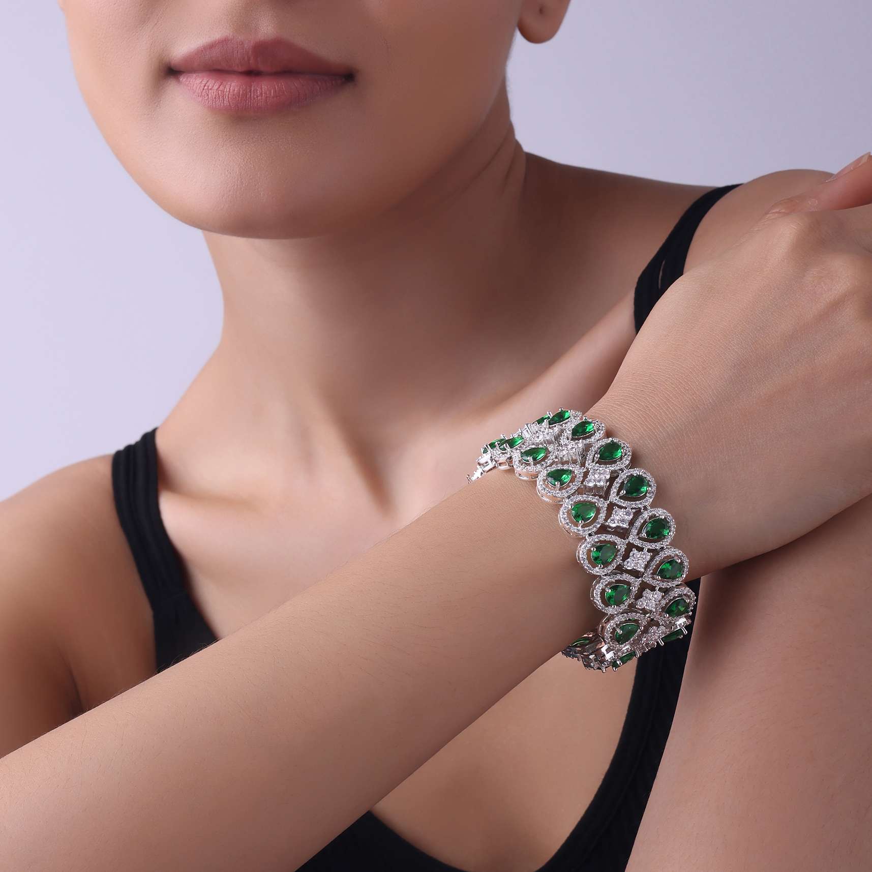 The silver finish bracelet in mix metal is a captivating piece that complements various styles and occasions. The bracelet is studded with synthetic emerald stones and faux diamonds, making it a perfect addition to your jewelry collection. EVENT - Ideal for weddings and festive occasions.Avoid contact with water, chemicals, harsh liquids, perfumes, etc. Do not wear this piece of jewelry while showering, gym, swimming, etc. Please keep the product away from moisture and humidity when not in use. Slight variations in design may vary. Being rewarded as the most trusted brand, our customers believe we deliver the same styles as promised on the website. Awarded as the Most Trusted Brand, we're delivering styles you love, just as promised.