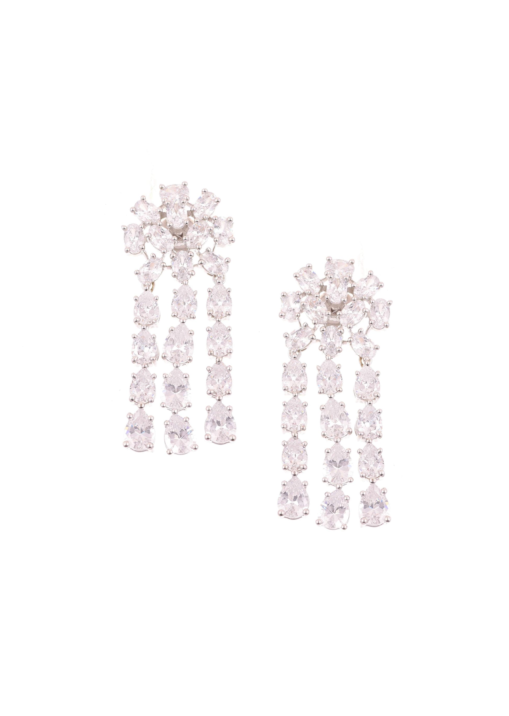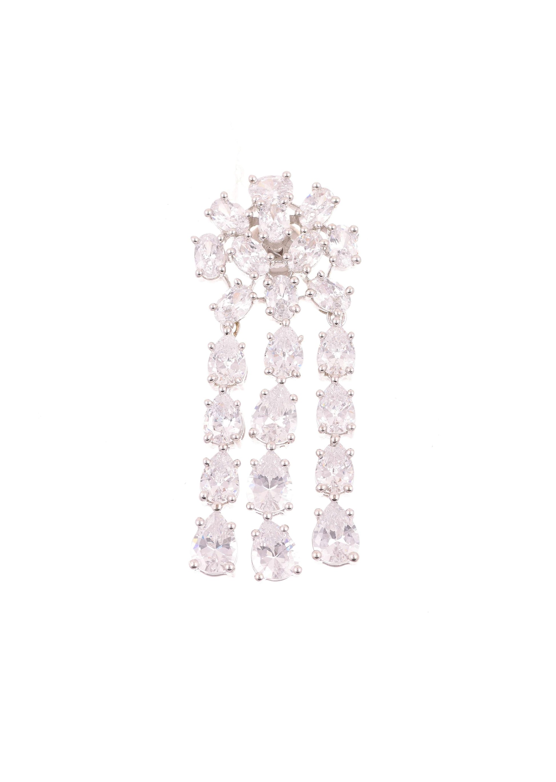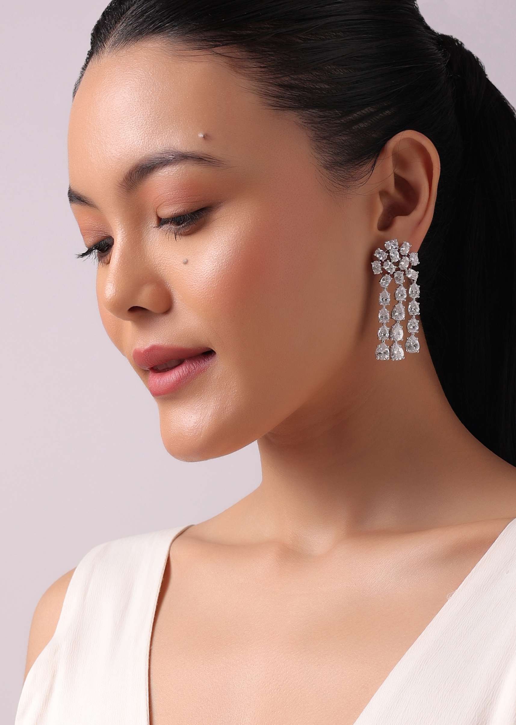 Create a long-lasting impression by stepping out in this glamorous and luxurious addition. Indulged in refined elegance and adorned with dangling faux diamonds it comes with coordinating floral top danglers. The set comes crafted in a luxurious silver finish mixed metal setting. Perfect for celebrations and weddings this stunner is a must-have.Keep away from moisture perfume alcohol and harsh chemicals.Spot clean only.Keep away from sharp objects. Awarded as the Most Trusted Brand, we're delivering styles you love, just as promised.