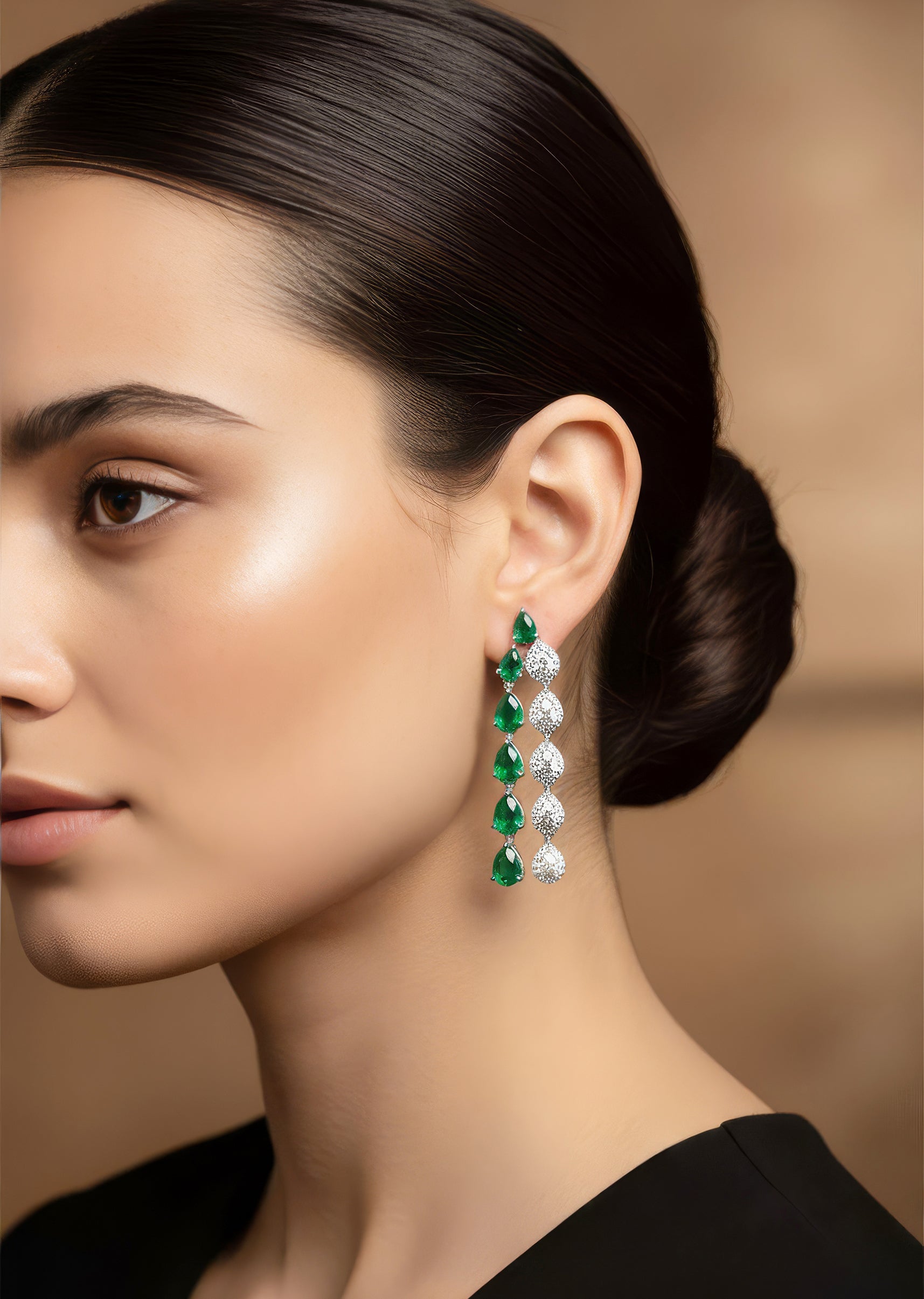 Style them with a contemporary saree, sharara, or modern lehenga in solid or jewel tones to highlight the green stone detailing.