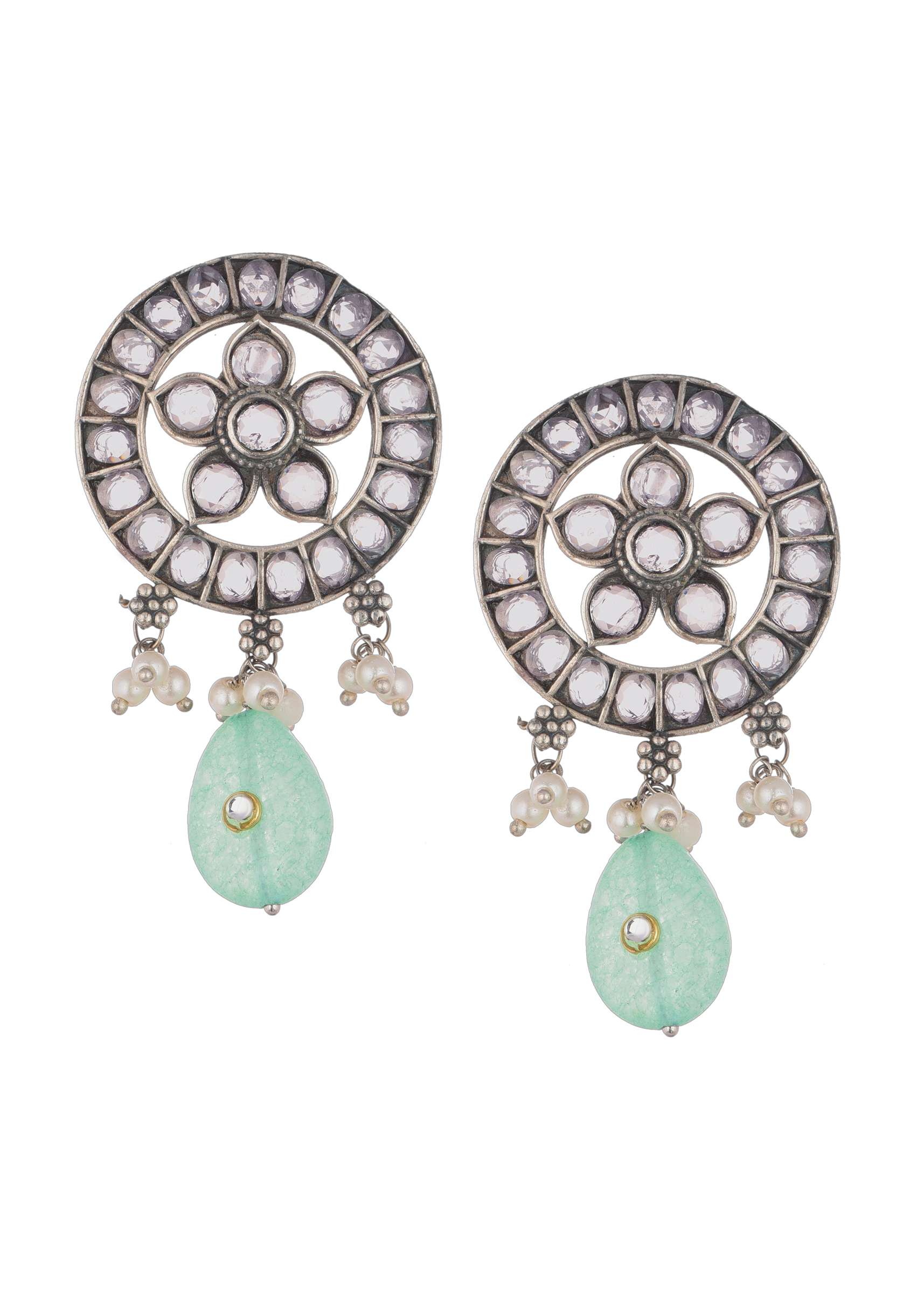 Elevate your style with our oxidised necklace set adorned with exquisite aqua blue engraved stones. Crafted with attention to detail the choker and earrings exude elegance and sophistication.EVENT - Perfect for wedding and engagement celebrations.Store in a dust bag. Keep away from moisture perfume alcohol and harsh chemicals. Spot clean only. Keep away from sharp objects. Actual color may slightly vary due to photographic lighting sources and device screen settings. Awarded as the Most Trusted Brand, we're delivering styles you love, just as promised.
