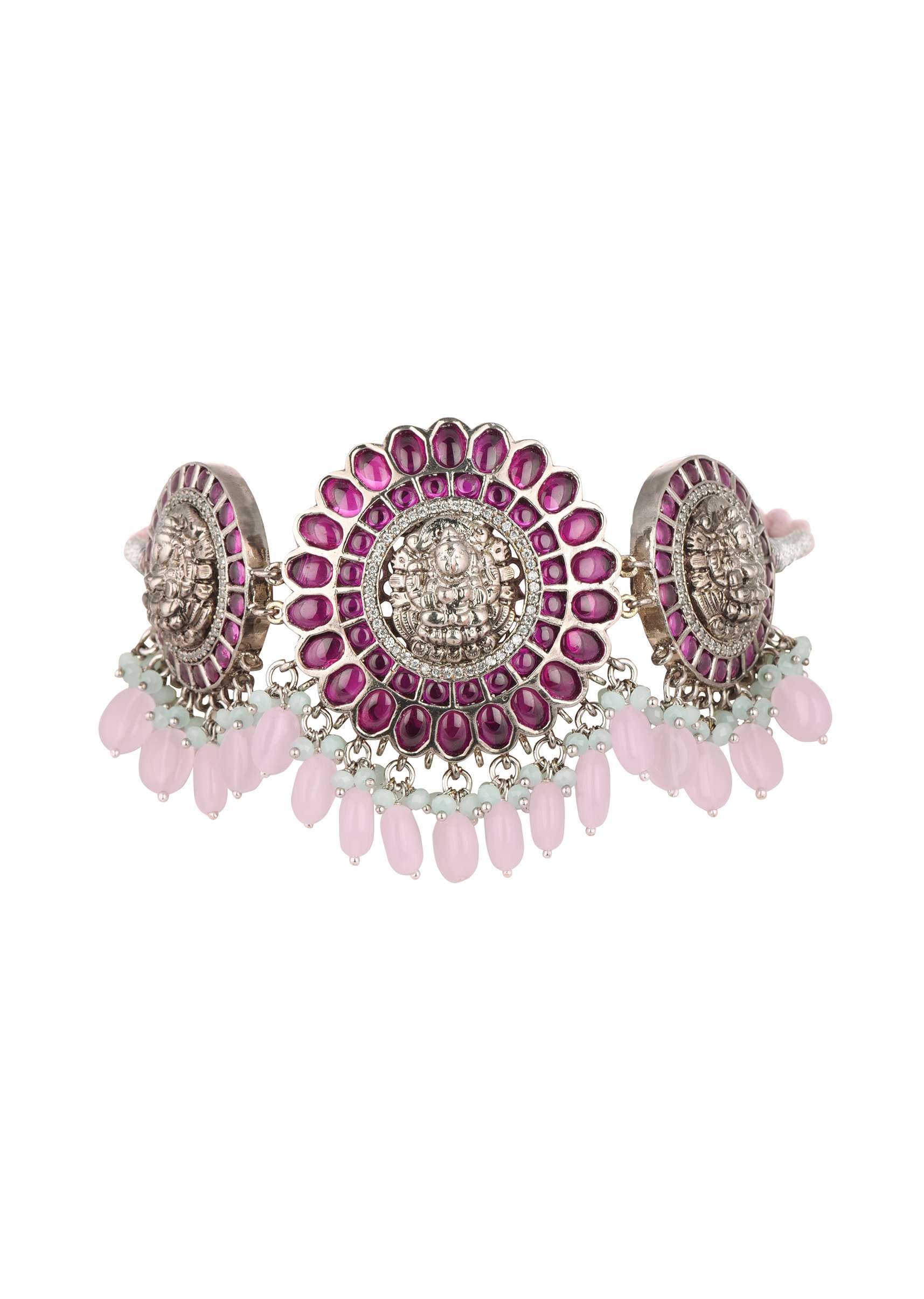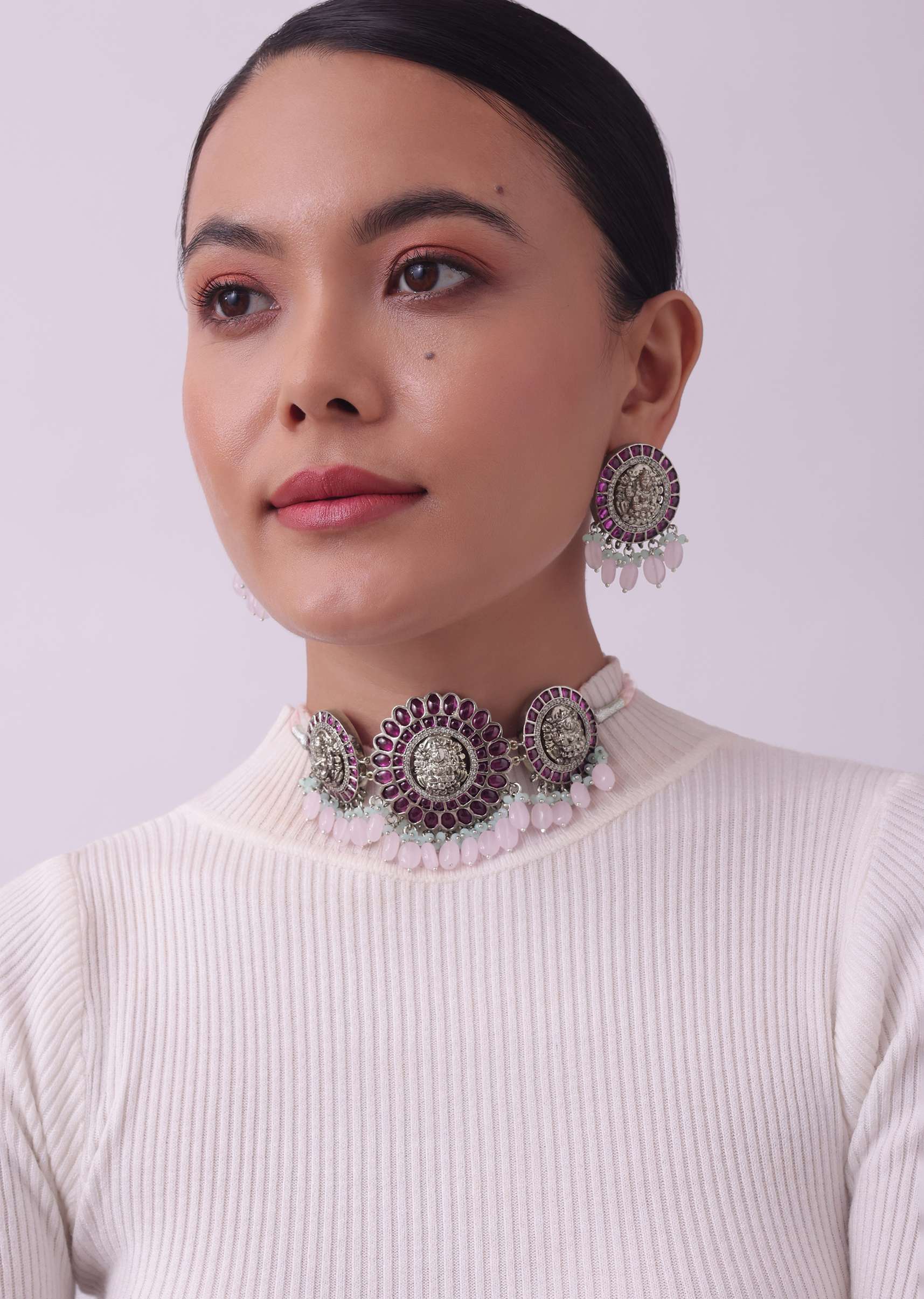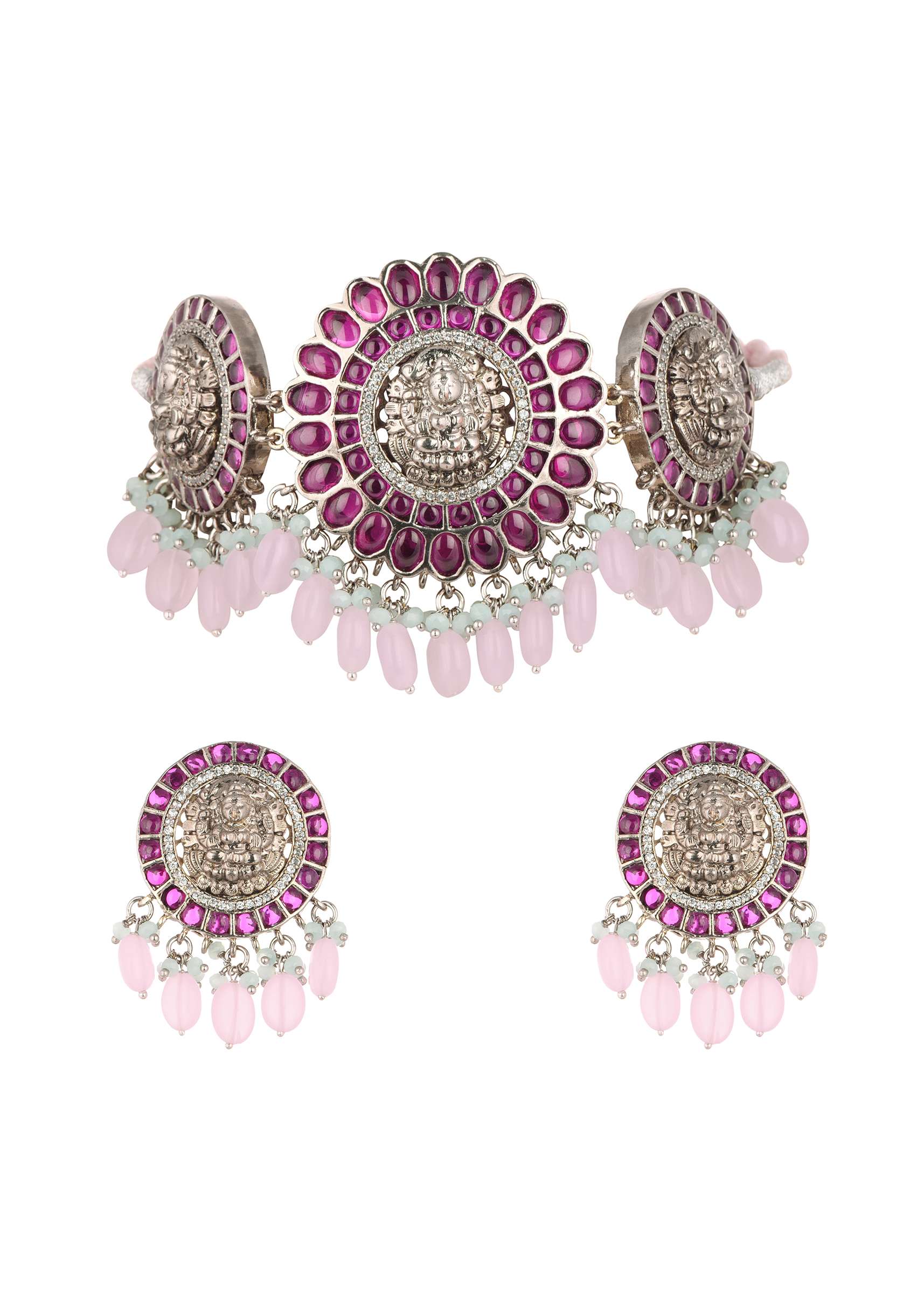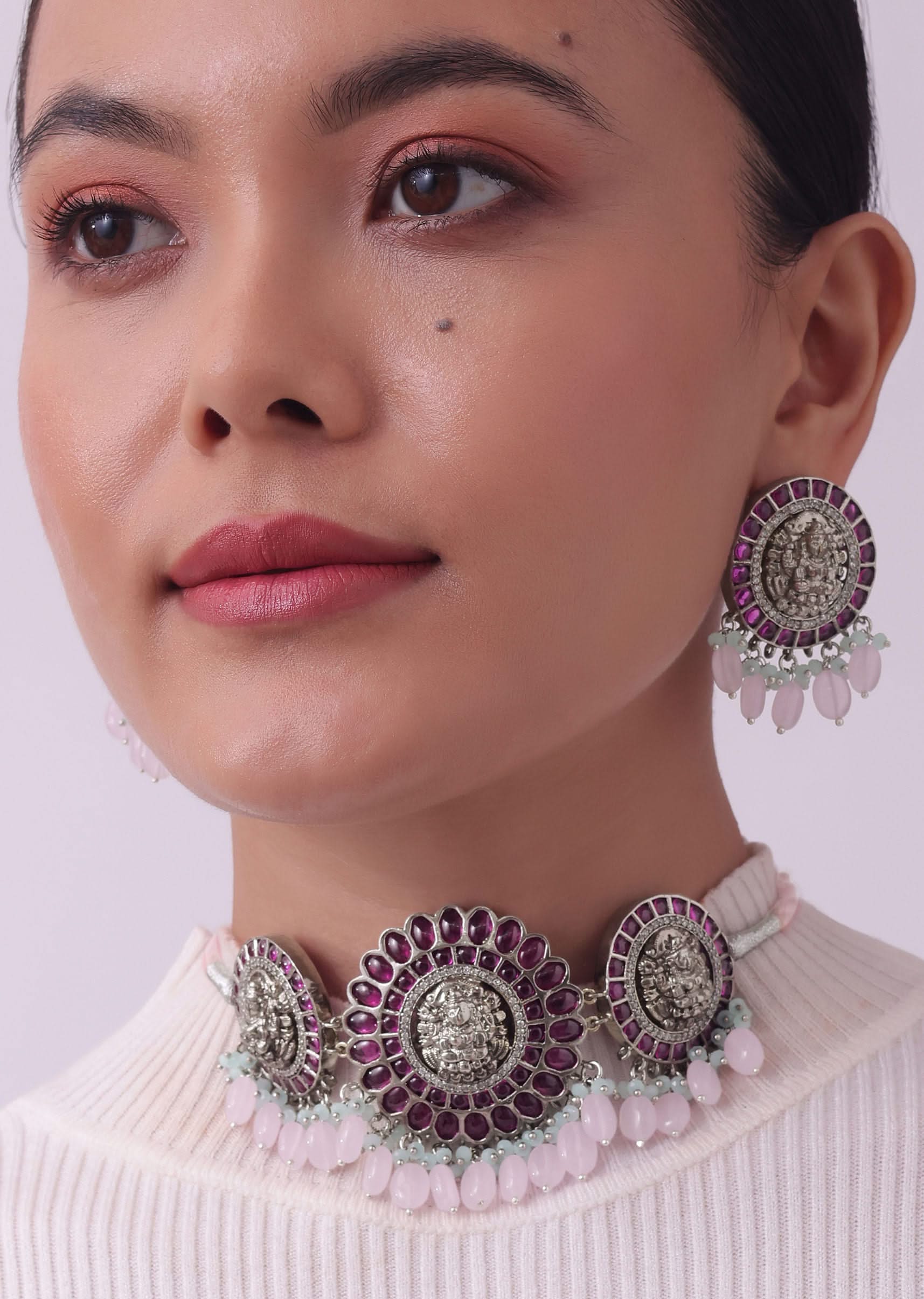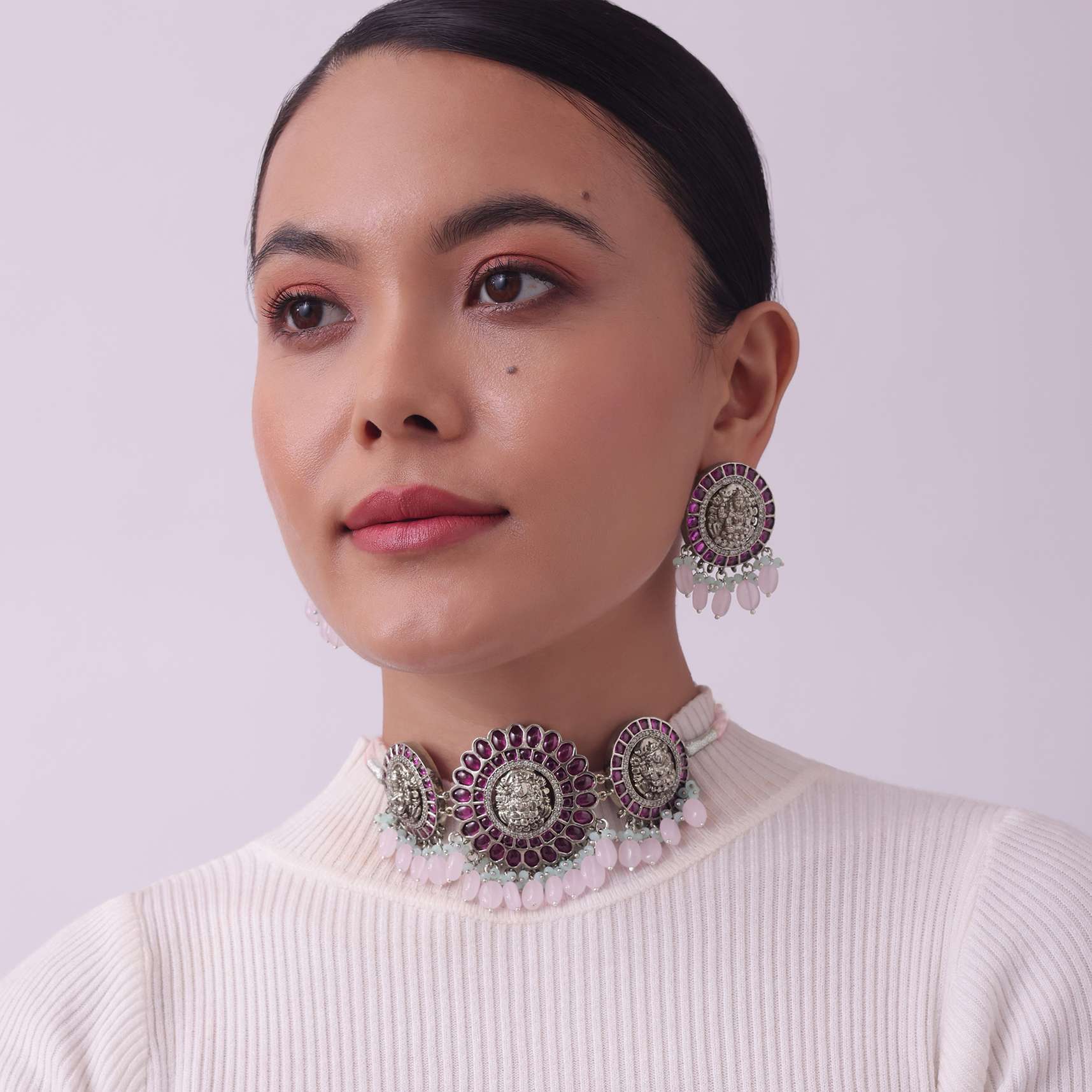 Silver Finish Oxidised Choker Set With Meenakari Work