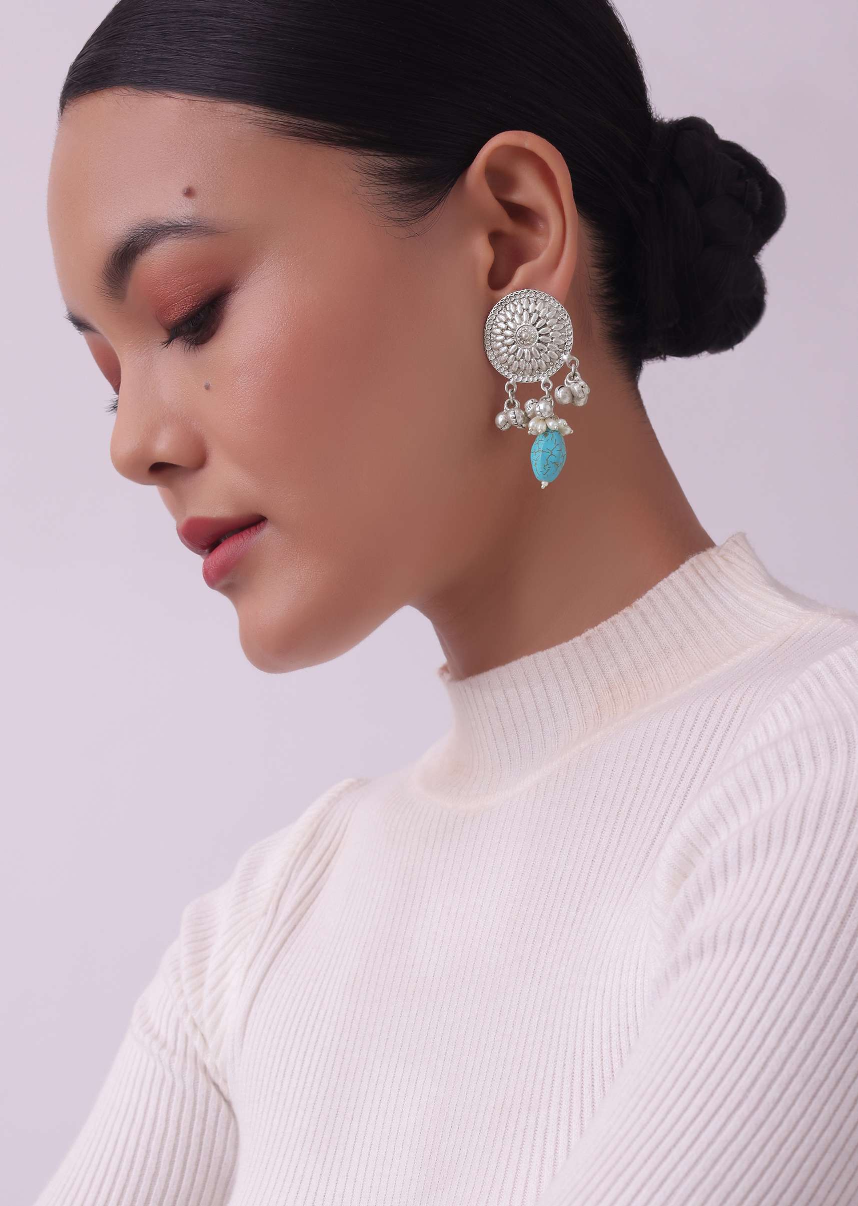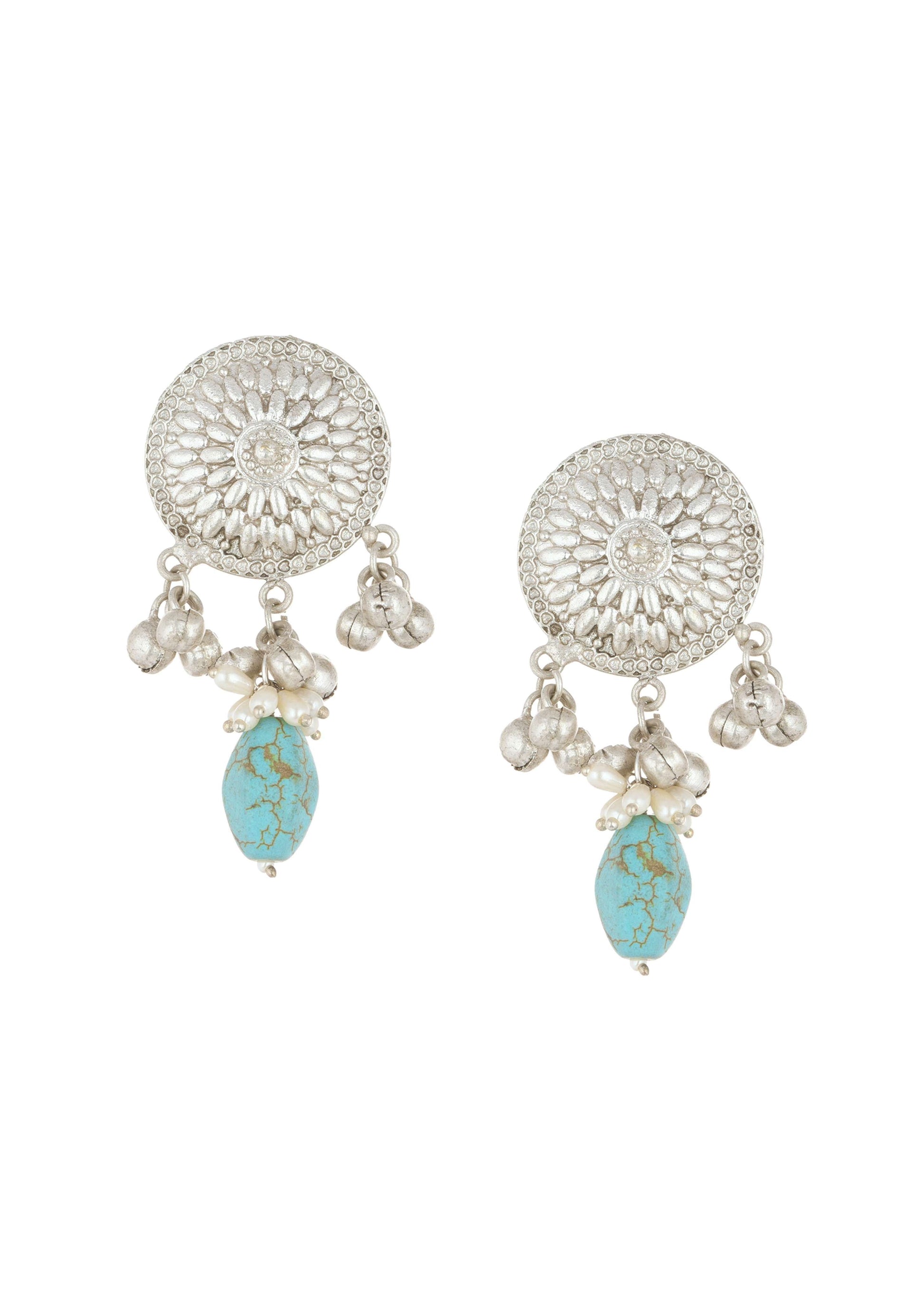 Experience the enchantment of our silver finish oxidised choker and earring set. Infused with mesmerizing blue toned kundan work and beads this versatile ensemble seamlessly blends traditional and contemporary styles. EVENT - Perfect for festive occasions fusion fashion or special events.Store in a dust bag. Keep away from moisture perfume alcohol and harsh chemicals. Spot clean only. Keep away from sharp objects. Actual color may slightly vary due to photographic lighting sources and device screen settings. Awarded as the Most Trusted Brand, we're delivering styles you love, just as promised.