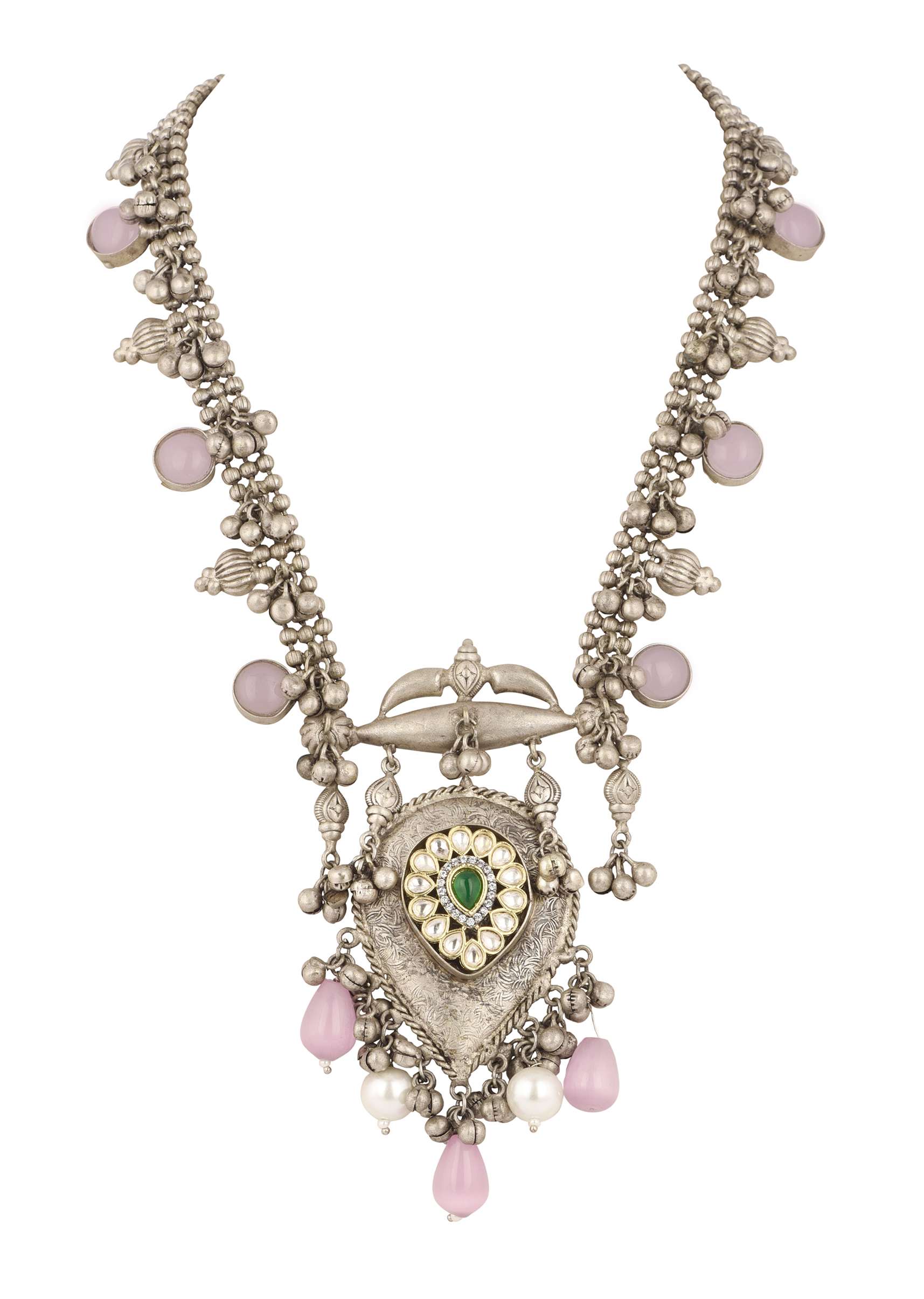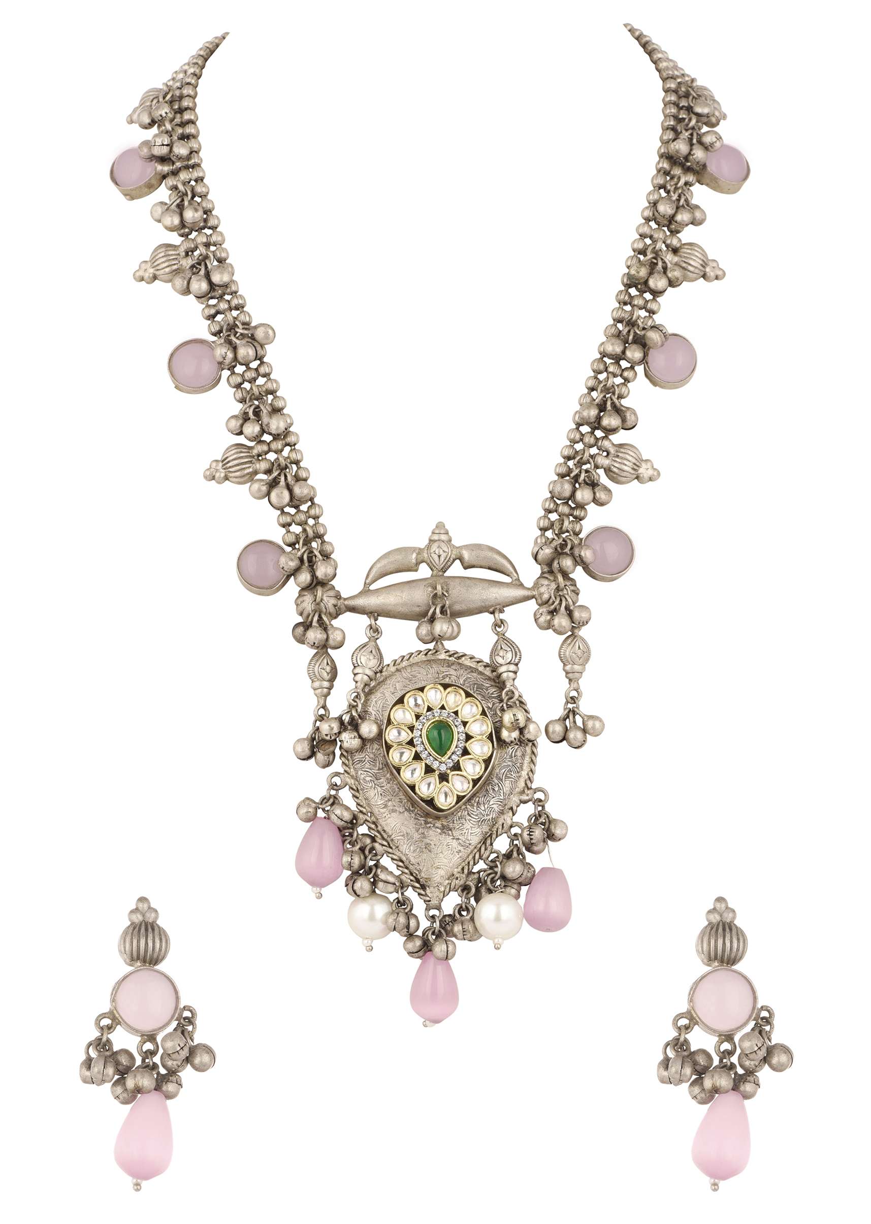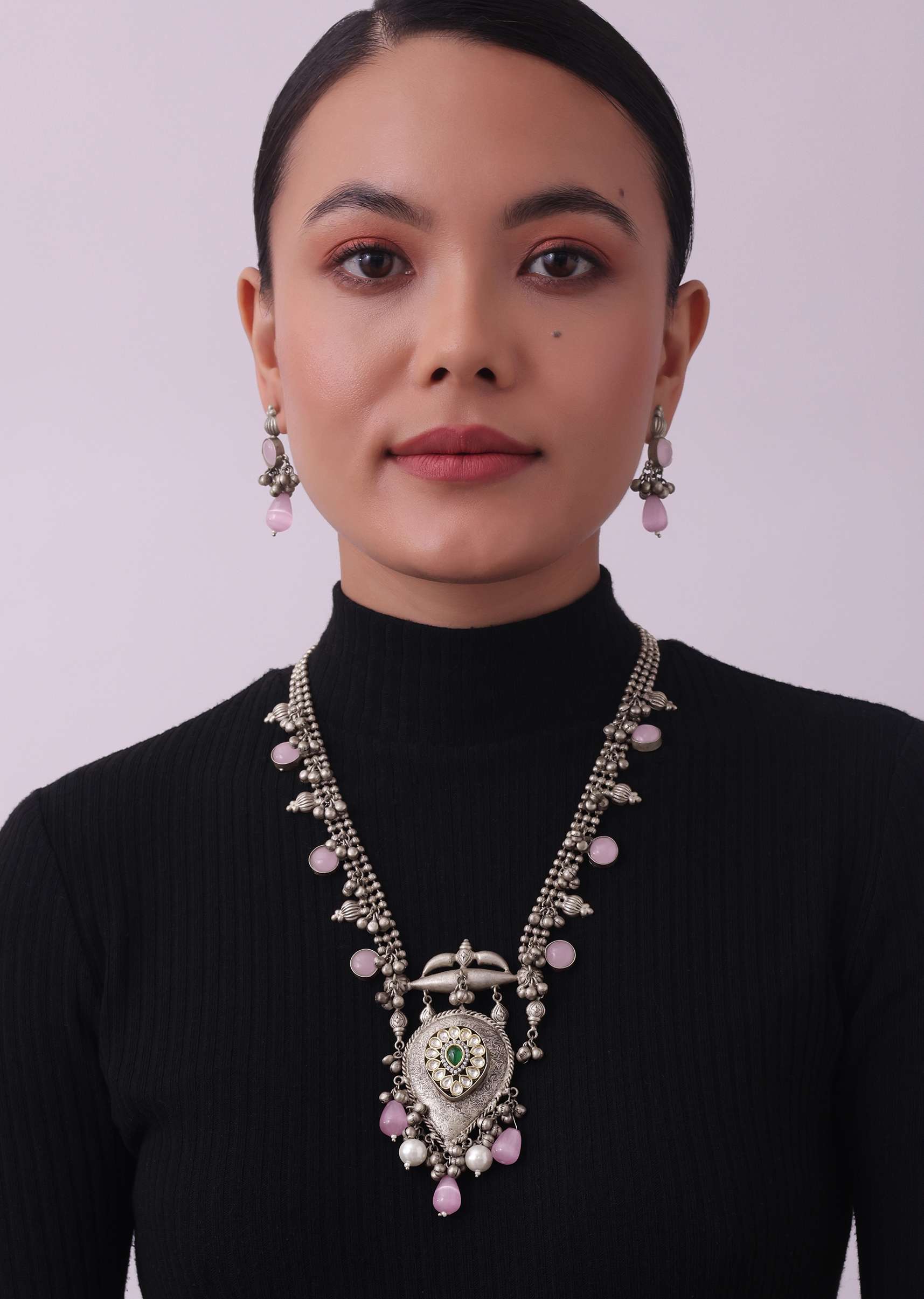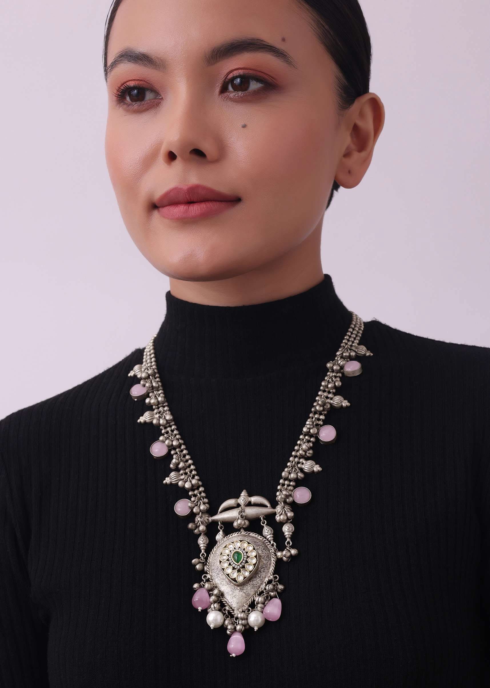 Unleash your inner fashionista with our stunning silver finish oxidised long necklace set in a captivating fusion style. This exquisite set is adorned with beautiful pink and white beads adding a touch of charm to your ensemble.EVENT - Perfect for wedding and engagement celebrations.Store in a dust bag. Keep away from moisture perfume alcohol and harsh chemicals. Spot clean only. Keep away from sharp objects. Actual color may slightly vary due to photographic lighting sources and device screen settings. Awarded as the Most Trusted Brand, we're delivering styles you love, just as promised.