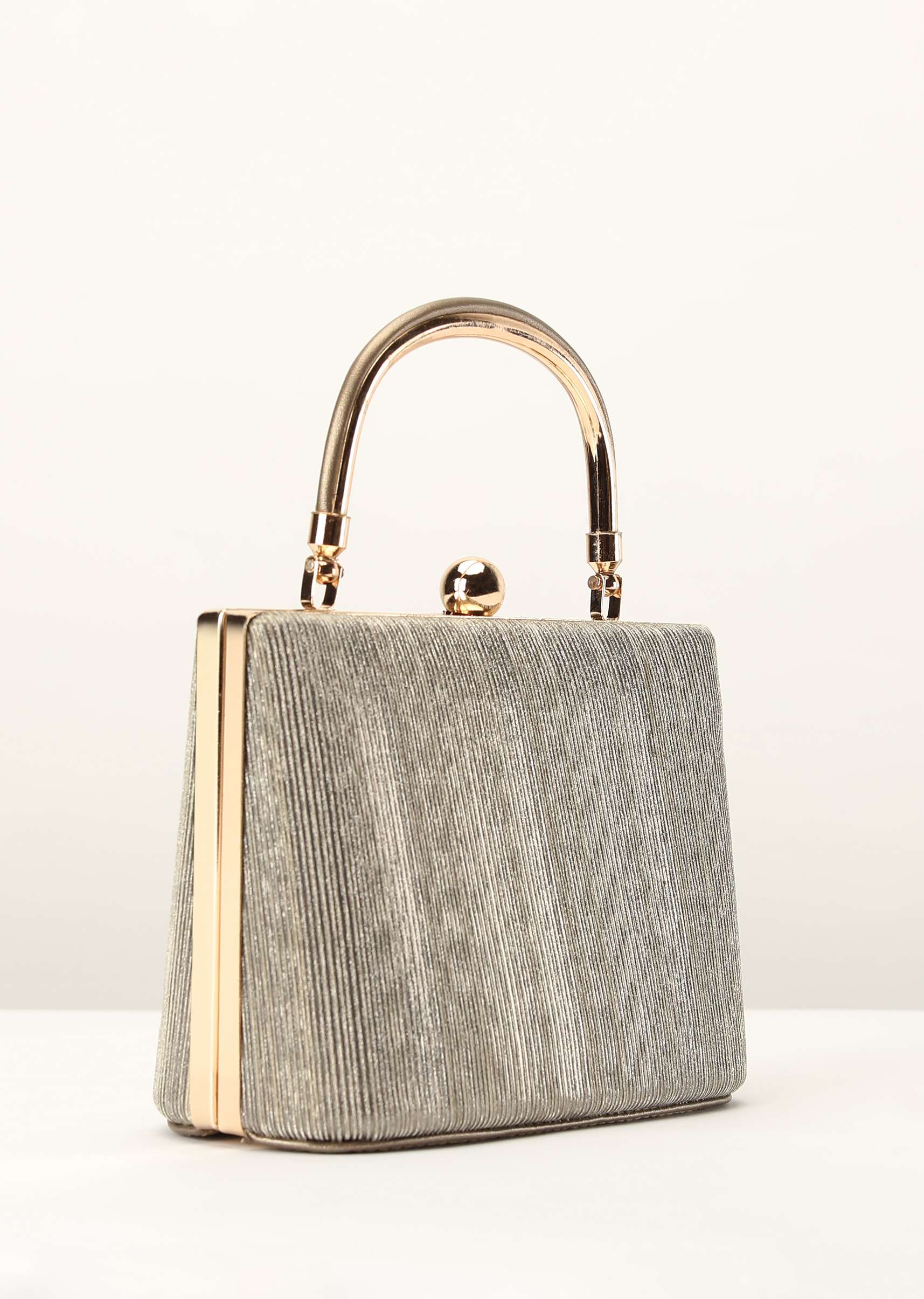 Silver gold clutch in crush fabric with metal frame and clasp closure. It comes with a metal handle and detachable chain sling. Awarded As The Most Trusted Brand We'Re Delivering Styles You Love Just As Promised.