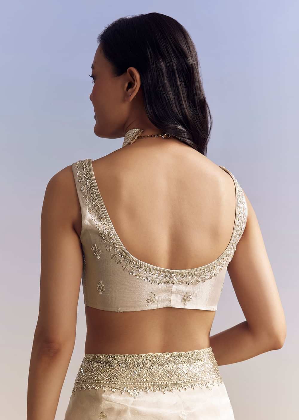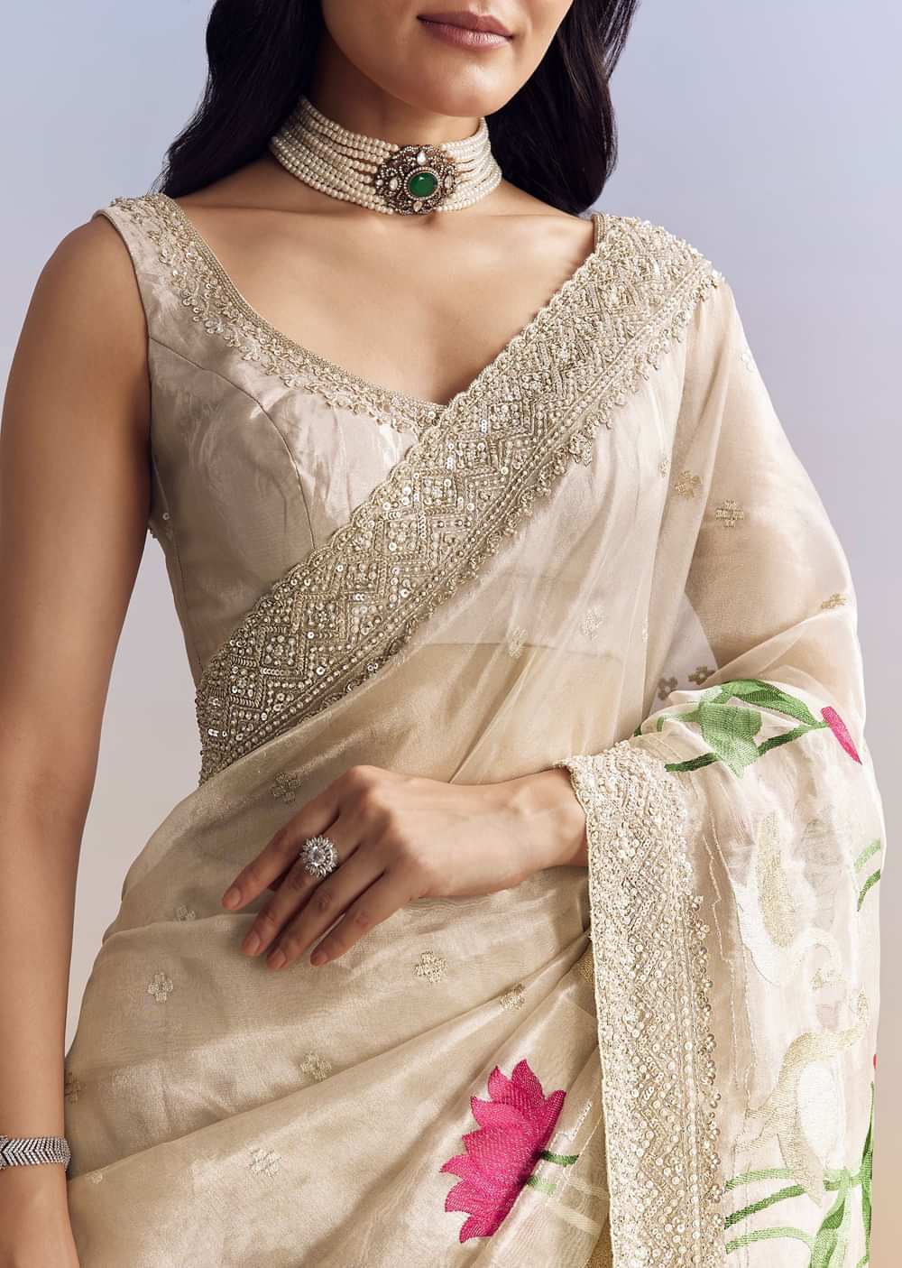 Silver Tissue Saree With Intricate Resham Work And Embroidered Border