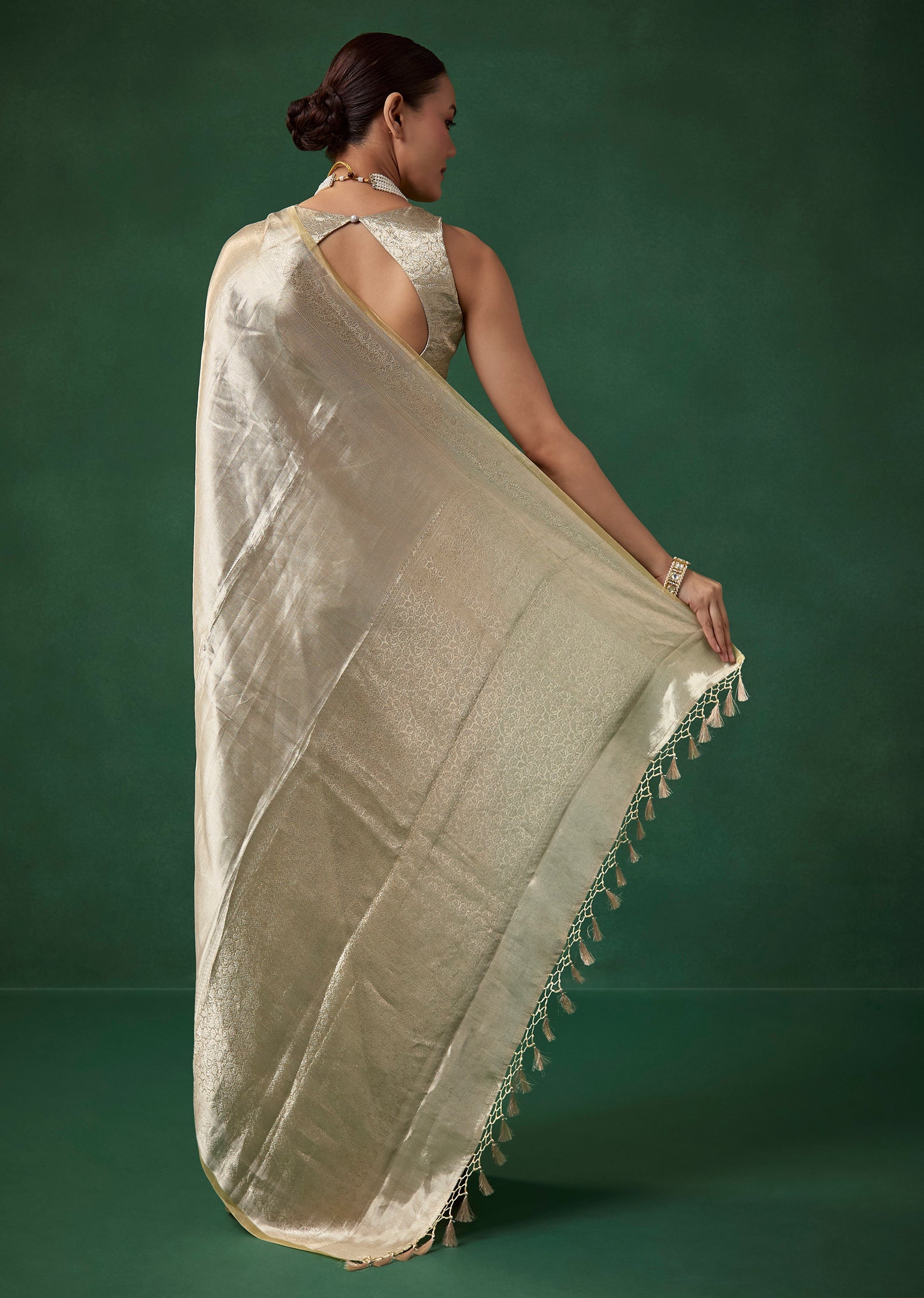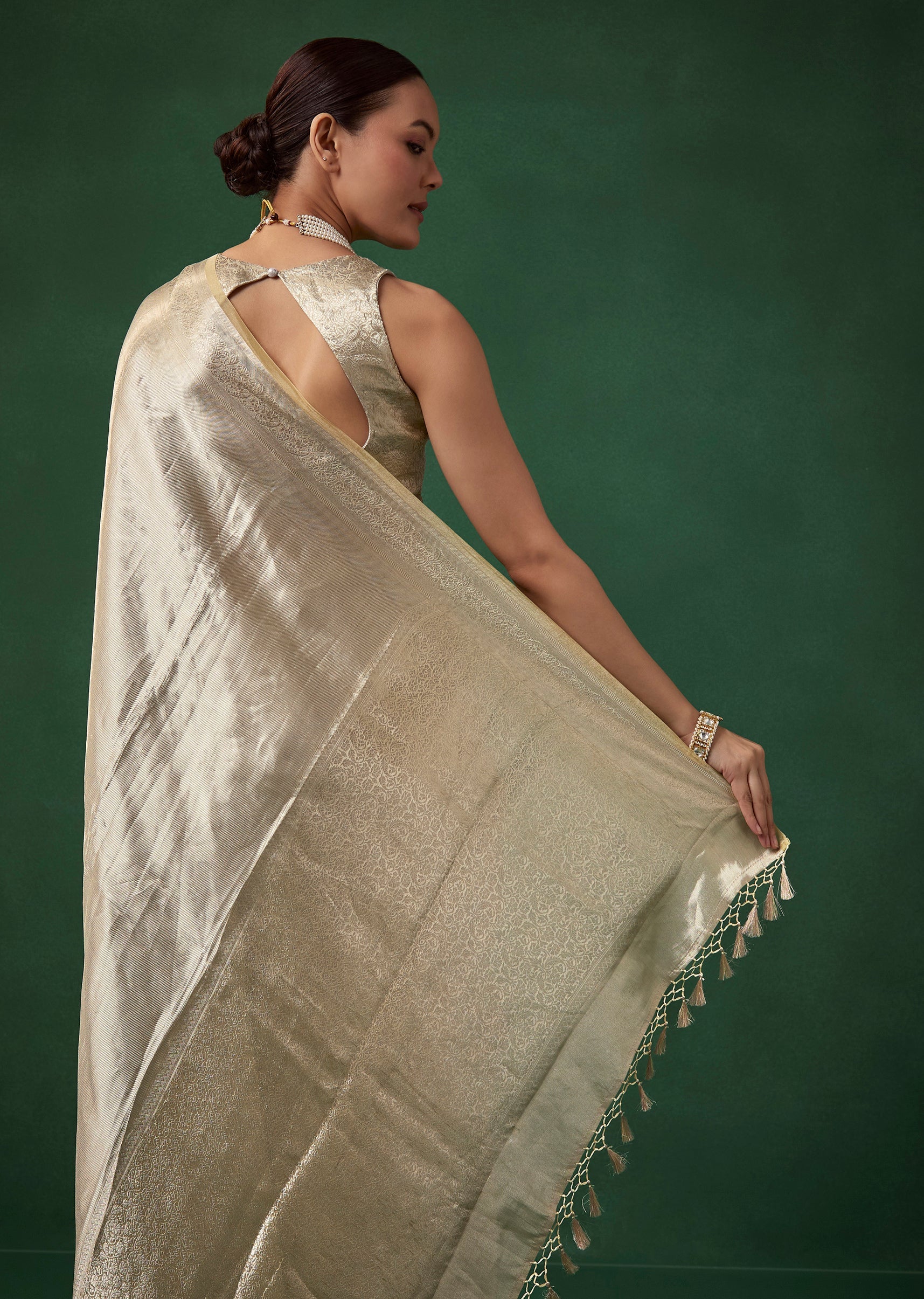 Silver Tissue Silk Woven Saree with Unstitched Brocade Blouse