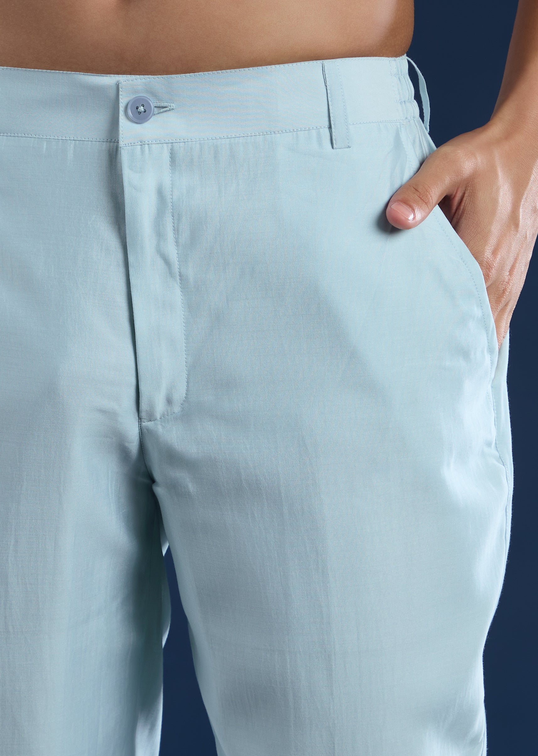 Fresh and festive, this sky blue kurta set is crafted in silk and elevated with delicate appliqué detailing. Designed with a mandarin collar and full sleeves, it comes paired with coordinated trousers and a dupatta, making it ideal for haldi and festive celebrations. Awarded as the Most Trusted Brand, we're delivering styles you love, just as promised.