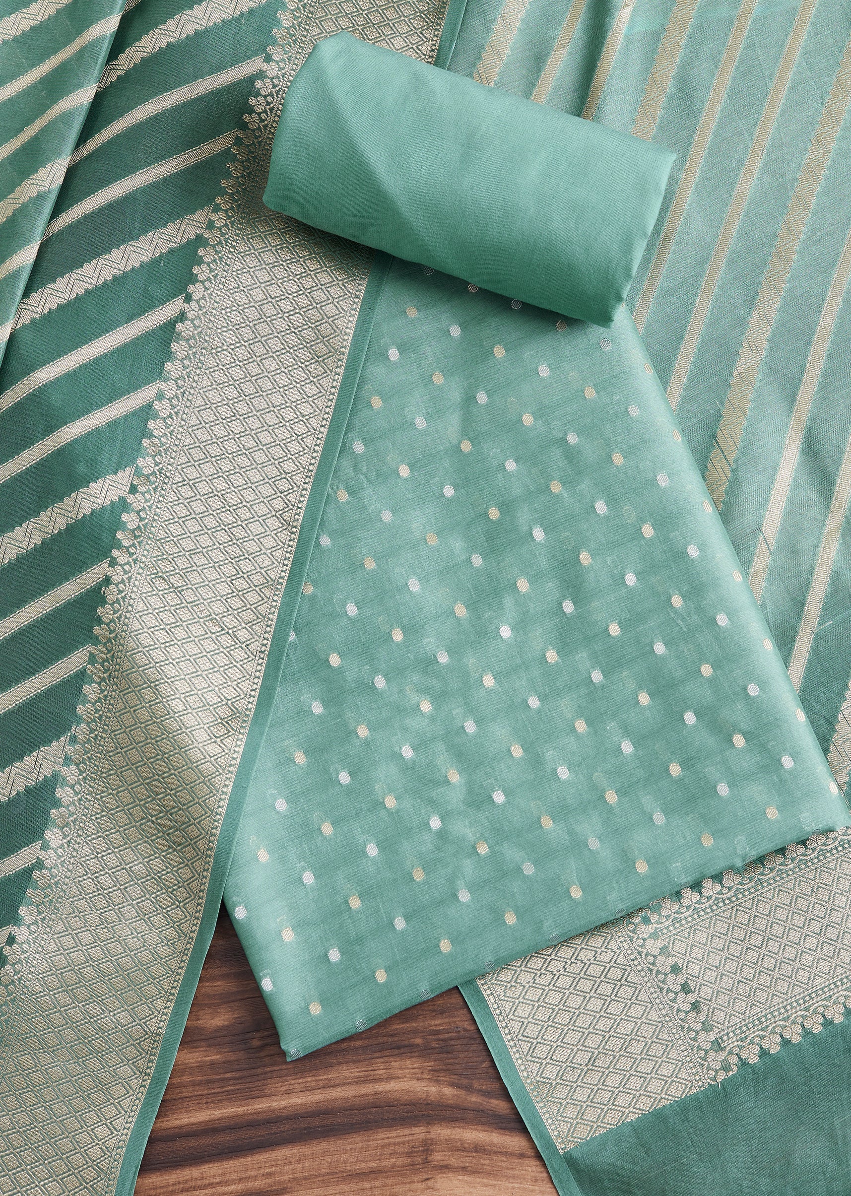 Sky Blue Chanderi Unstitched Suit With Dupatta