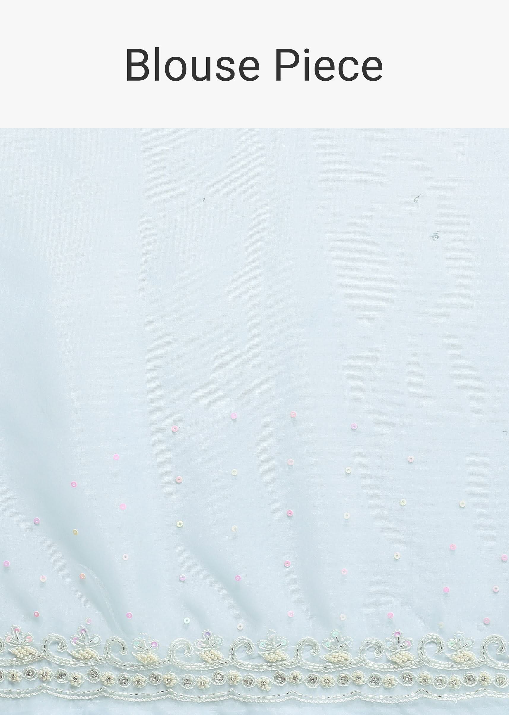 Sky Blue Chikankari Silk Organza Saree With Floral Thread Jaal Detail And Unstitched Blouse Fabric